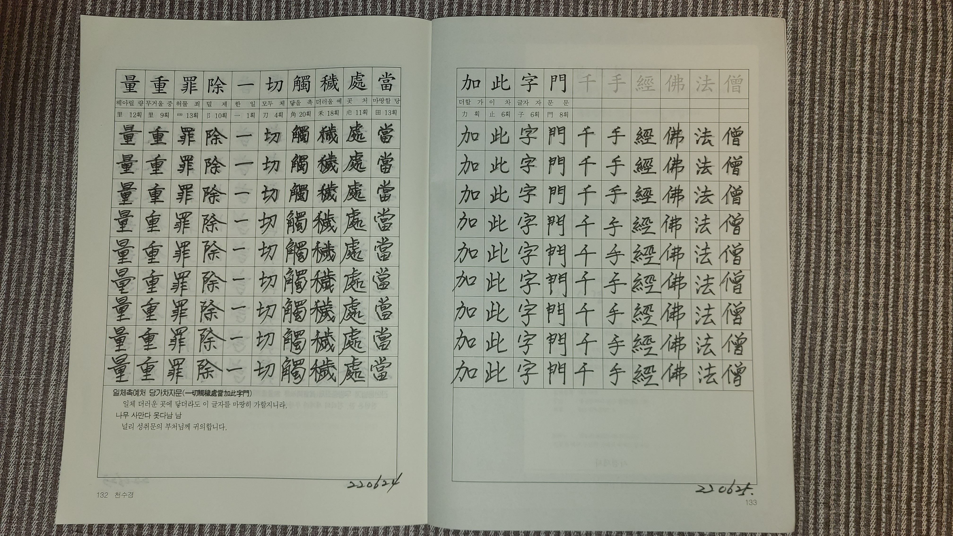 천수경이 무엇인지도 잘 모르면서 사경으로 쓰기 시작하여 6개월만에 완료하였다.