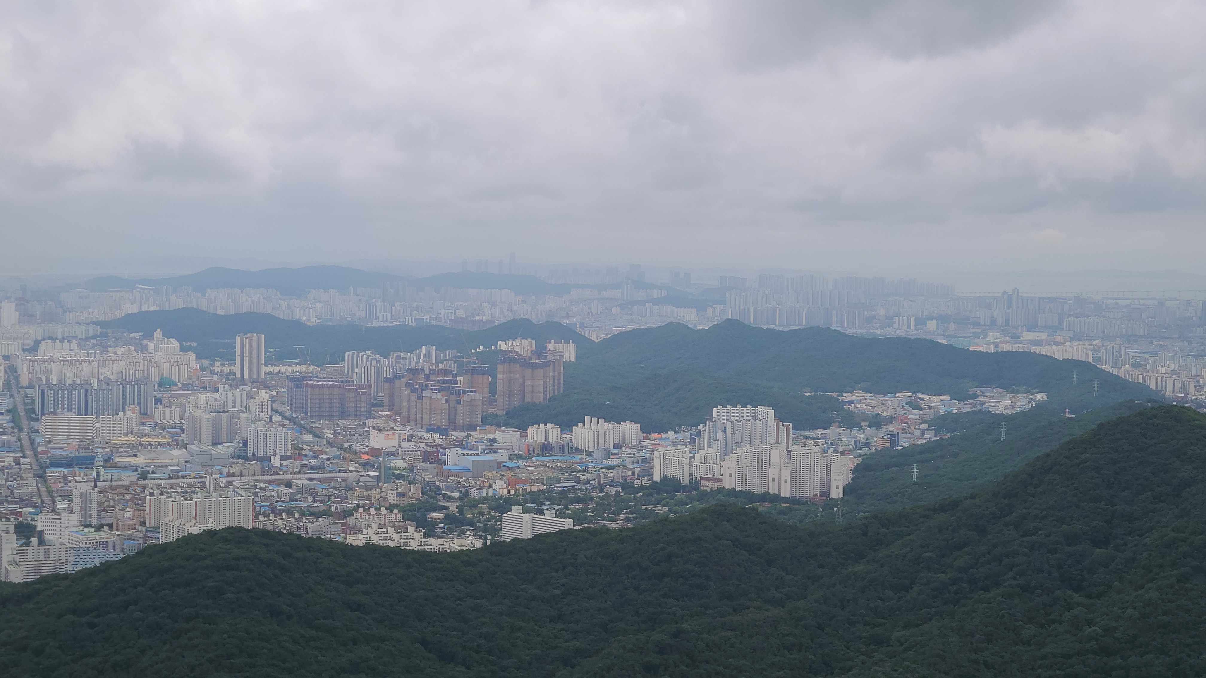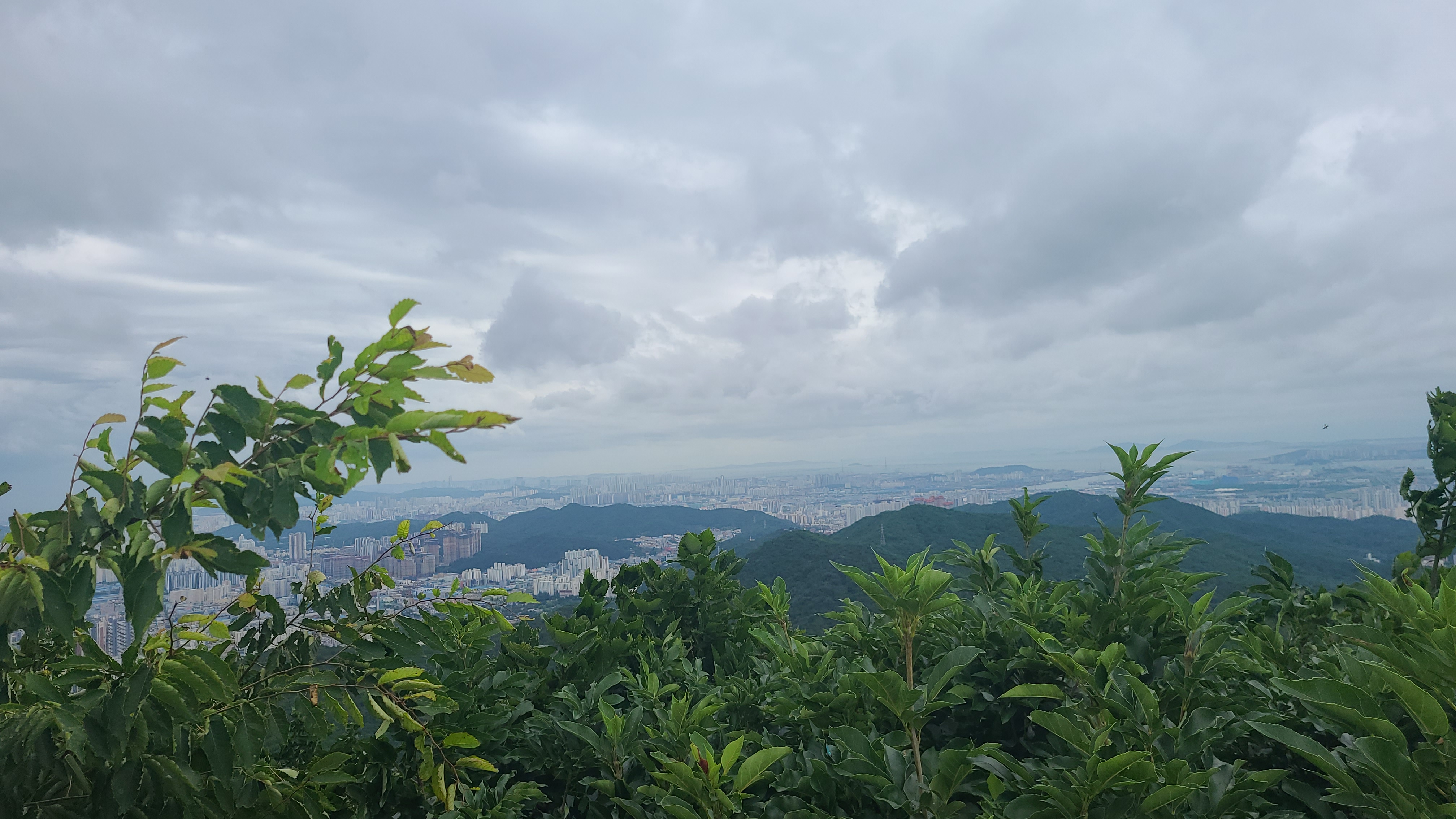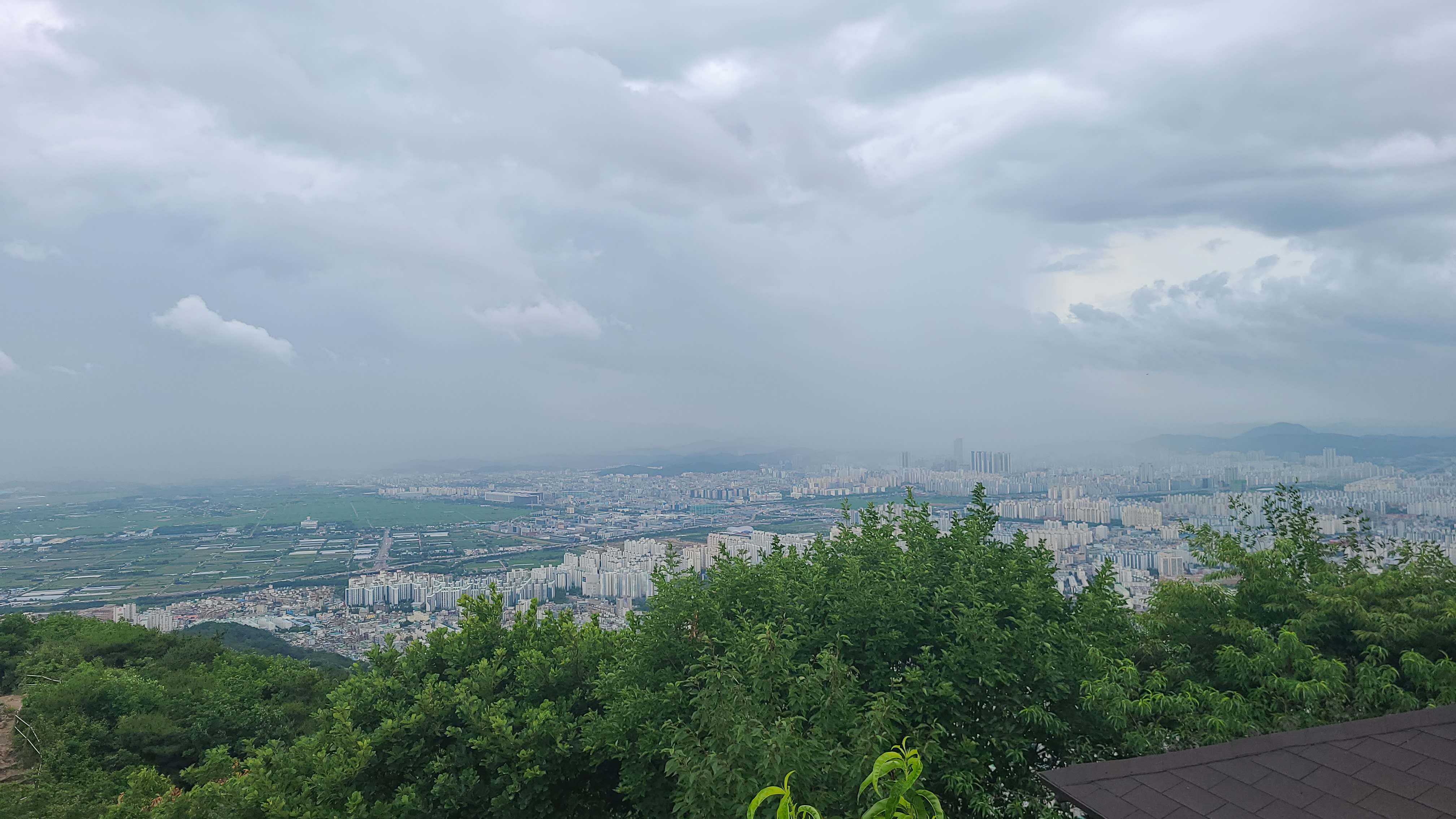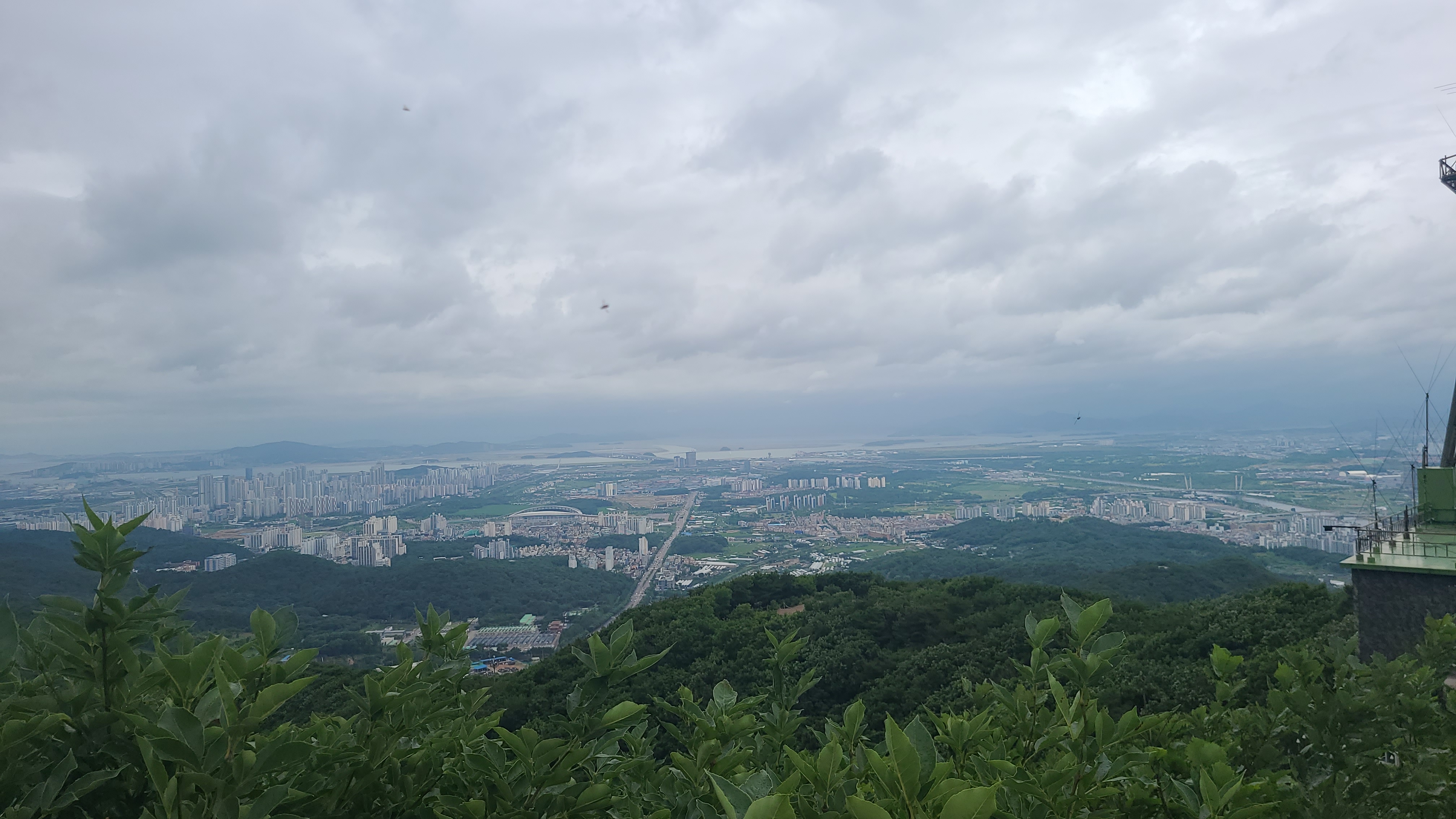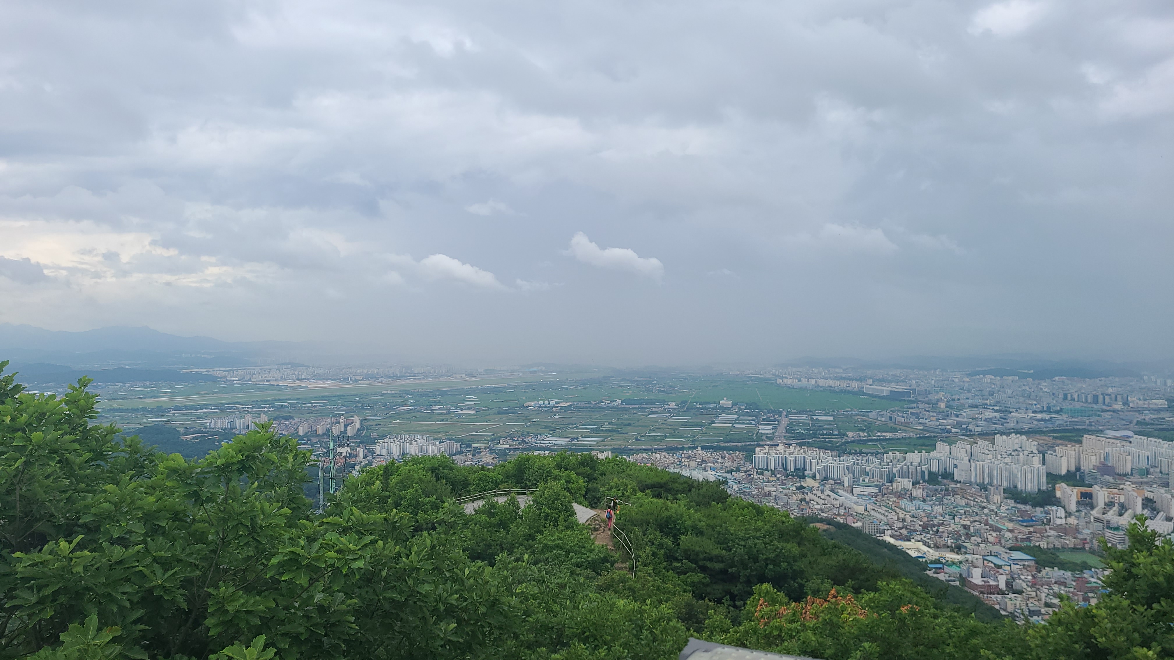 멀리 서해바다와 영종도,인천공항과 마니산이 바라보이는 곳인데 시계가 좋지않아 희미하게 윤곽만이 보일 뿐이다.