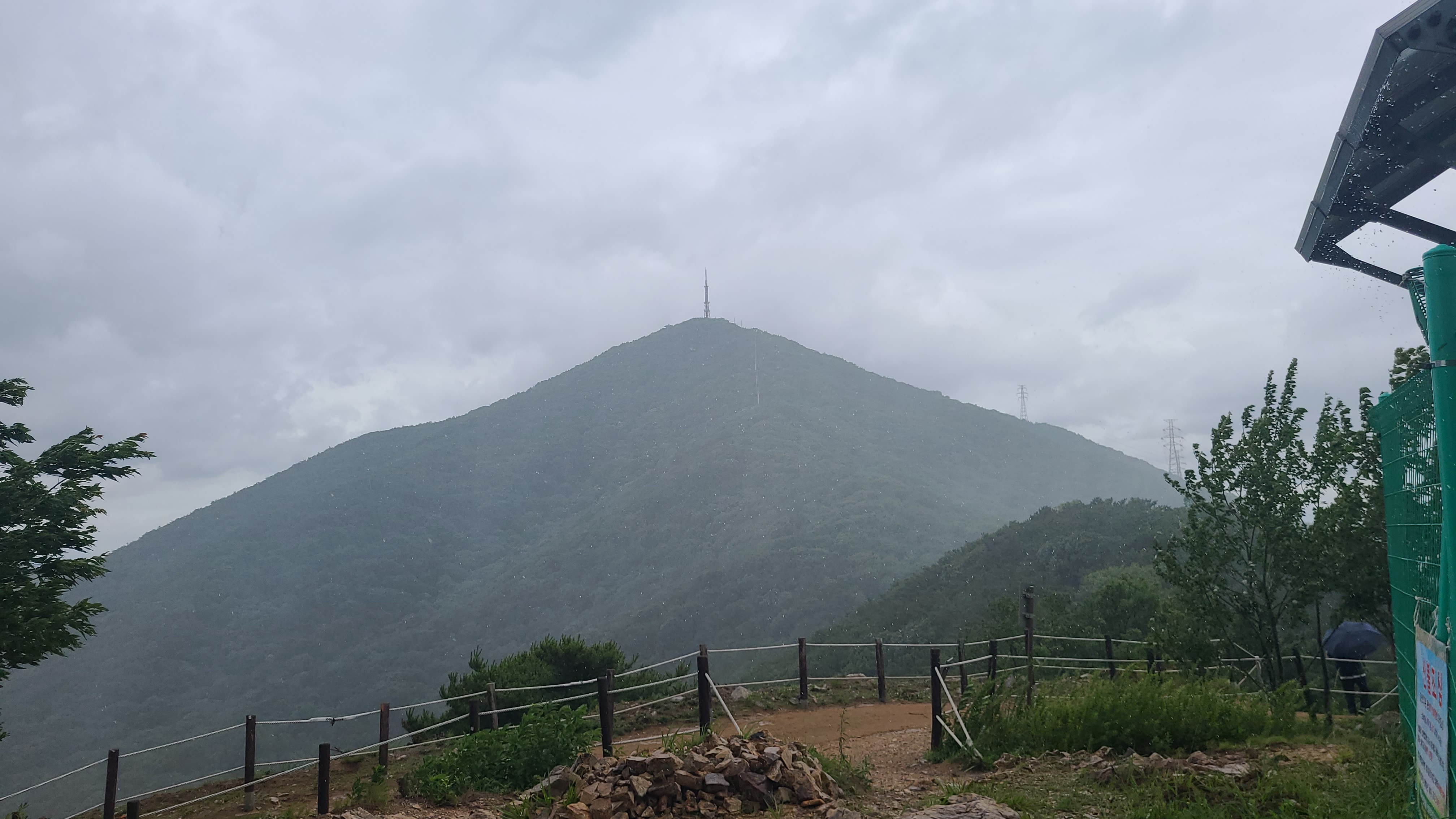 데크길을 내려오니 다시 비바람이 몰아쳐 우산을 펼쳐든다.