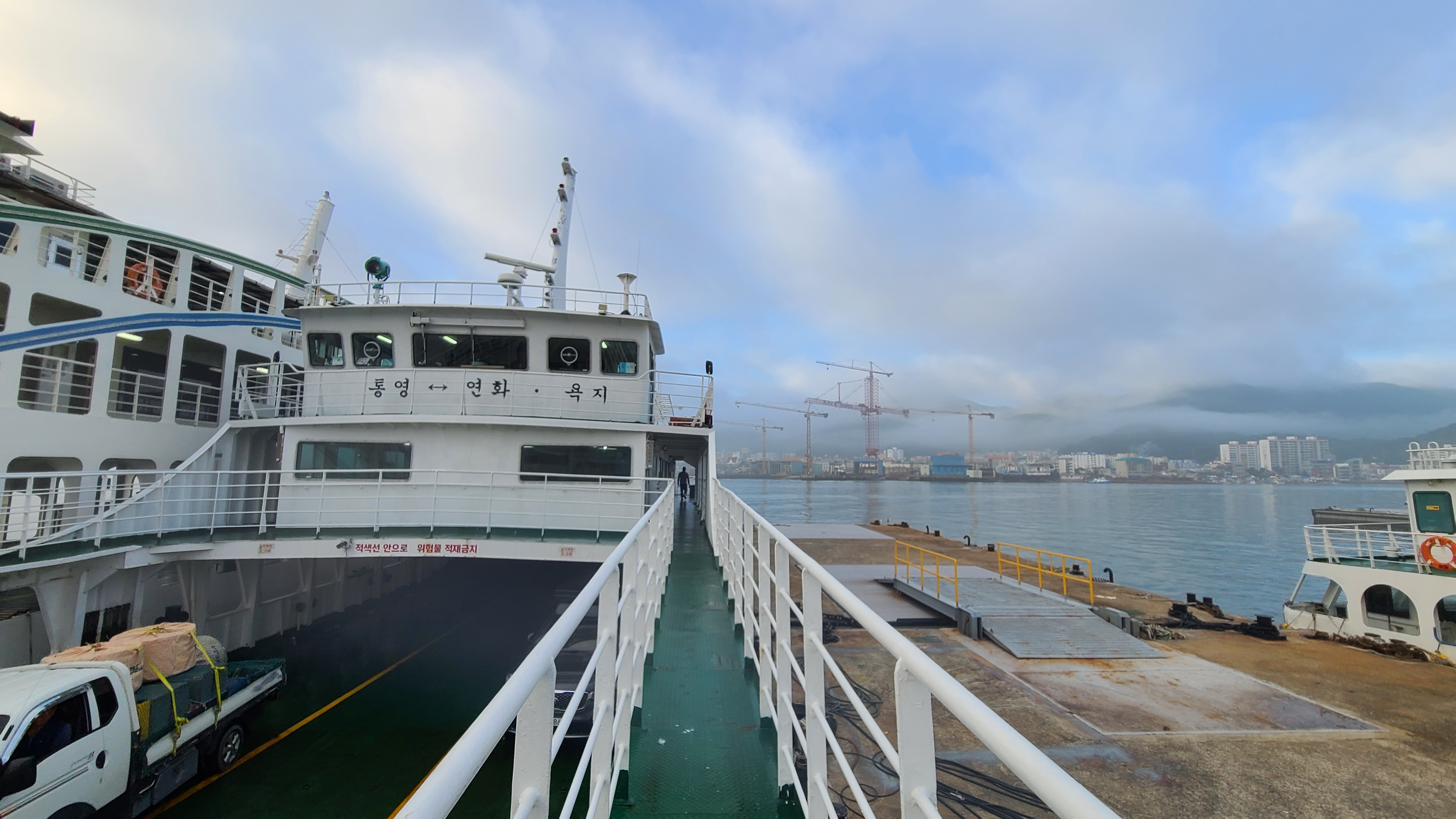 가슴에 가득담고 렌즈에도 담고는 항구로 이동하여 욕지행선박에 오른다.