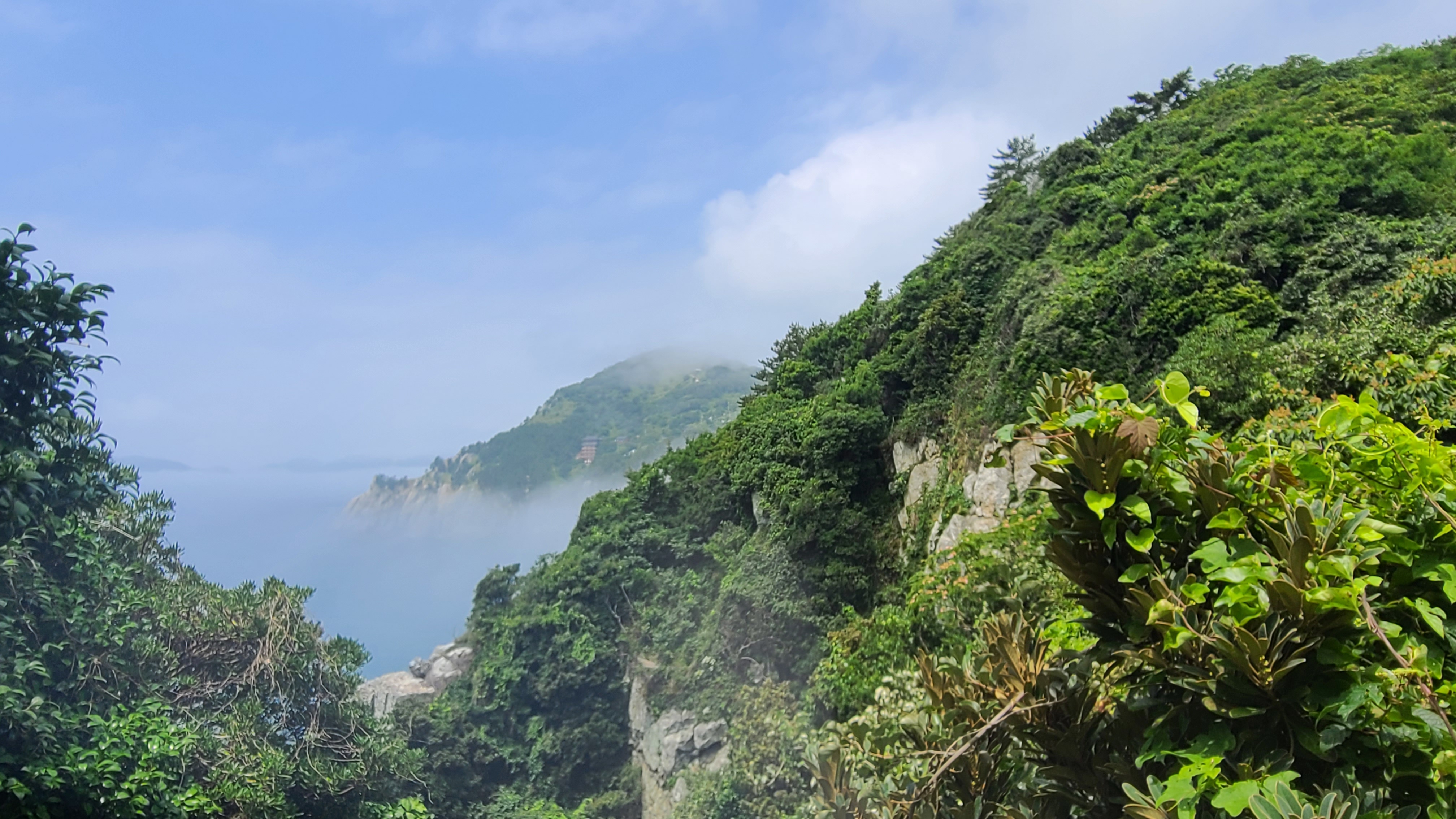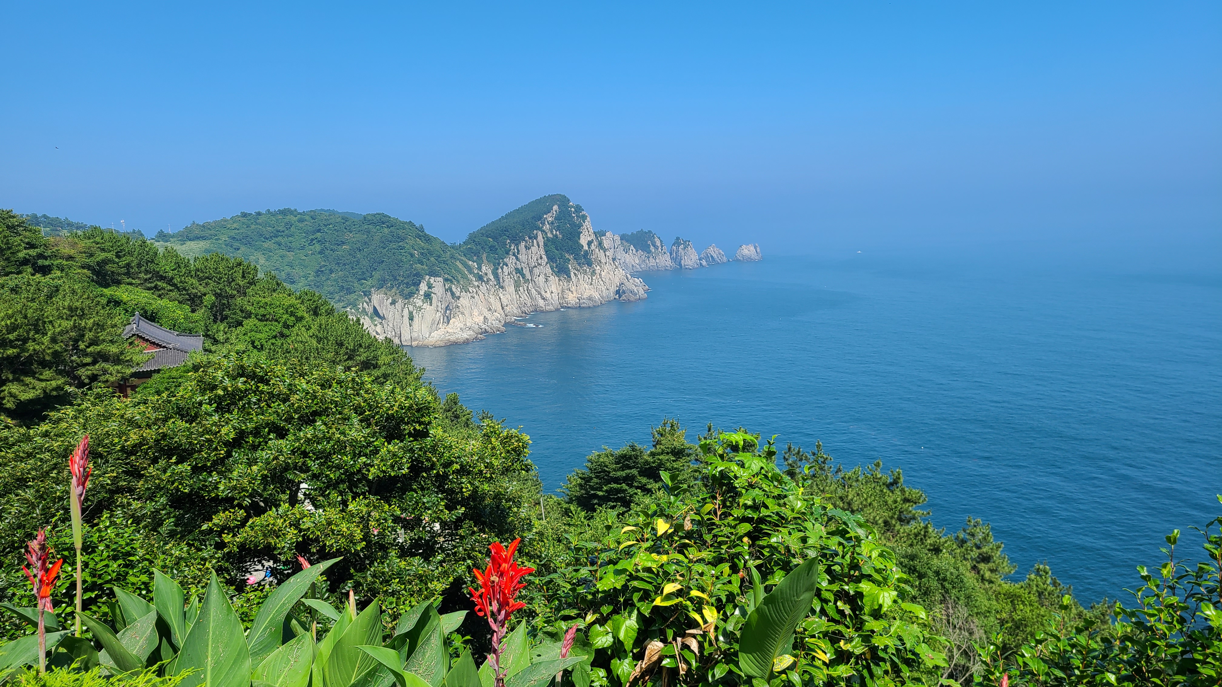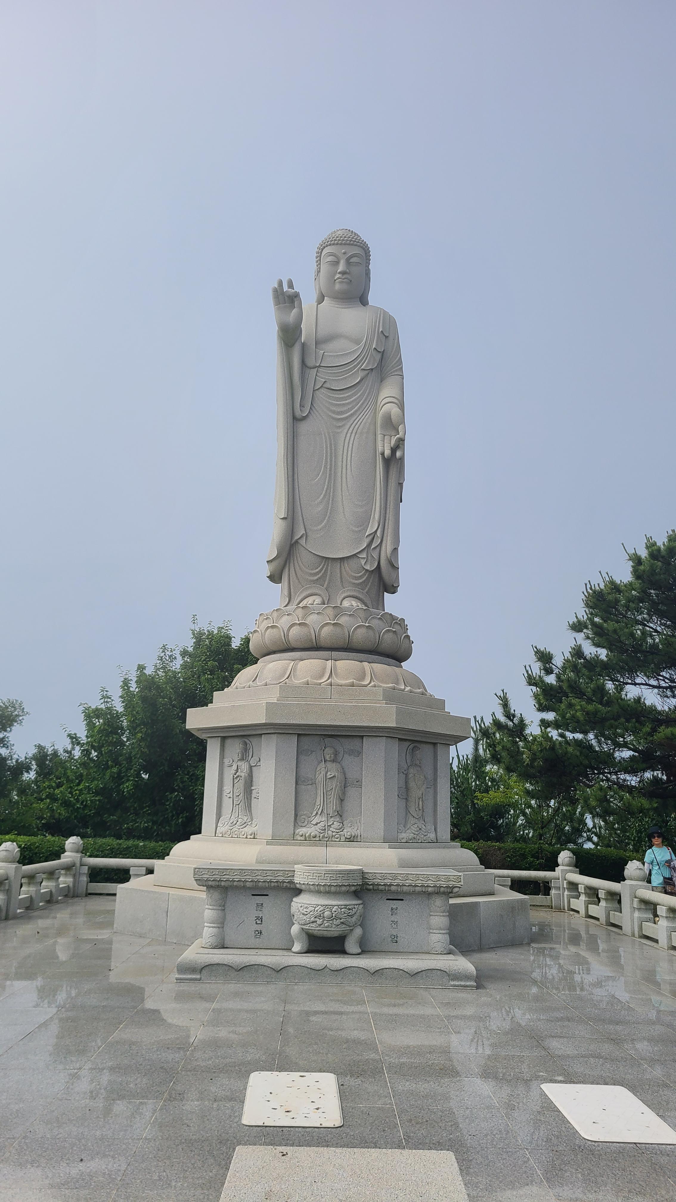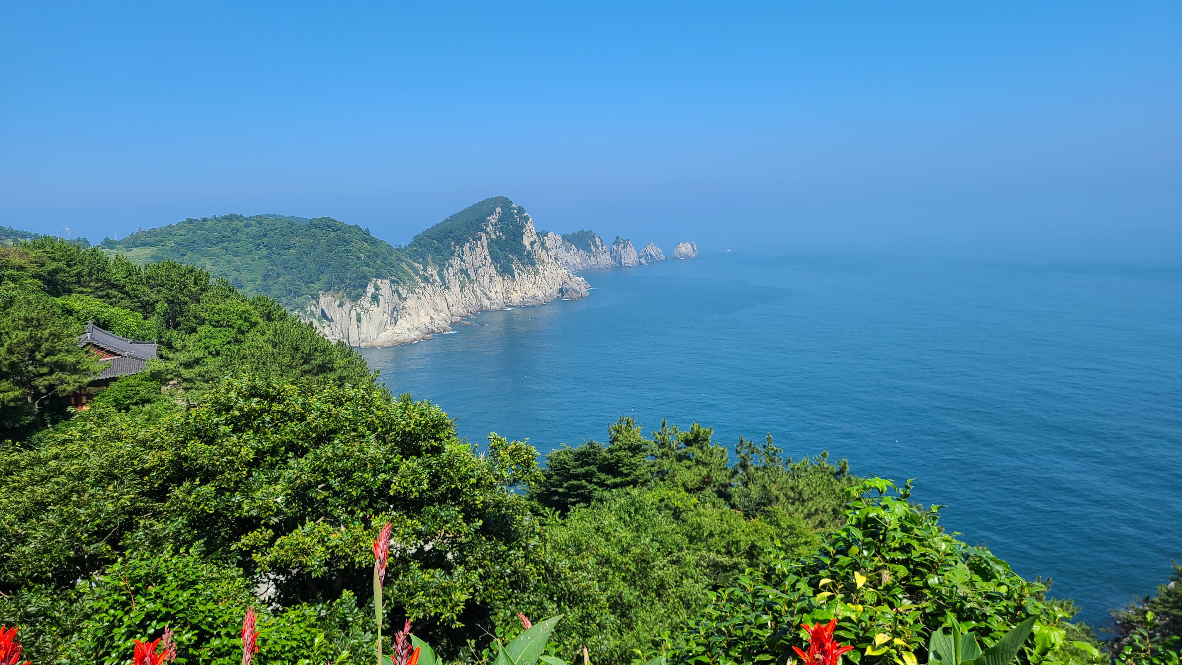 금세 땀이 흐르고 윗옷이 젖는다.연화봉을 올라 해수관음상을 보고는 더운날 그늘이 없어 보수로 출입을 통제하는 정자에서