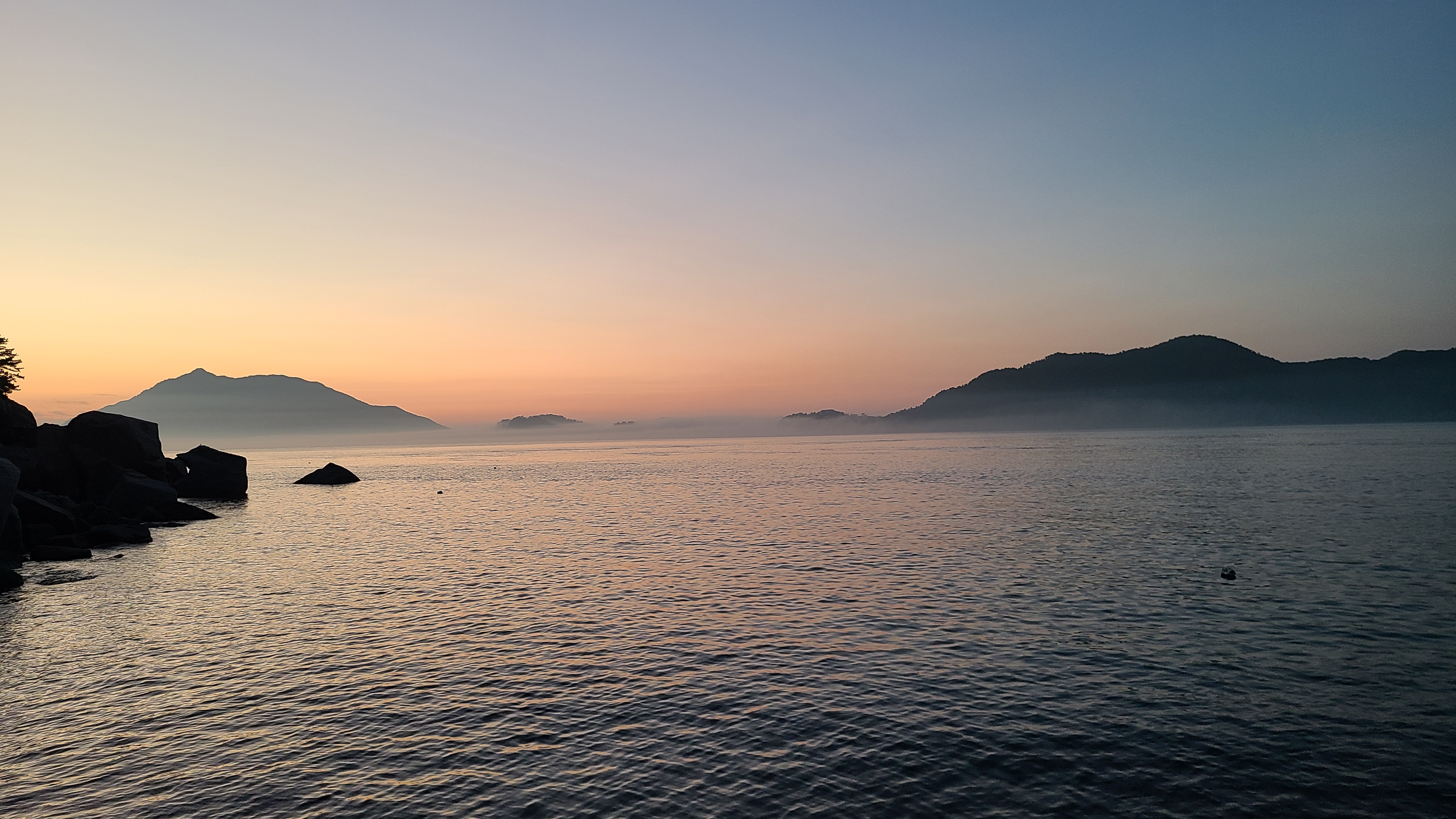 시장에서 조식을 먹고는 안개로 출항이 미지수인 배를 기다린다. 짙은 안개속이니 기다려야한다....