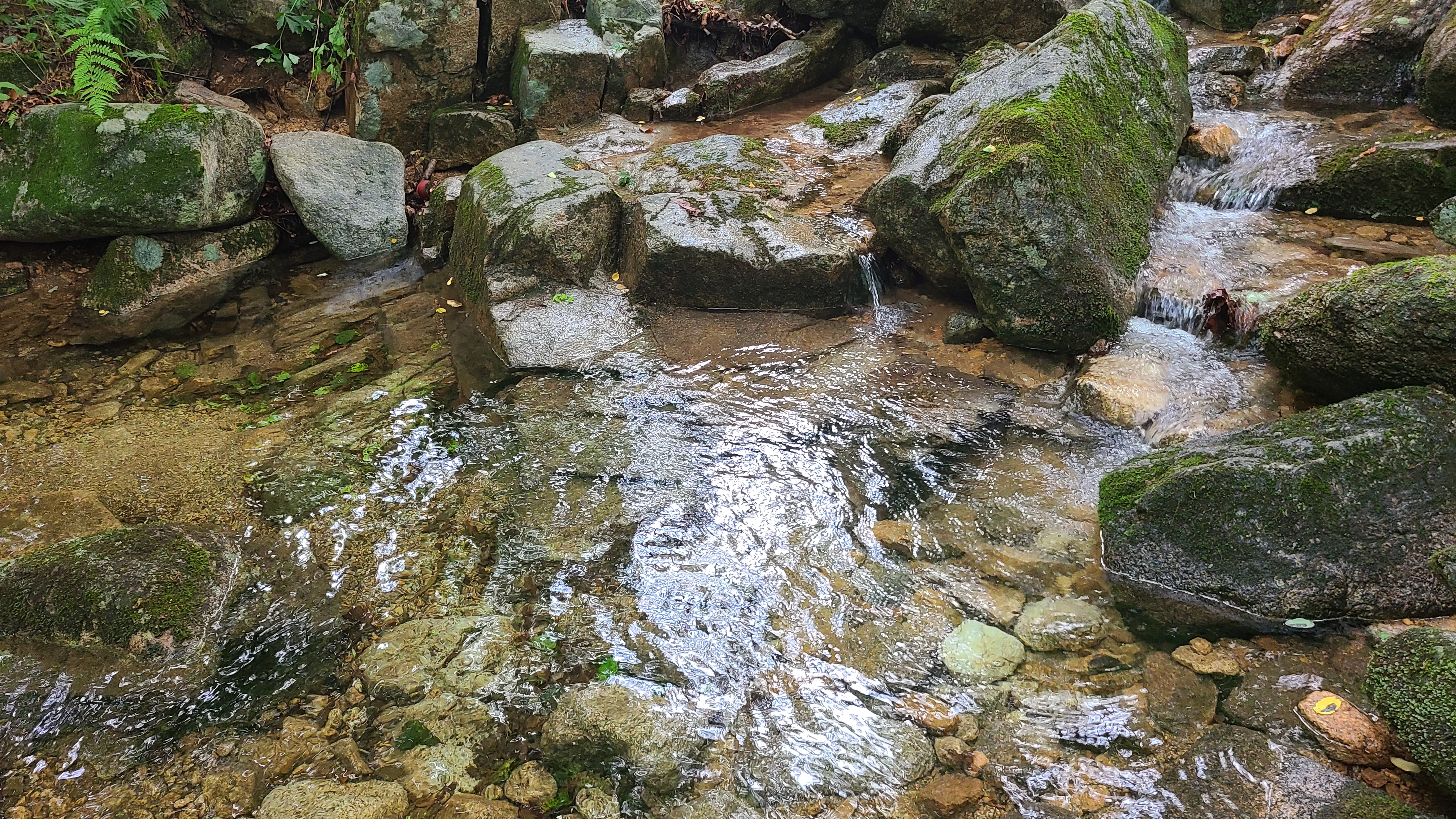 어느순간 계곡에 물이 많아지는 지점에서 길을 벗어나 한갓진 곳에서 옷을 벗고 알탕을 한다.