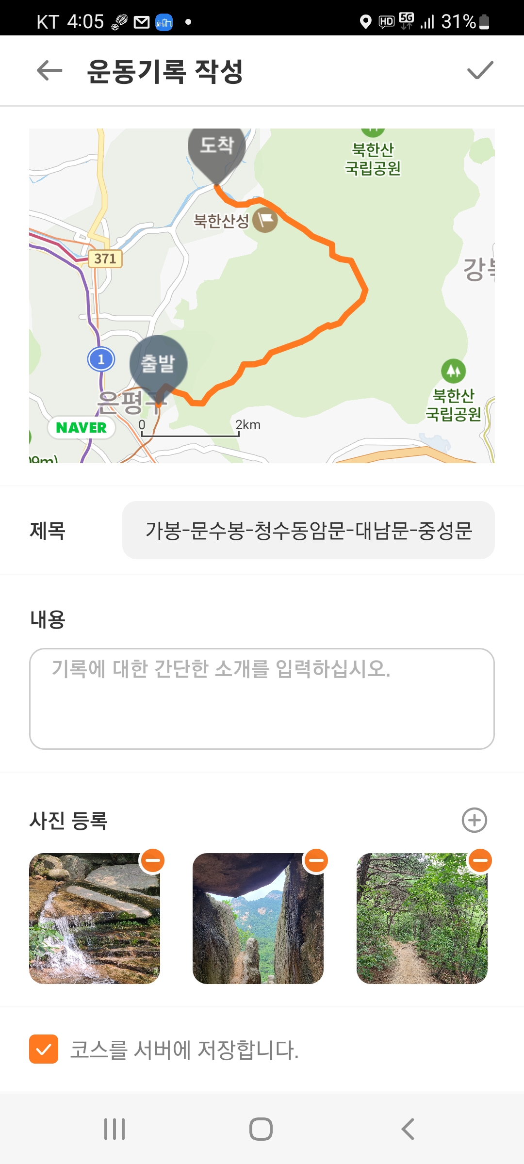산성입구로 내리니 14:05분, 휴식시간을 포함하여 5.40hr간 북한산에 머물며 즐겼다.