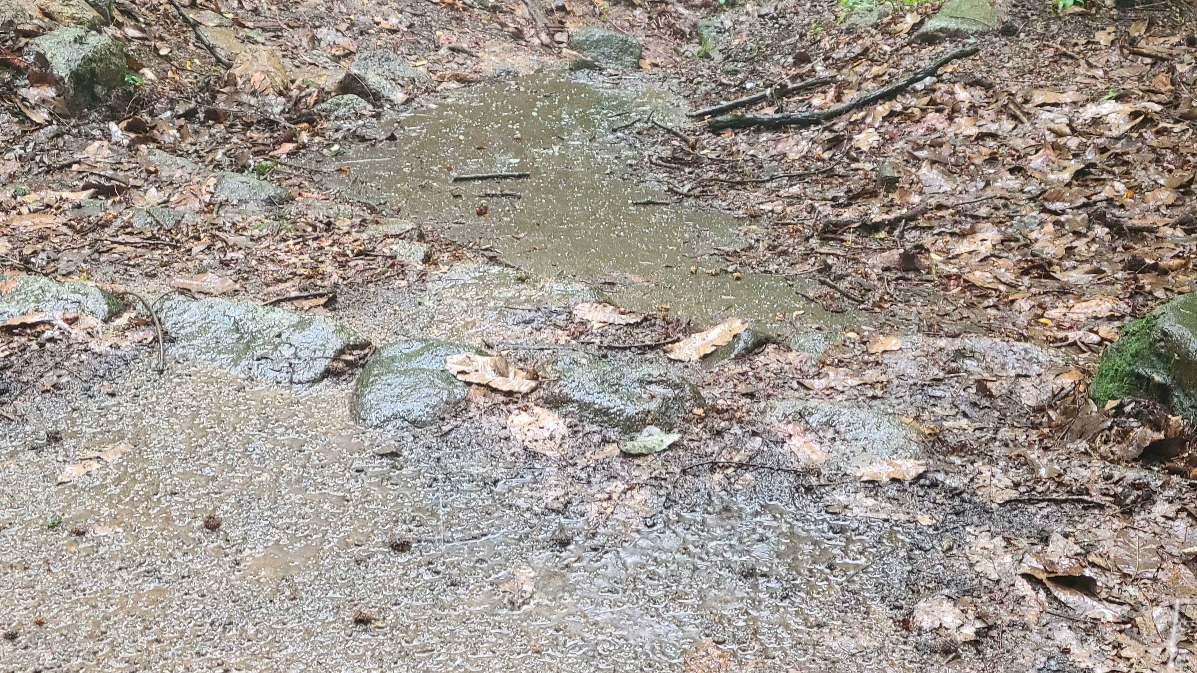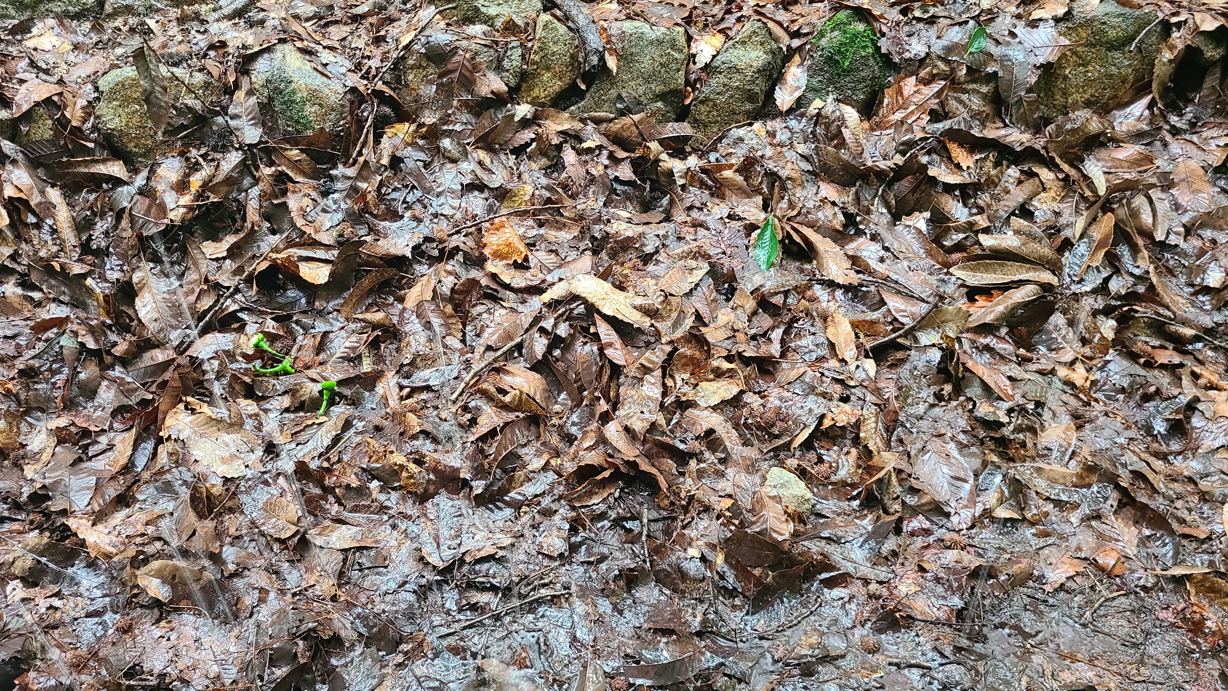 한시간여를 기다리다 조금 소강상태로 들어서니 잔비를 맞으며 하산을 한다.