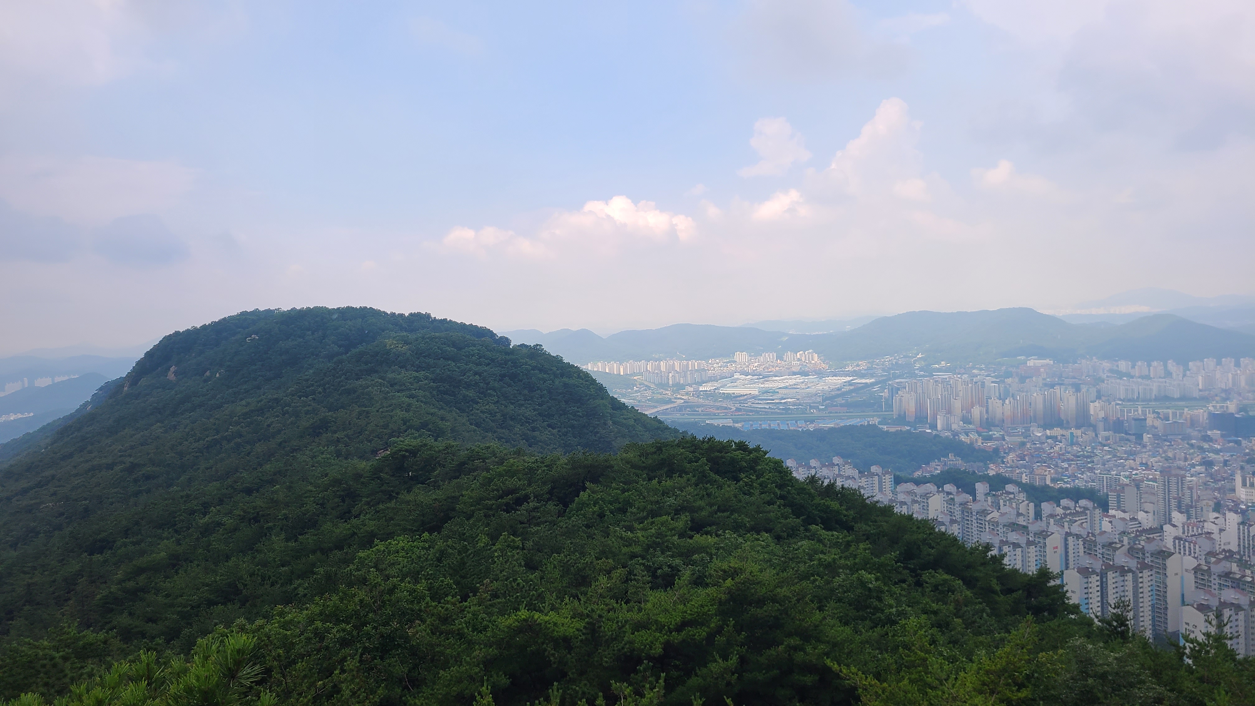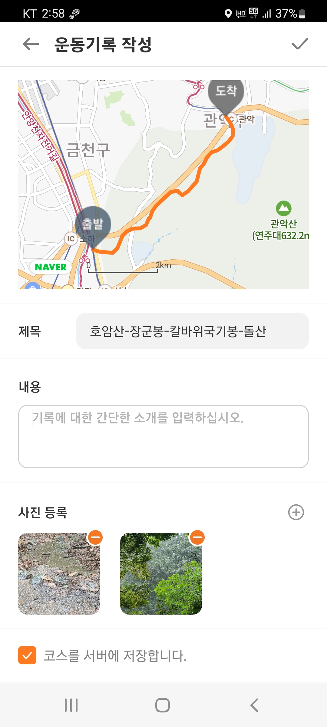 여유롭게 걷다가 국기봉을 우회하여 관악산입구로 내리는데 젖은 윗옷을 갈아입으려고