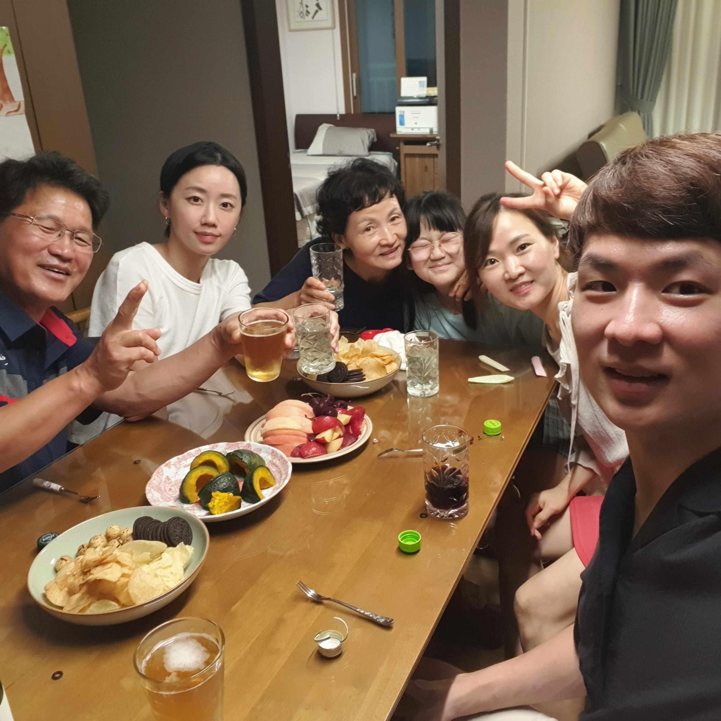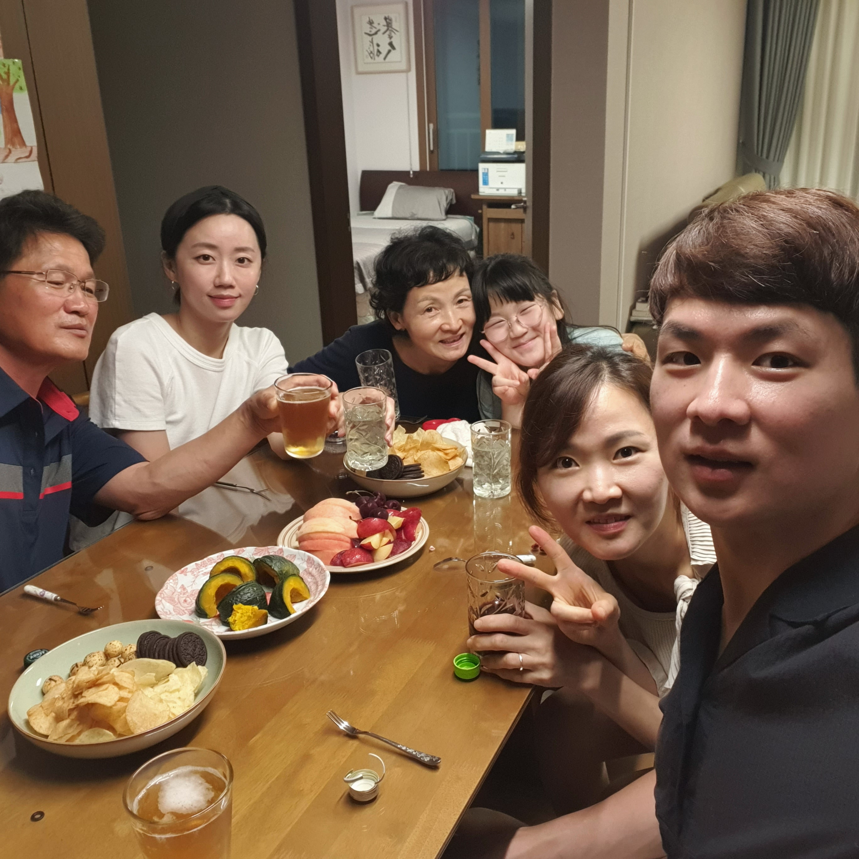 오랫만에 집에 모여 이런저런 이야기를 하면서 술한잔을 마신다.