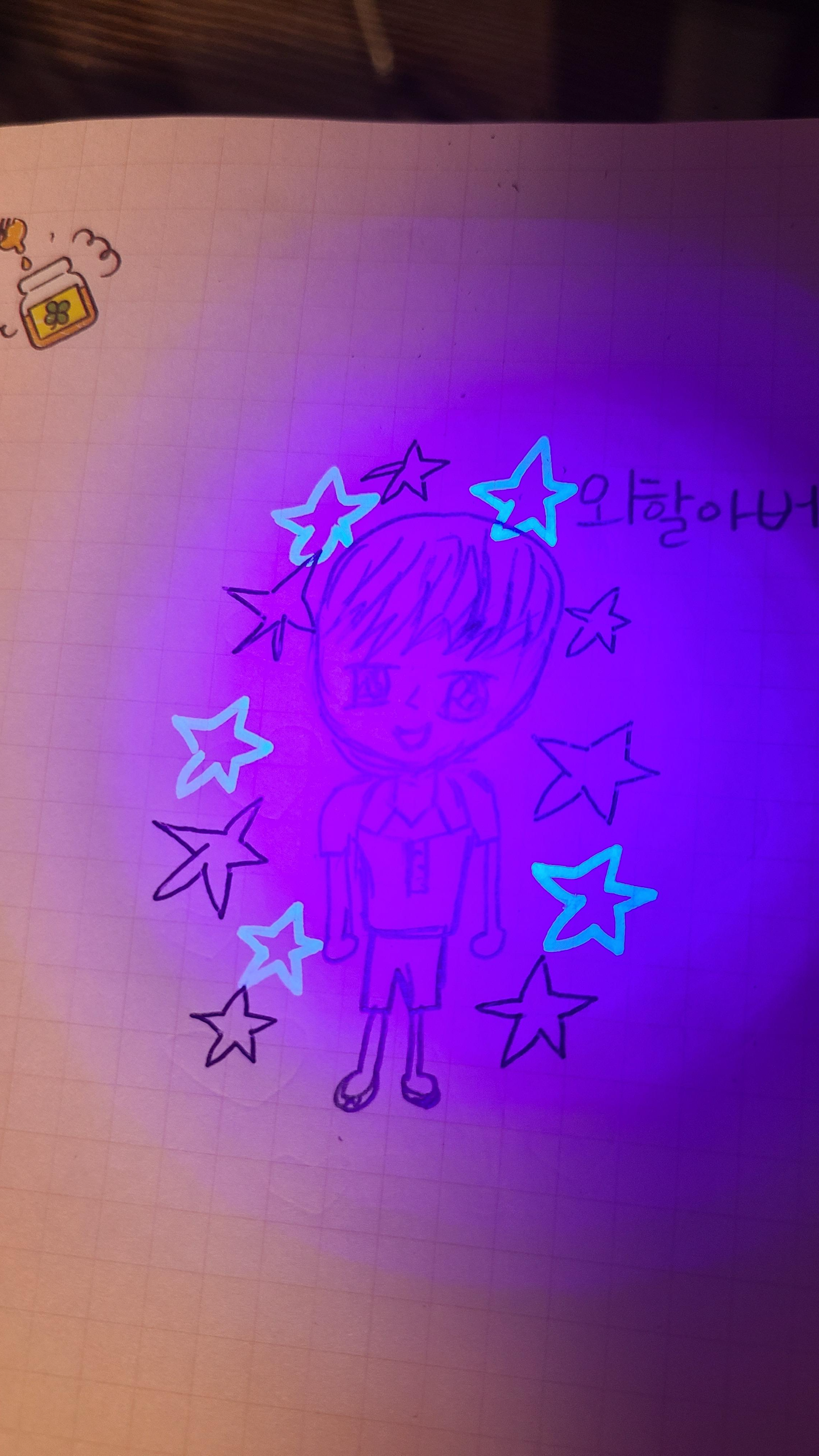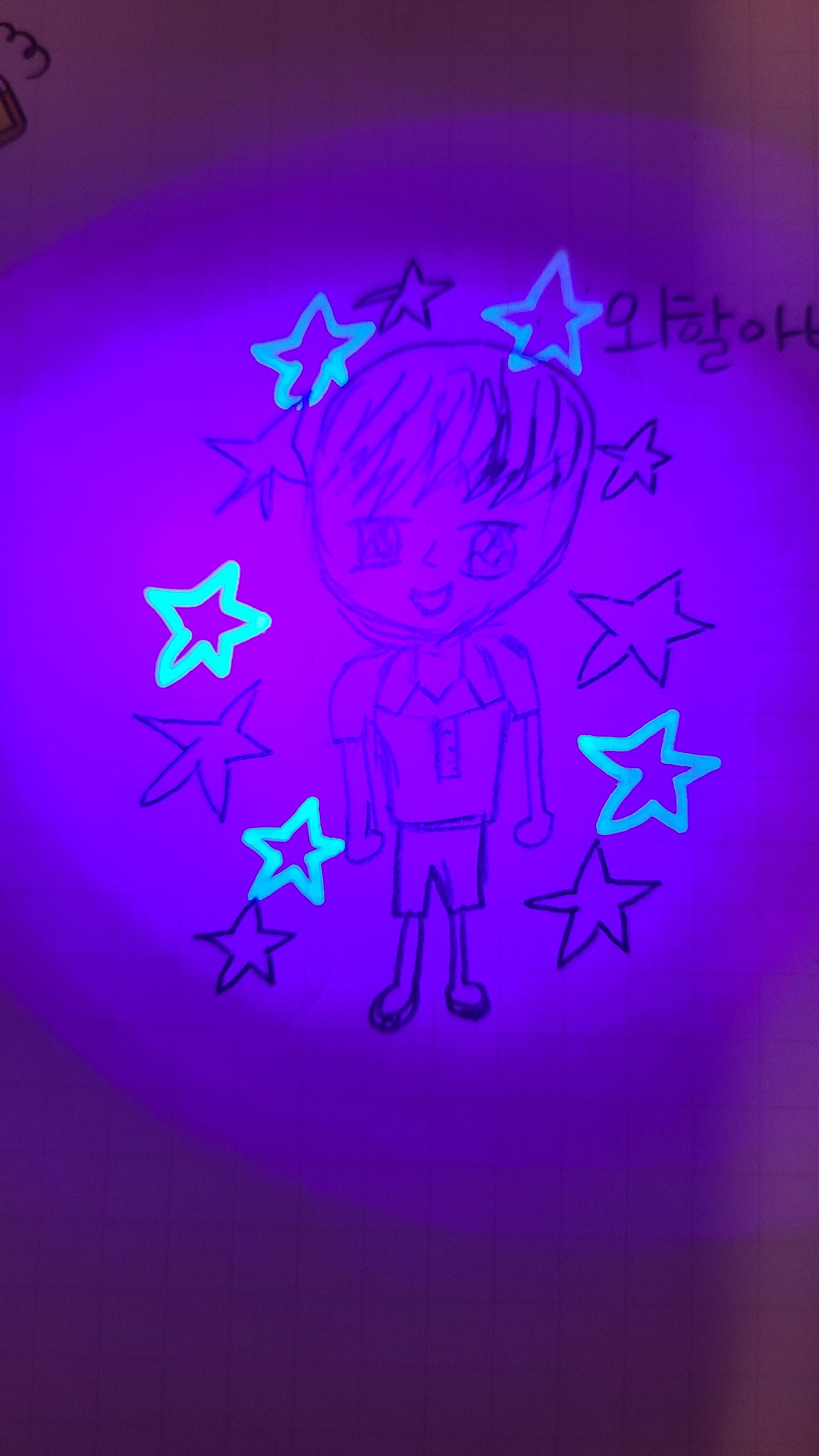 평소 태도와는 다르게 이쁘게도 그리고 색깔을 칠하고는 형광펜으로 칠하기까지한다.
