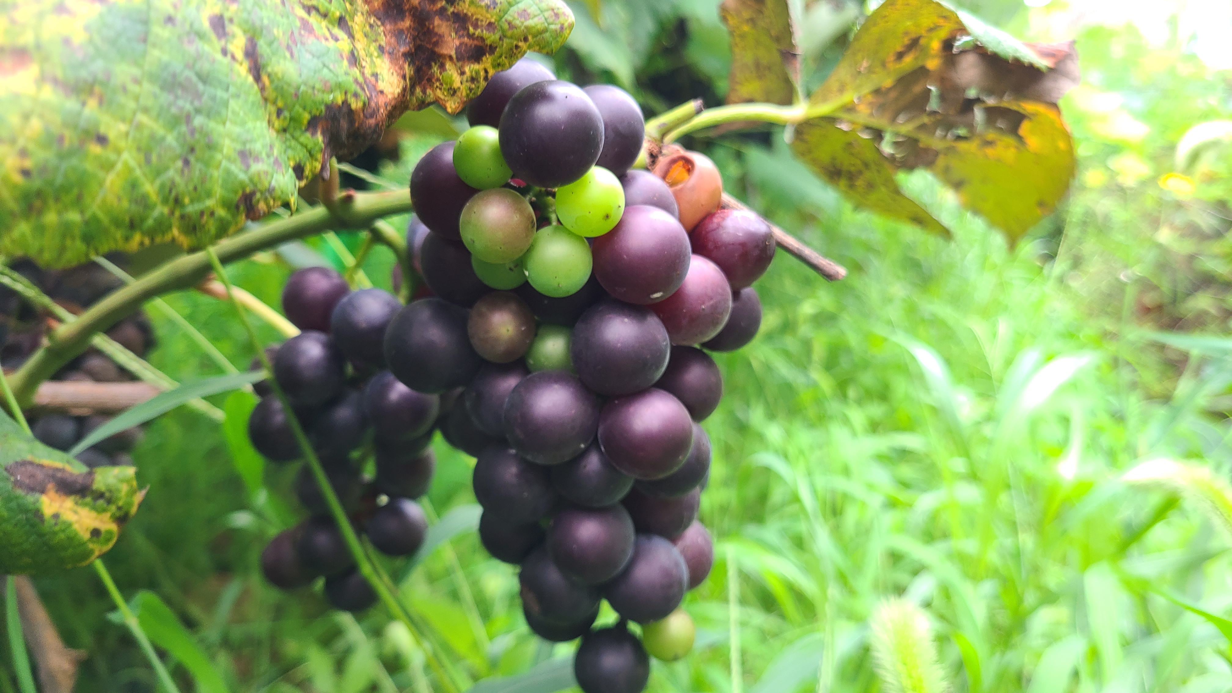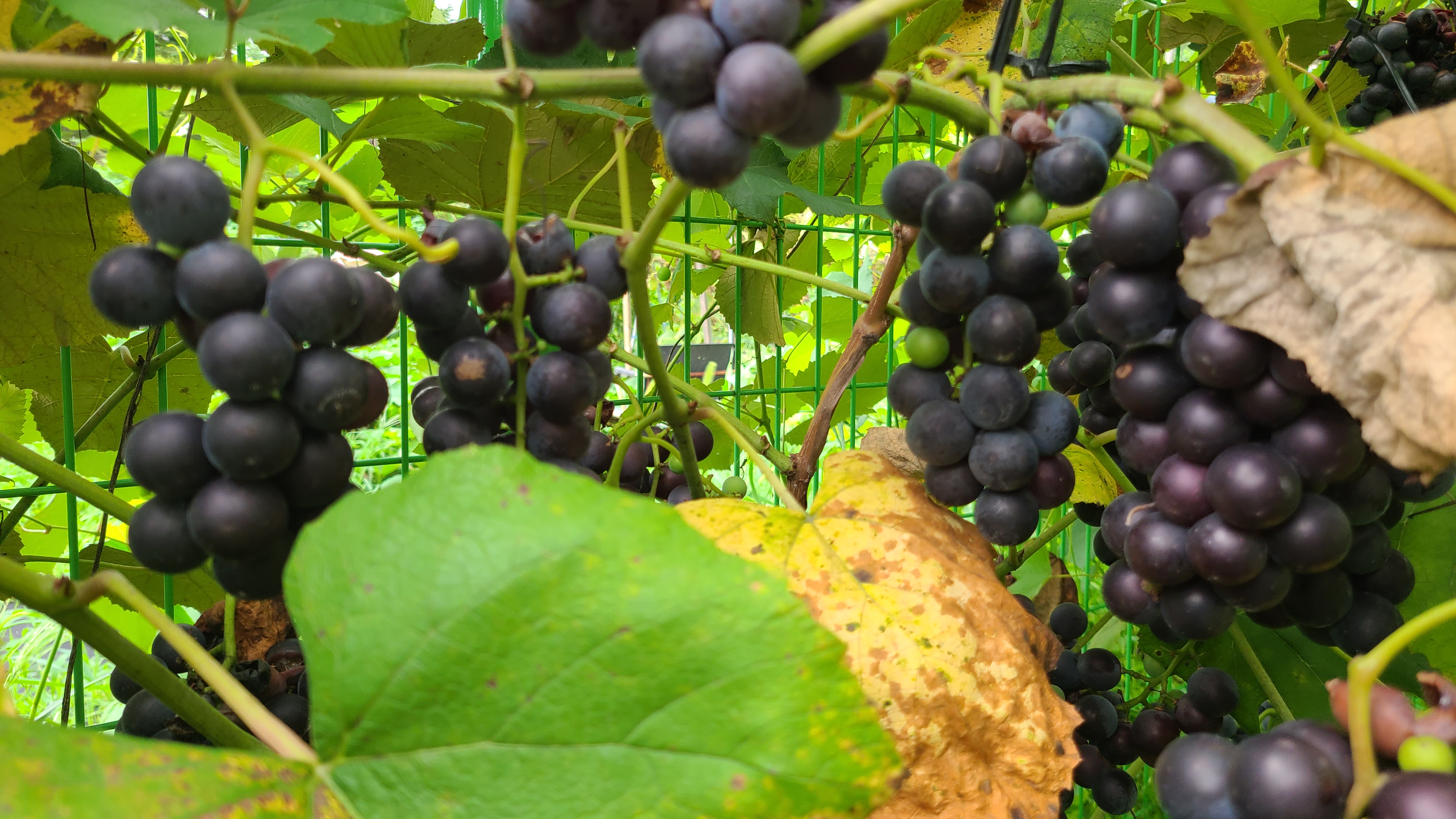 한쪽에 포도넝쿨의 포도는 먹음직스럽게 검푸르게 익어가고있다.