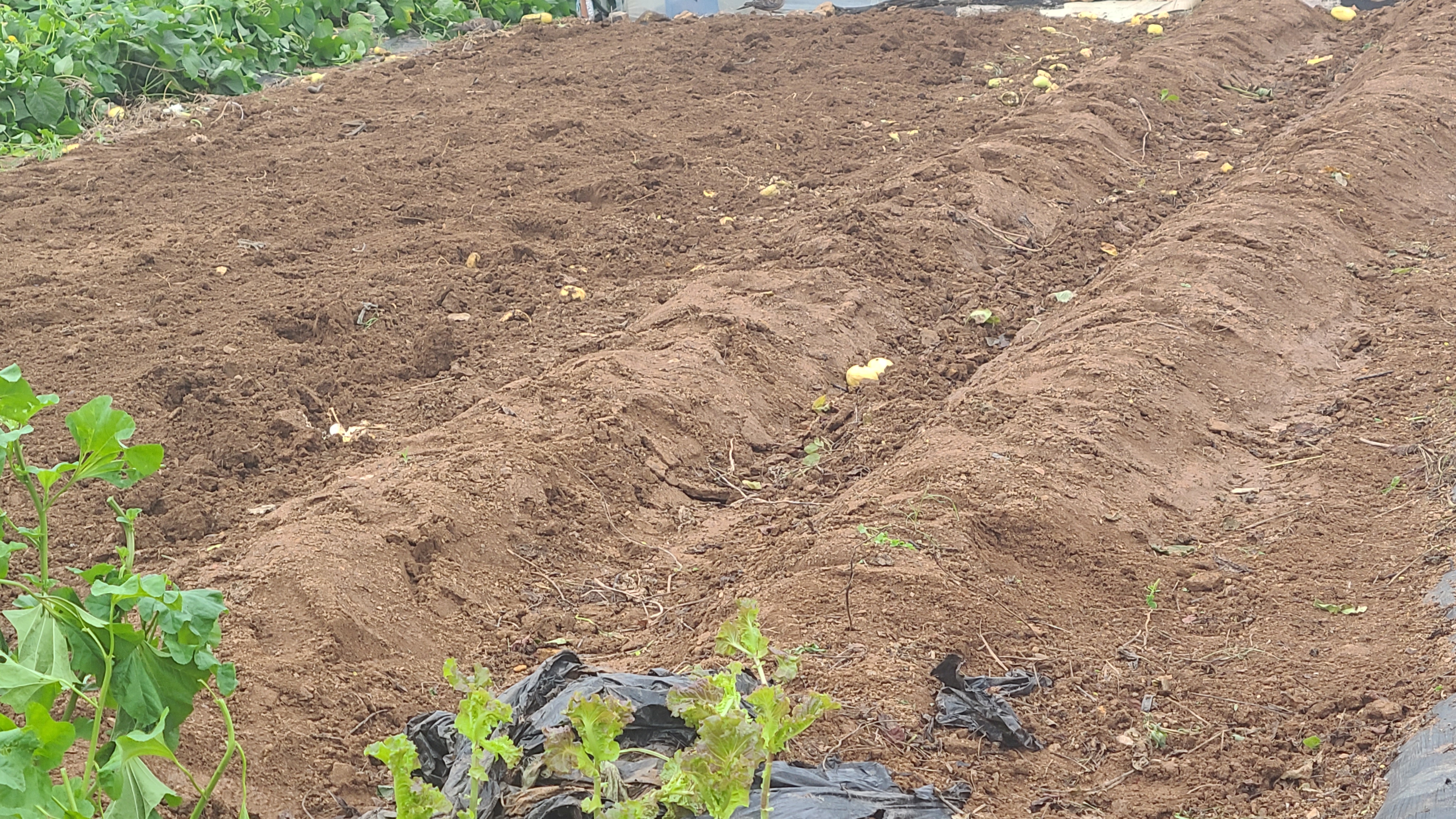 한창을 찾다 없어 포기를 하고 걷어낸 이랑을 뒤덮는 작업을하는데 어느순간 고랑에 안경이 보인다.