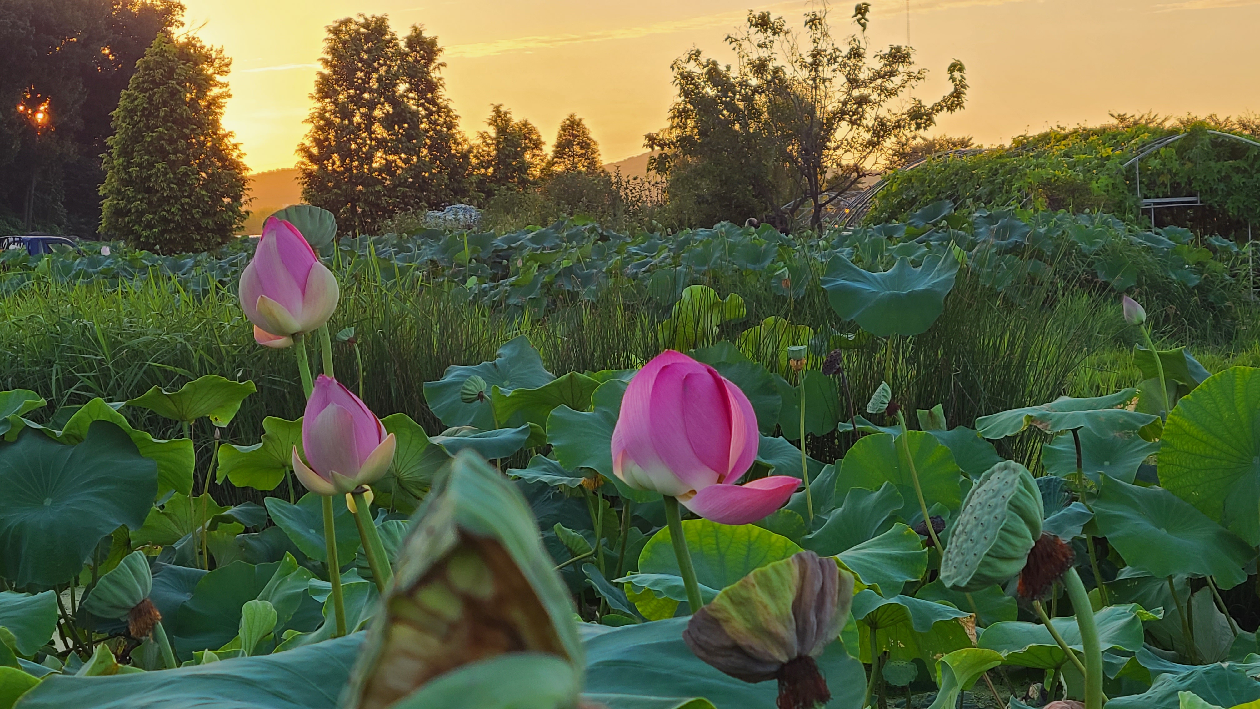조금 철이 늦었지만 그래도 연꽃들이 여기저기 보이고 아름다운 전경을 보여주고있다.