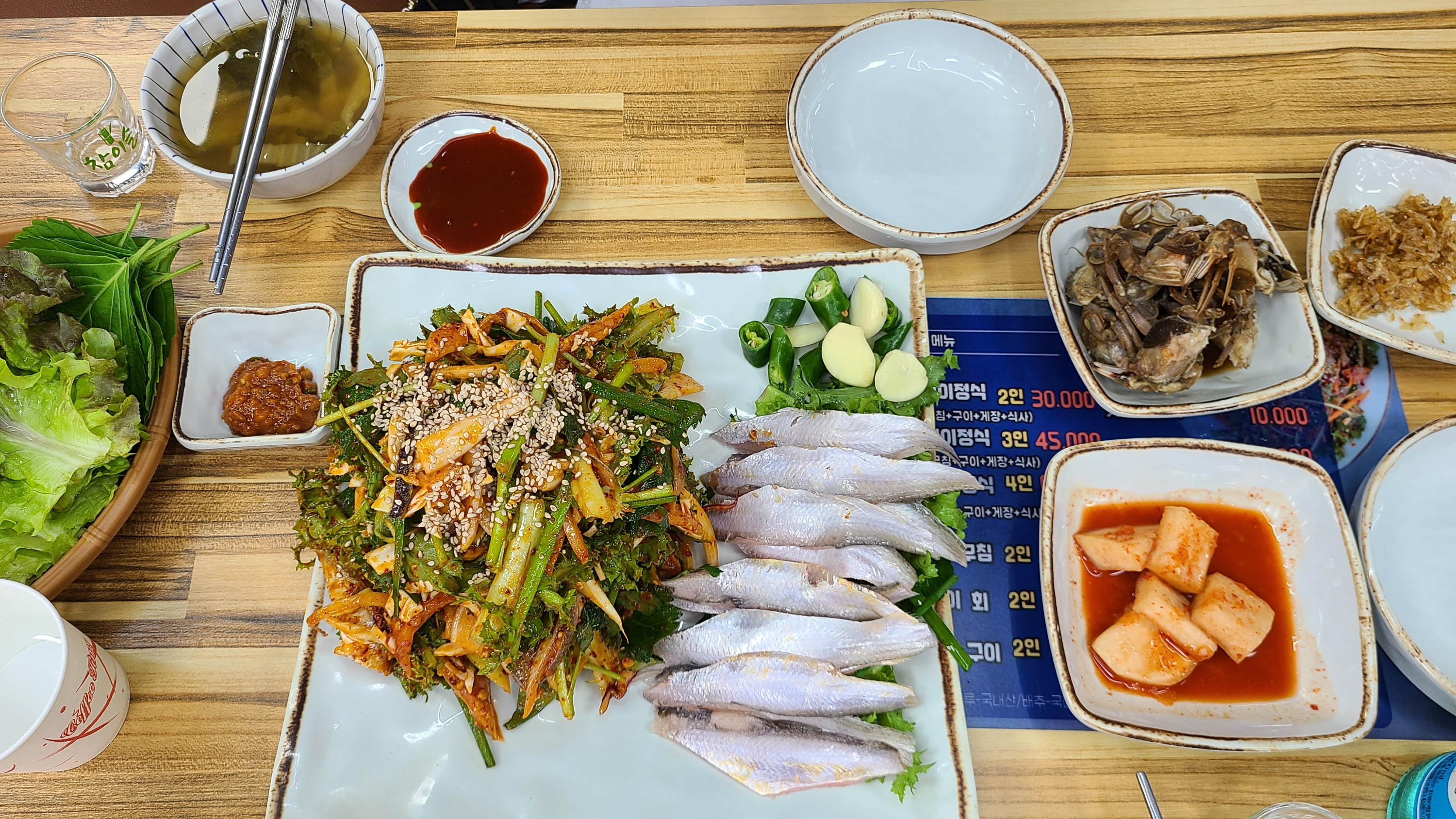두어곳을 헤메이다 잧아들어가 싱싱한 벤댕이 회와 구이,무침으로 소주한잔에 이른 저녁을 먹는다.