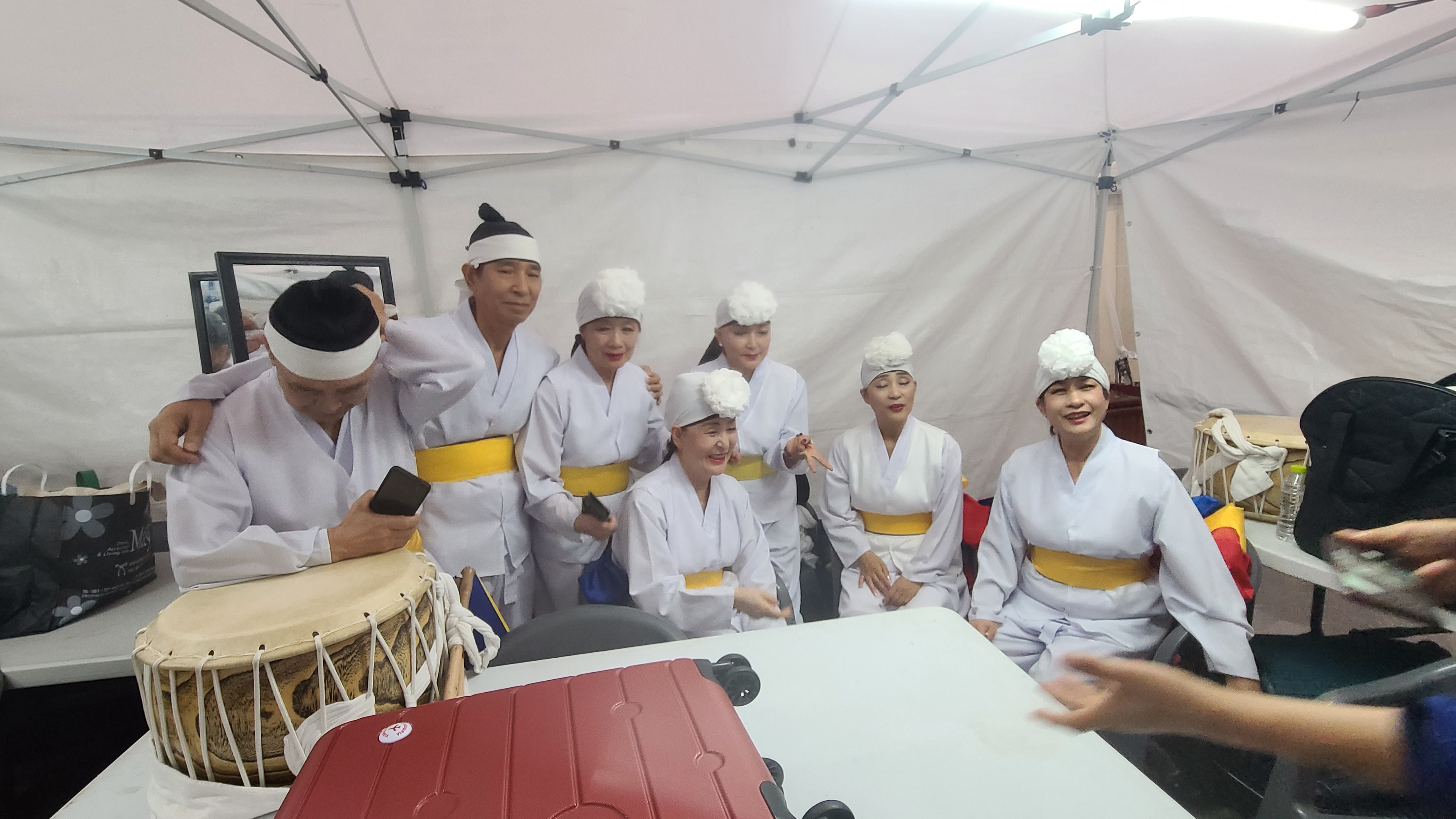 임시로 설치된 천막에서 친구와 공연팀을 반갑게 만나 인사를 하고 잠시 무대로 나아가 공연을