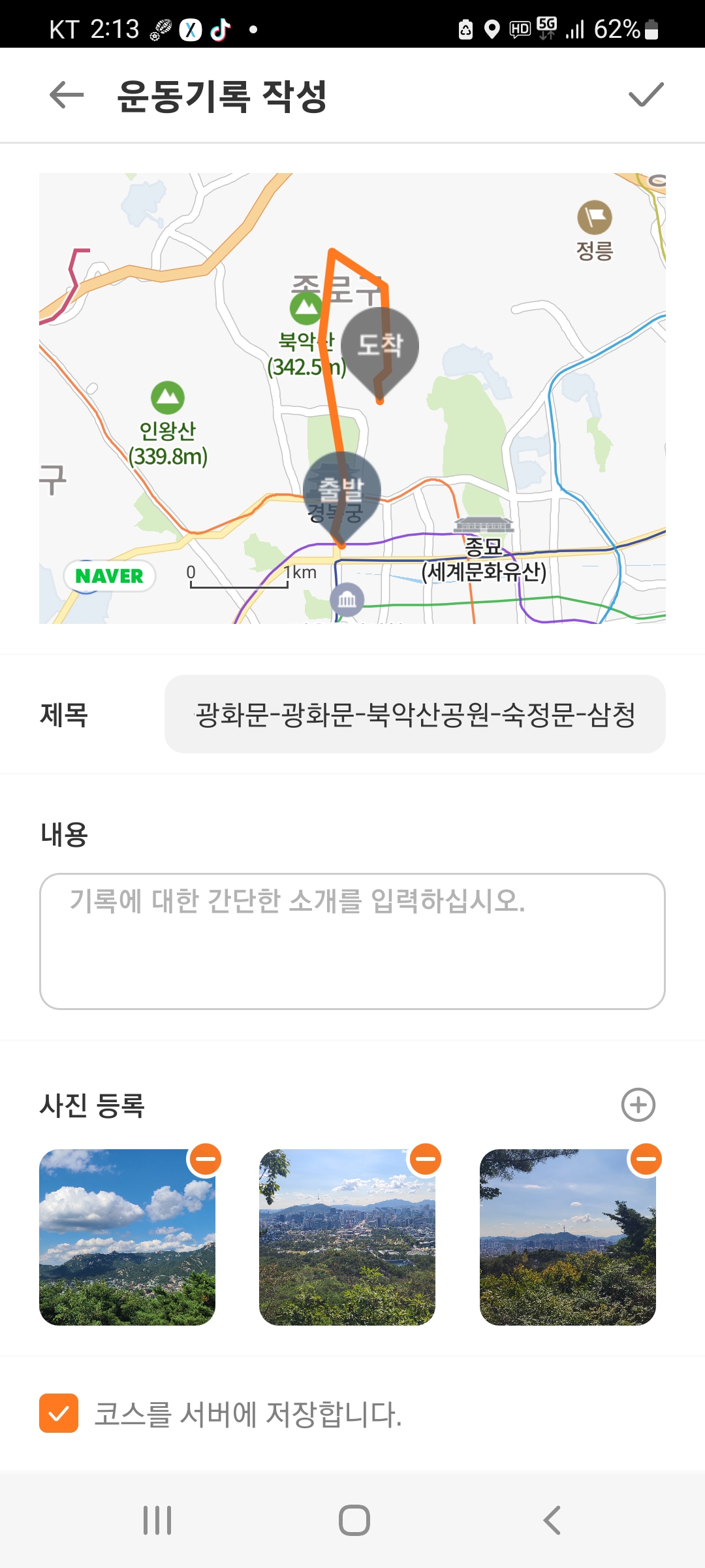 사흘연휴의 첫날이고 활터도 양궁습사가 있어 올라갈 수 가 없으니 북악산을 걷기로한다.