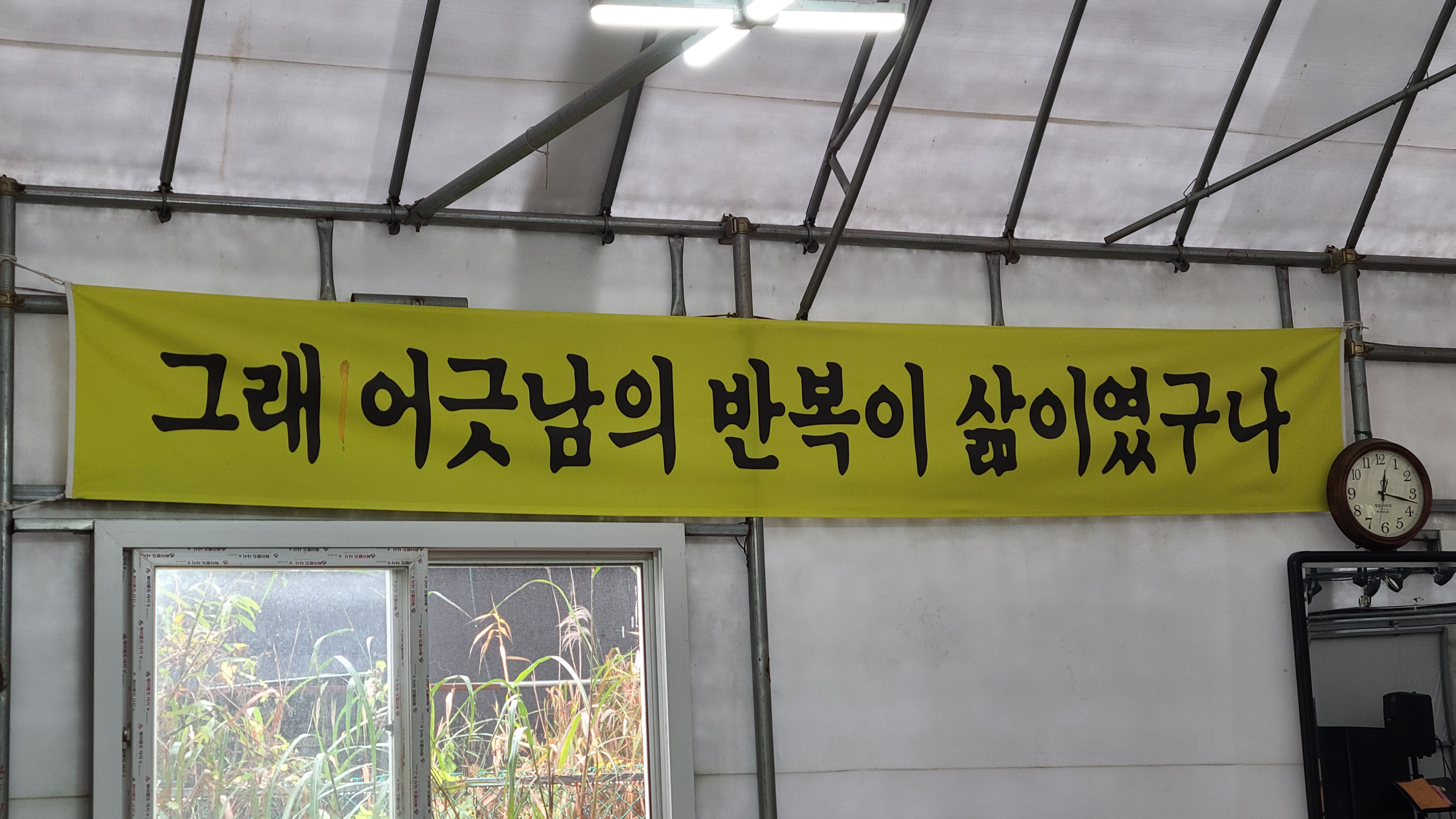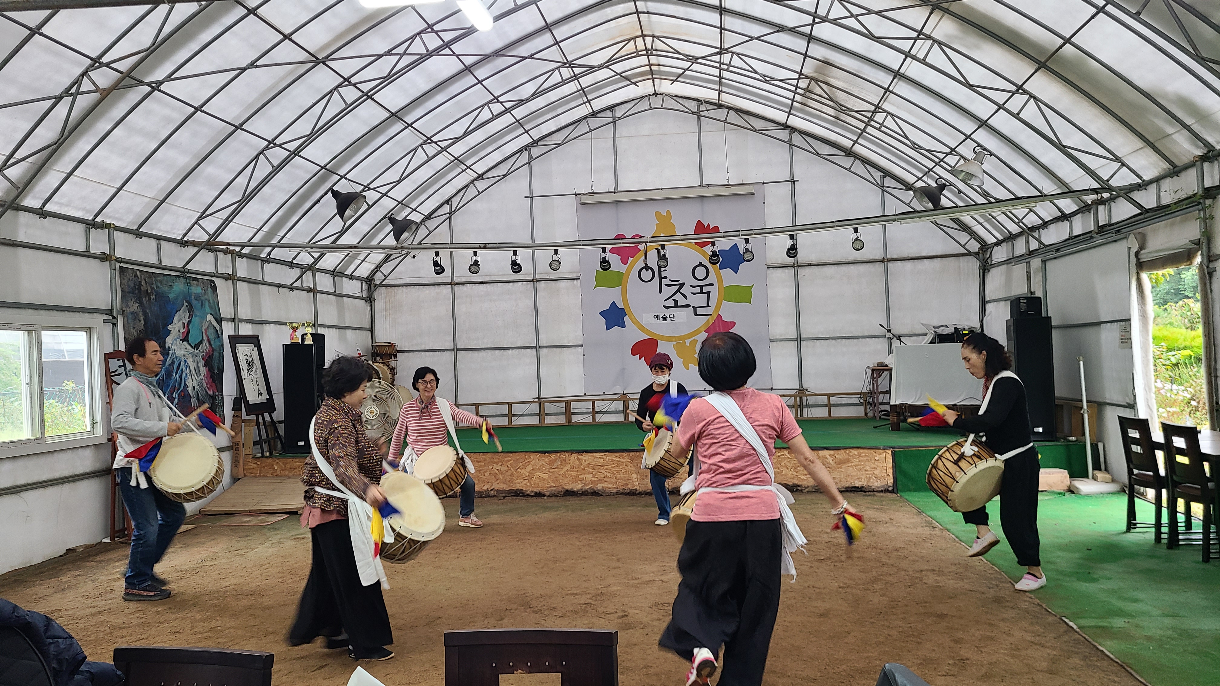 커다란 천막을 짖고 그 안을 연습장으로 활용하며 이미 연습에 열중하고있다.