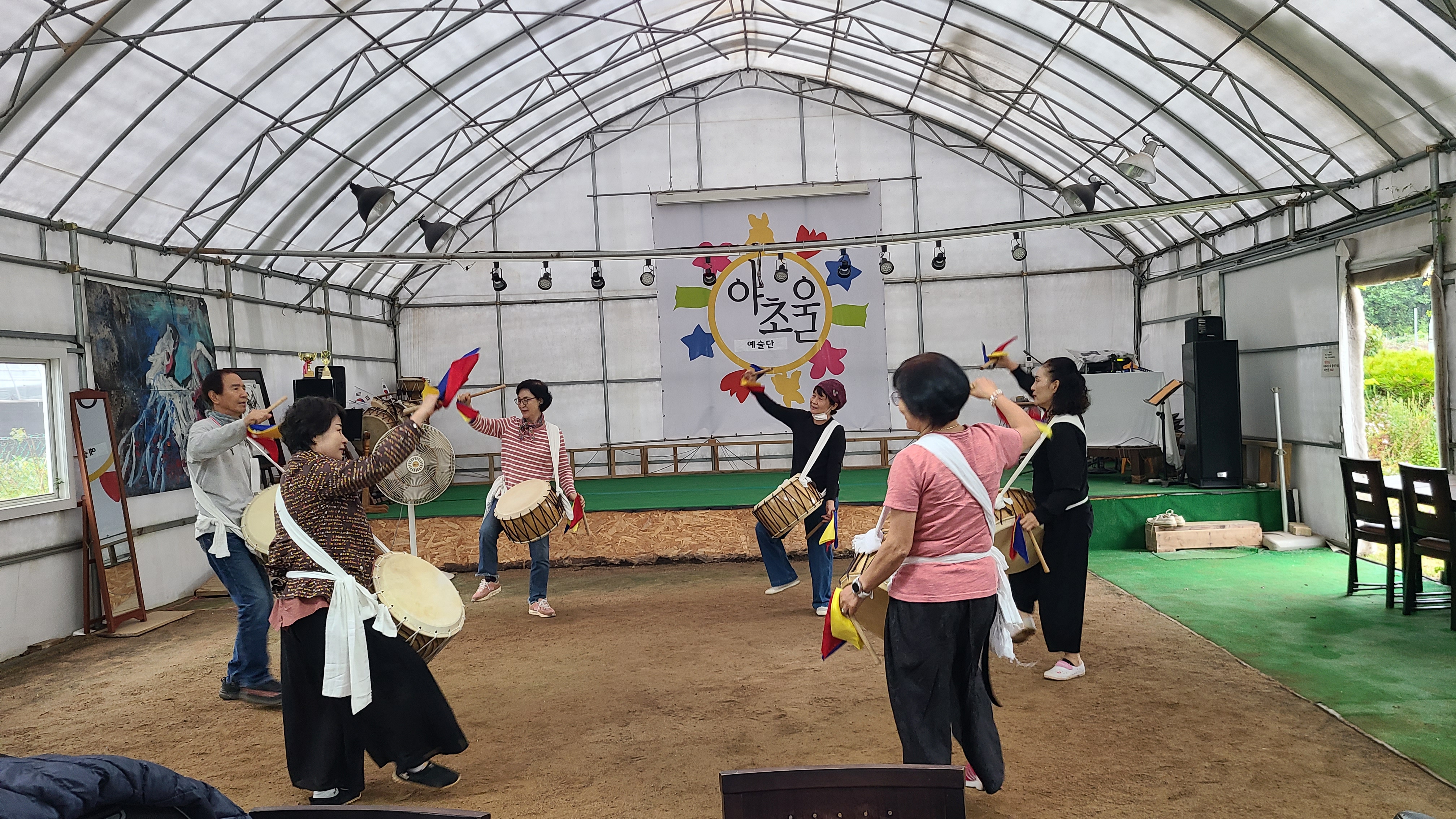 커다란 천막을 짖고 그 안을 연습장으로 활용하며 이미 연습에 열중하고있다.