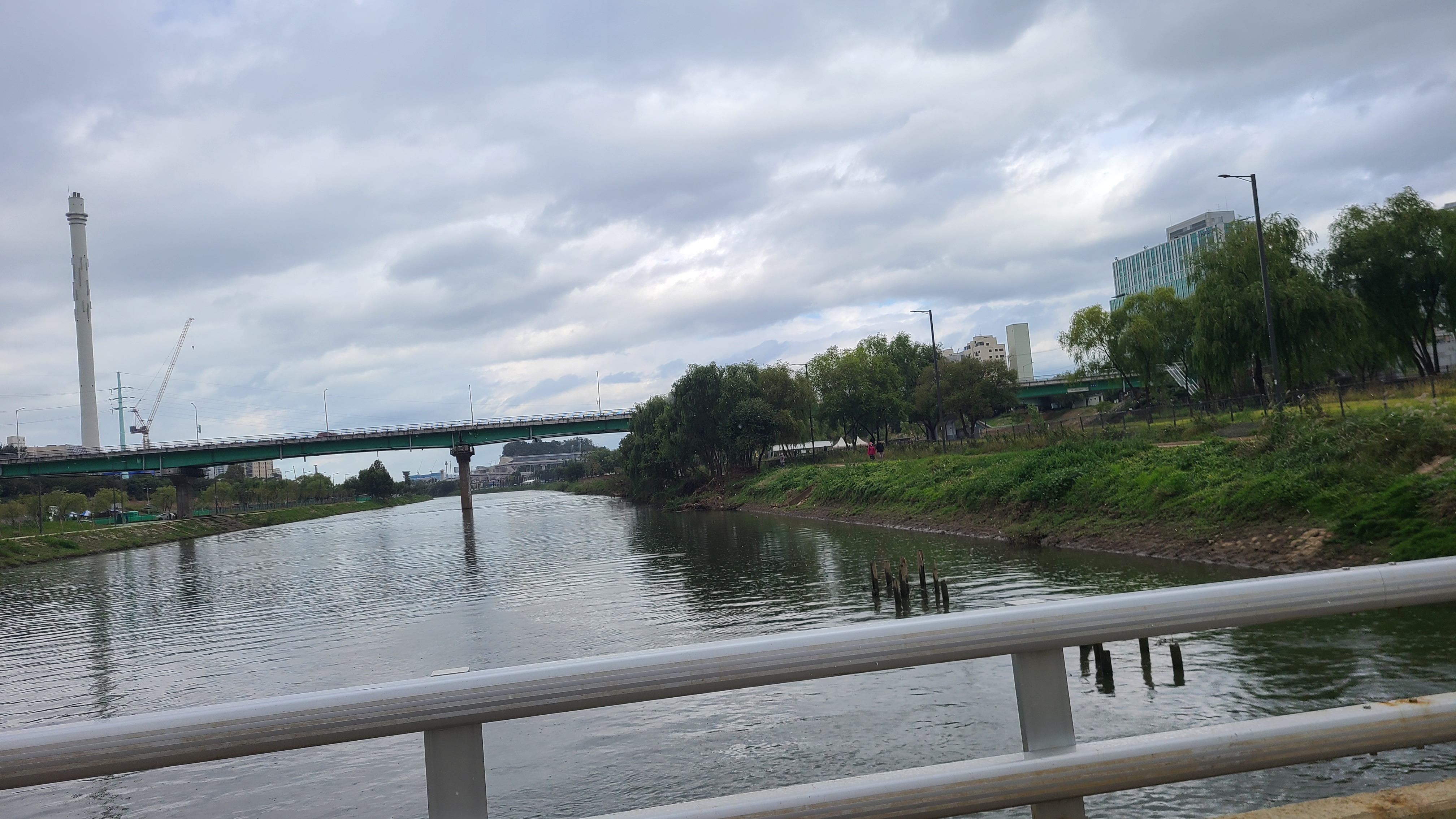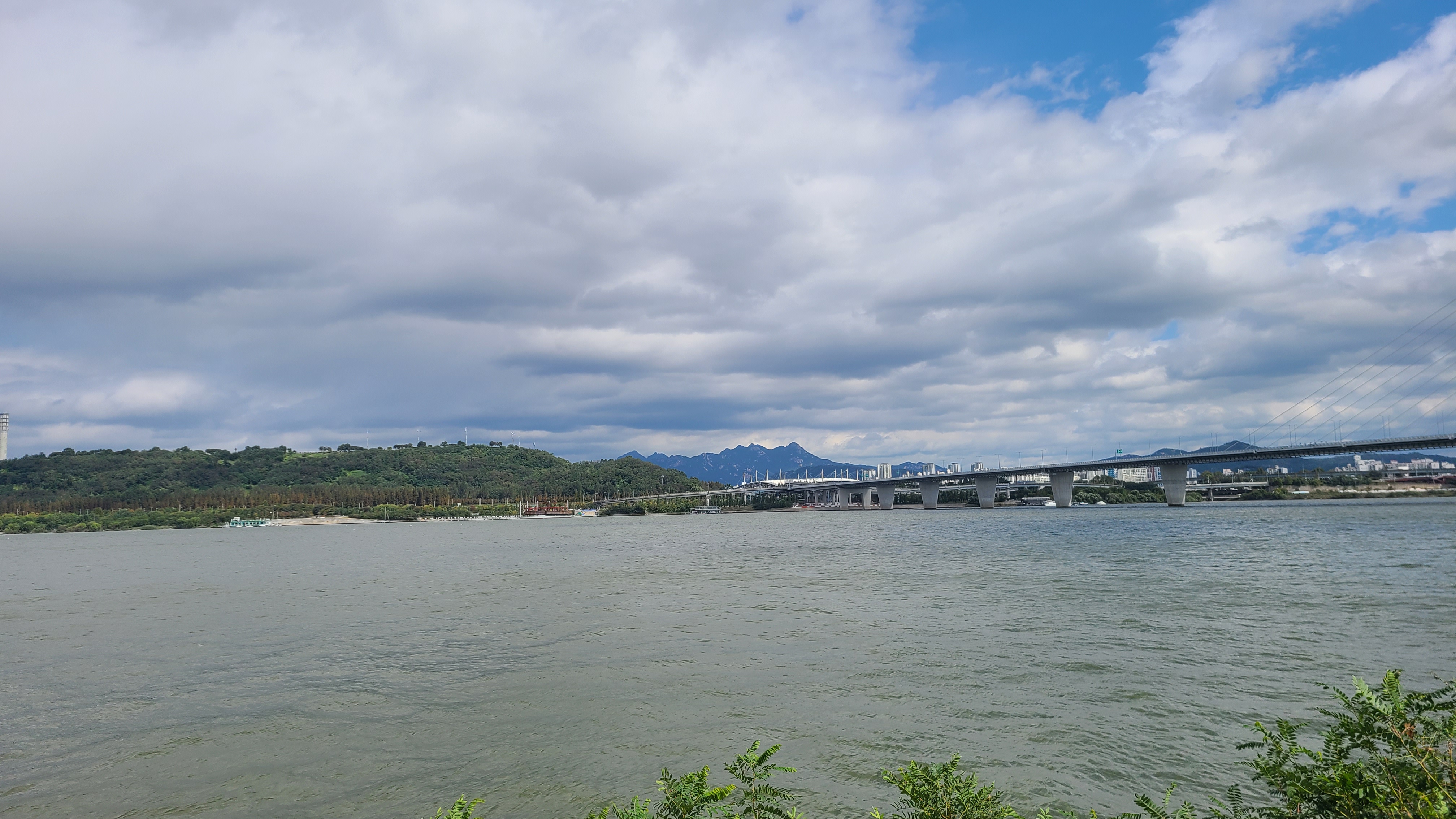 신정교를 올라서서는 한강방향으로 달리는데 흐리고 비가오기 시작하는데 가랑비 수준이다.