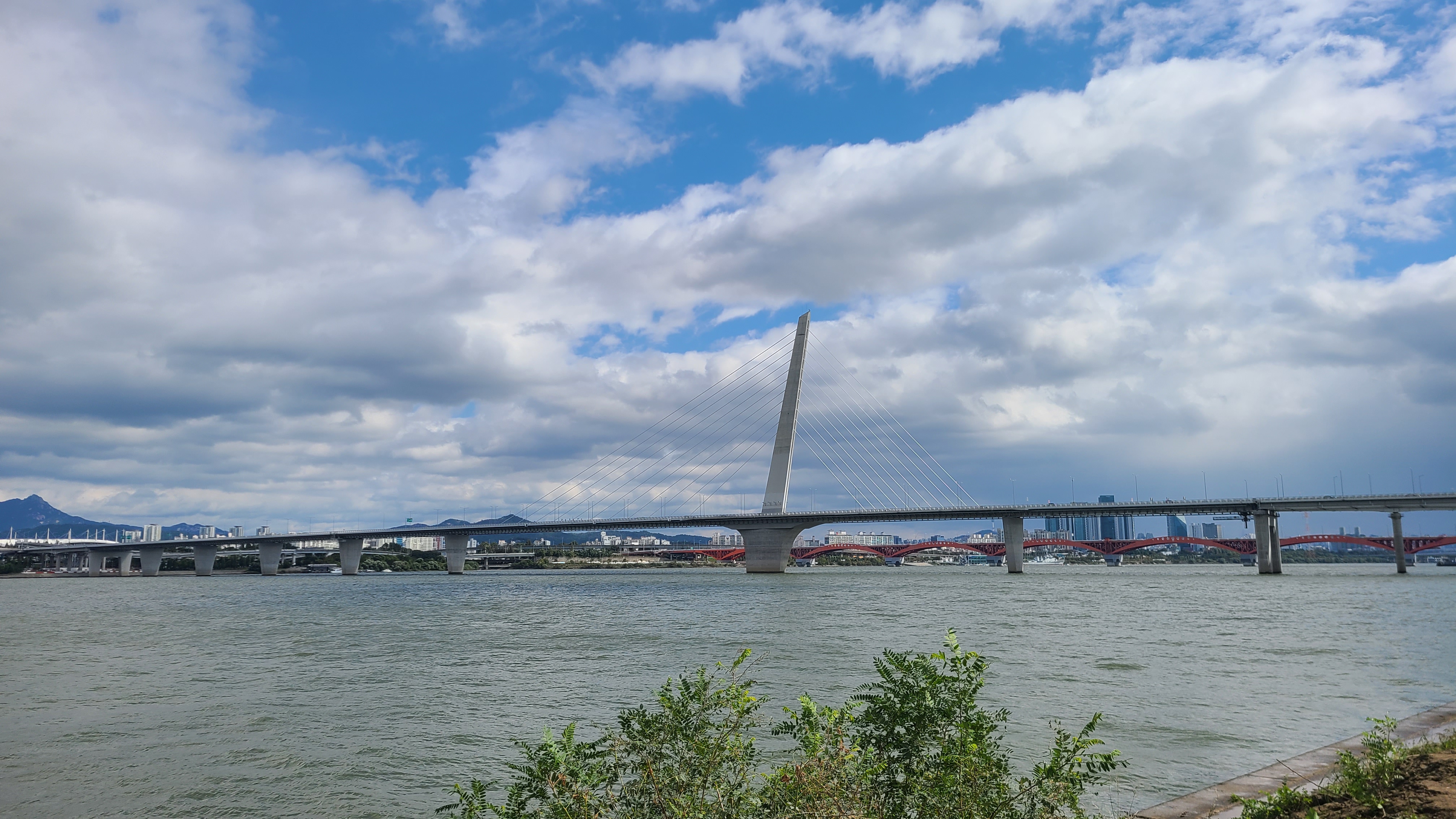 방화대교부근에서 즉석라면과 빵으로 점심을 대신하고는 다시 한강변을 달린다.