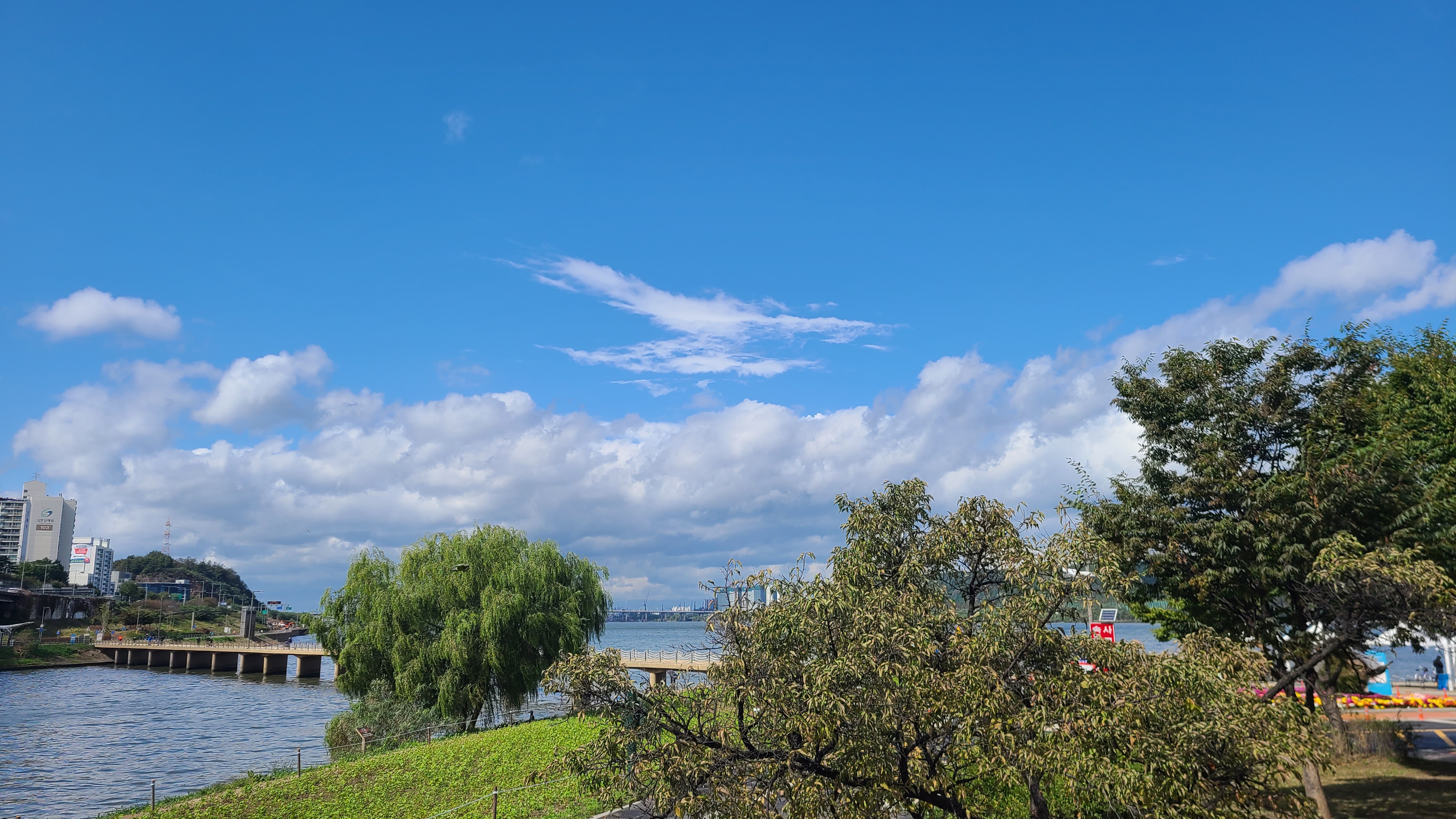 다시 합수부를 지나 안양천을 달리니 가을의 정취가 제대로 이다.