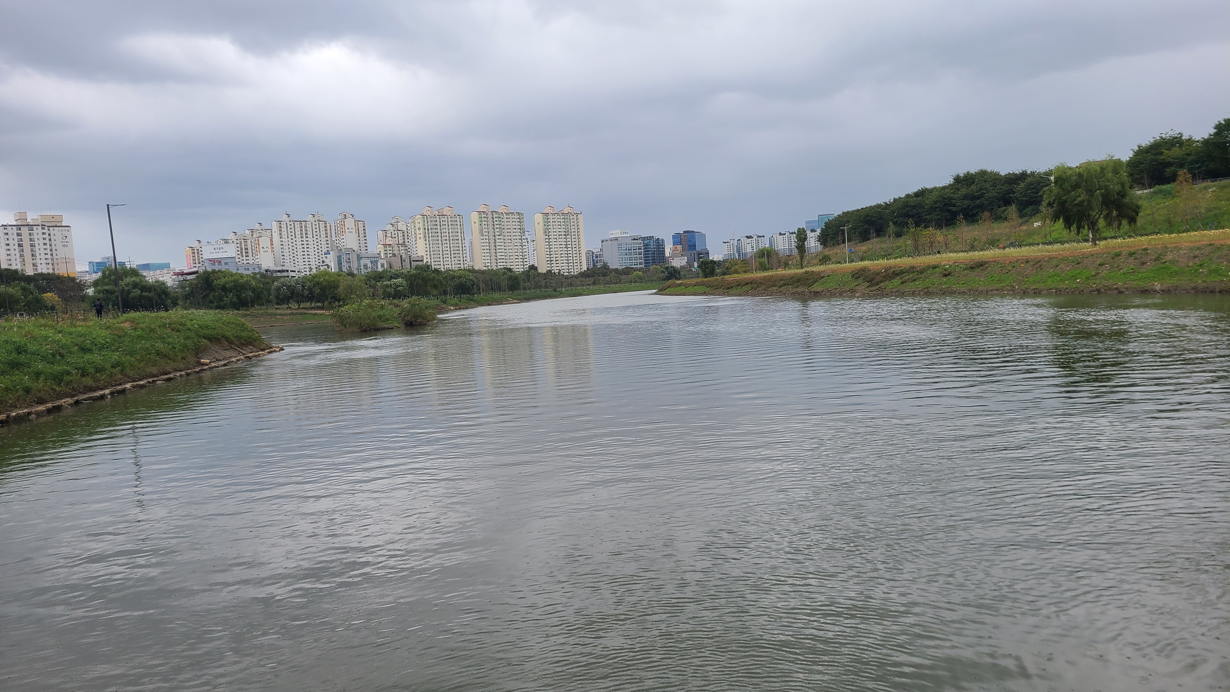 신정교를 올라서서는 한강방향으로 달리는데 흐리고 비가오기 시작하는데 가랑비 수준이다.
