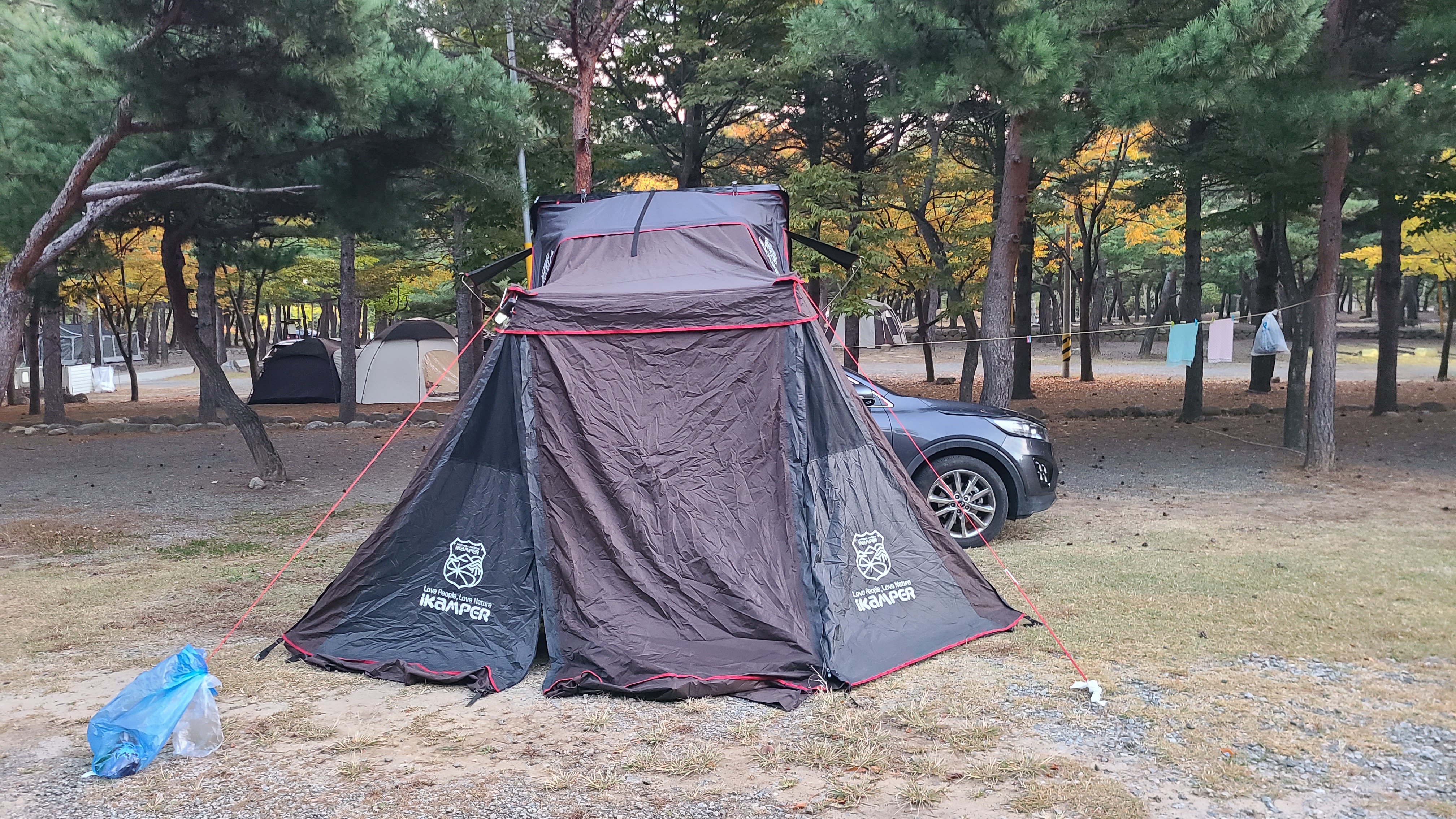 가을 햇살아래 텐트와 어닝,전기담요와 이불들을 충분히 건조시키고는 캠핑장을 떠난다.