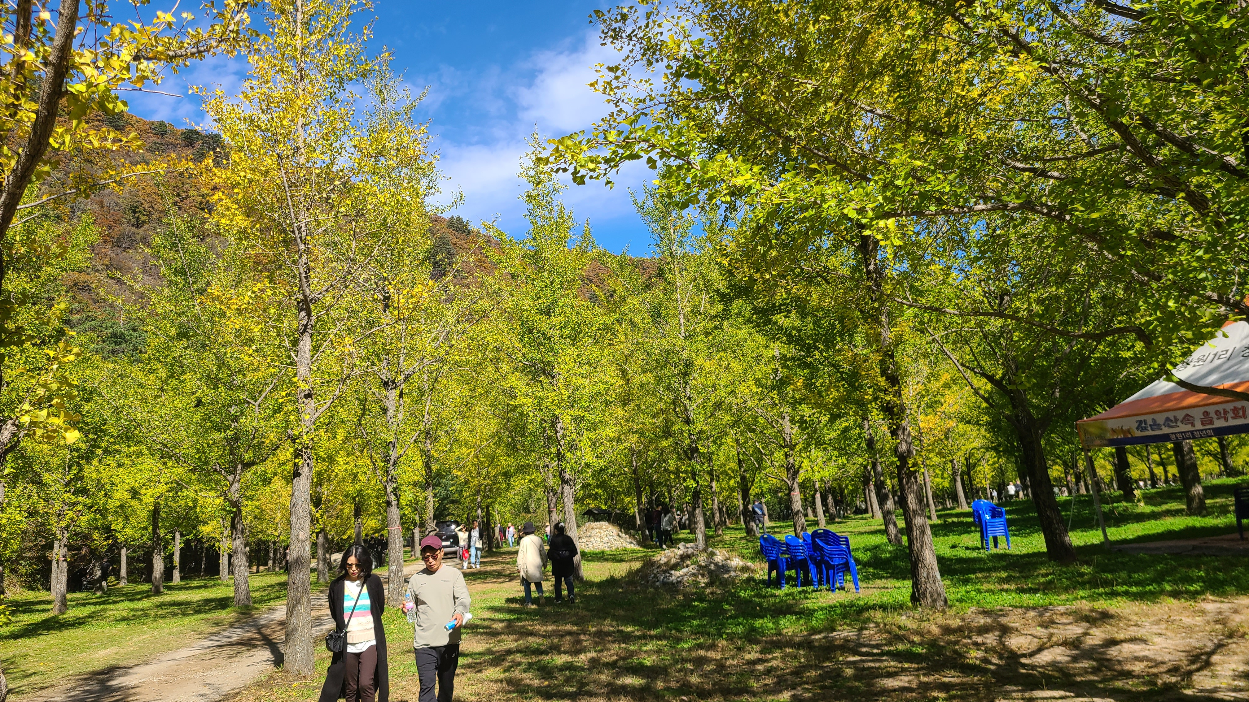 싱싱한 사과대추를 구입하여 맛보면서 은행나무 숲을 들어가 단풍을 즐긴다.