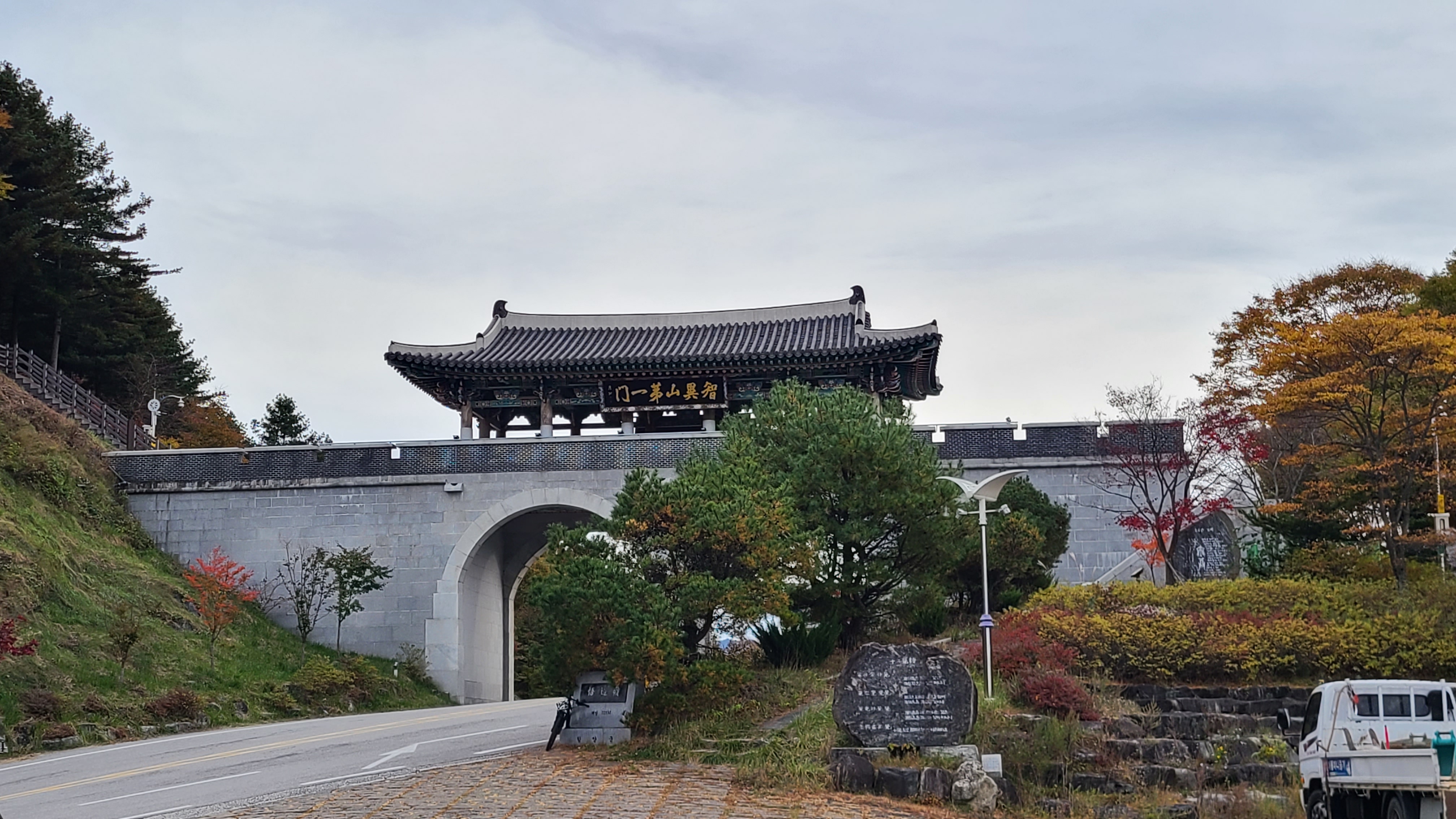 울긋불긋한 단풍이 산야를 물들이고 지리제일문이라는 오도재를 올라서니 발아래 펼쳐진 벌판과
