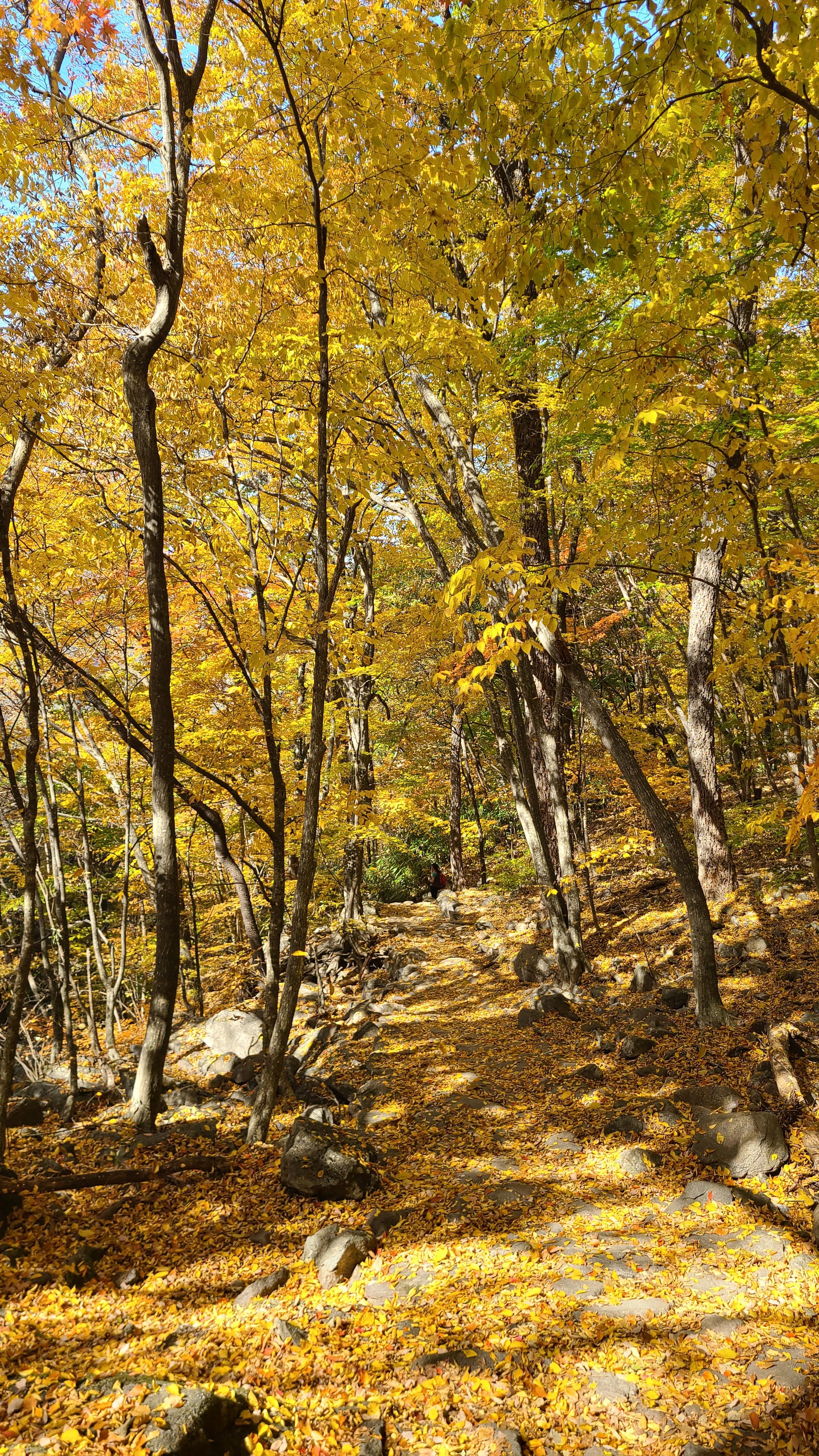 그러나 돌길을 내려가는 것도 상당히 부담이 되고 특히 무릎이 좋지않은 도반은 힘들어한다.