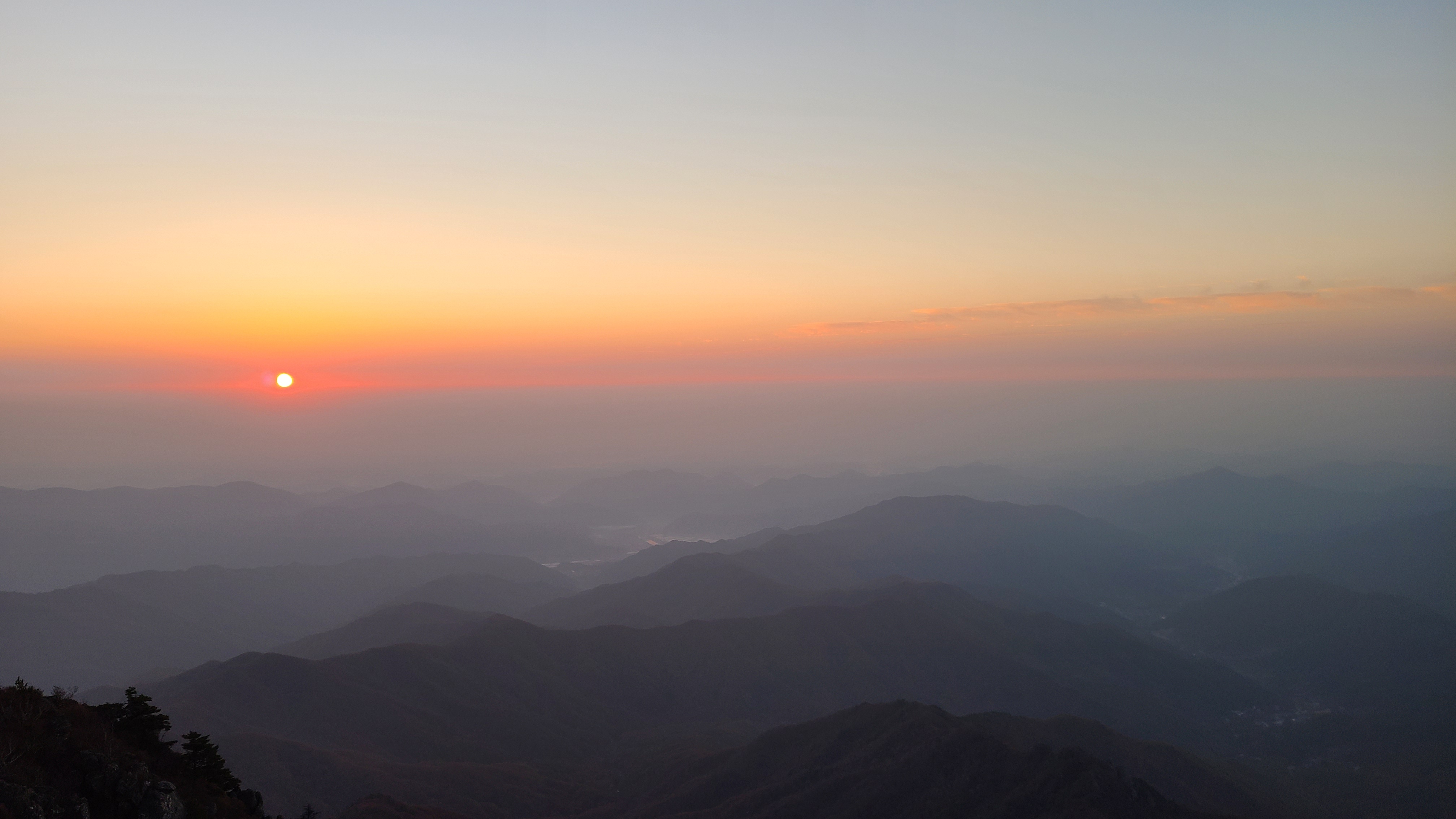 동쪽하늘이 붉게 물들다가 어느사이 붉은 점하나가 솟아오른다.