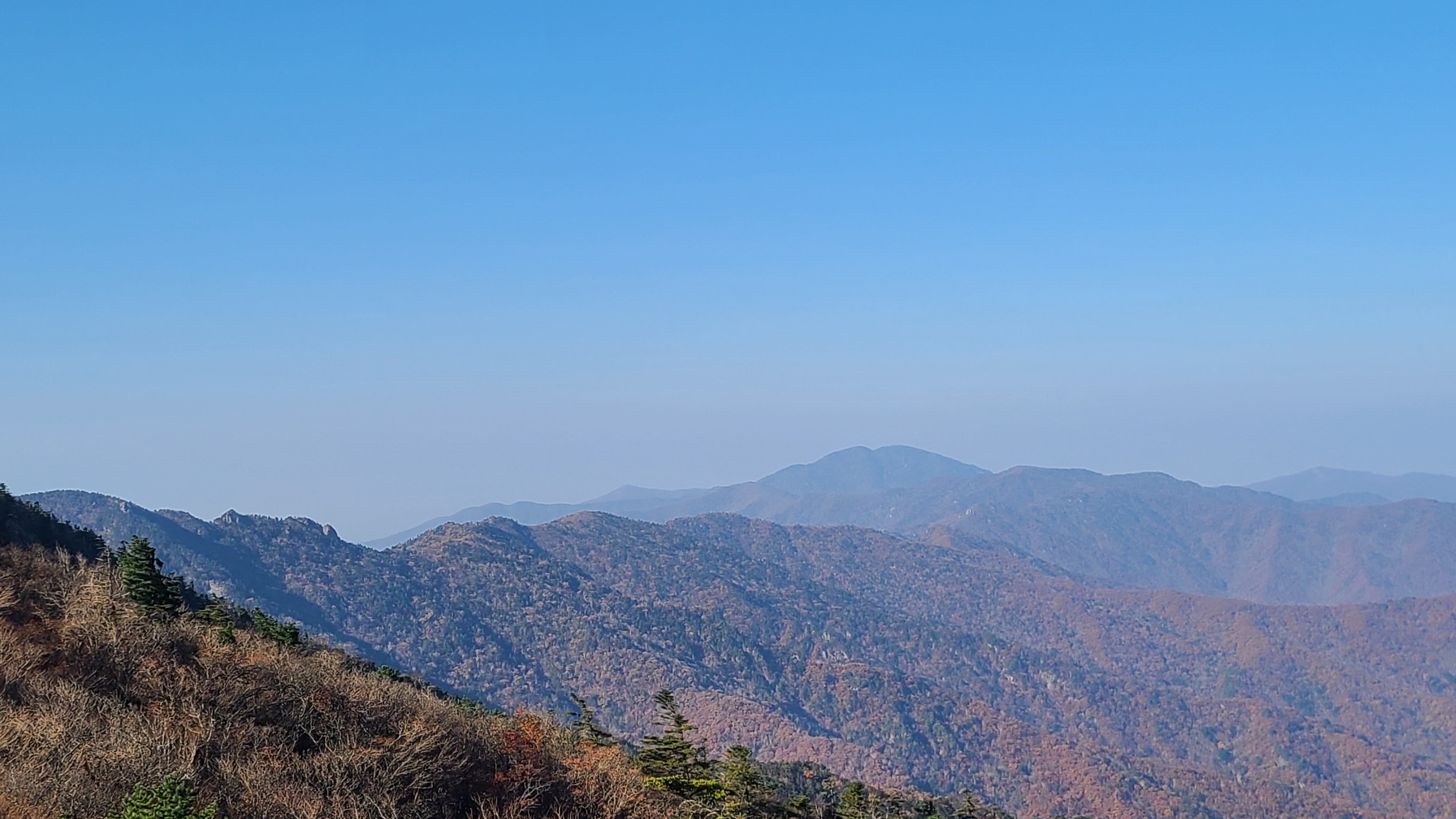 너무 이르게 출발하니 천왕봉에서 한참을 기다려야 할 것 같아 천천히 올라가자는데 도반은