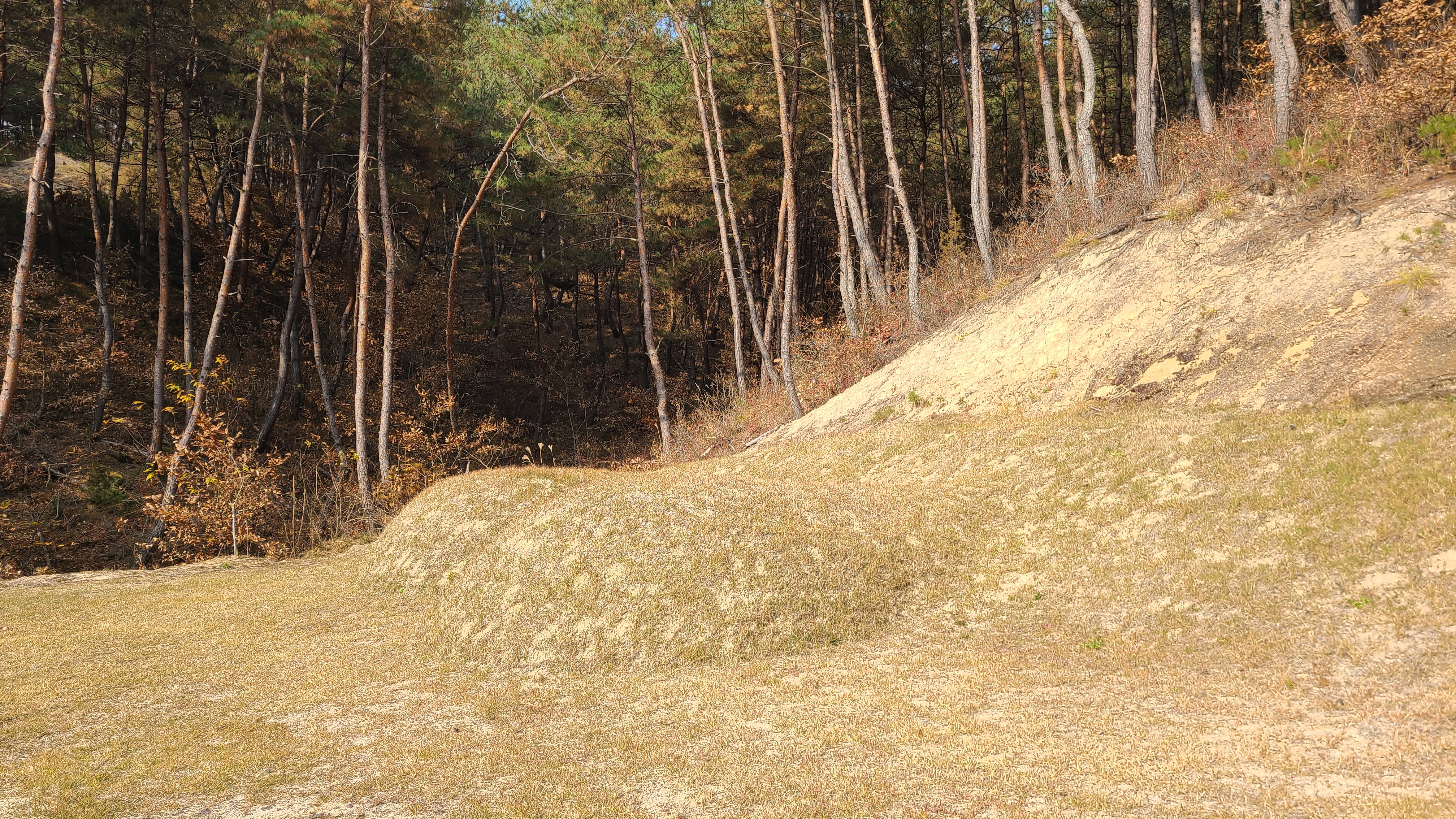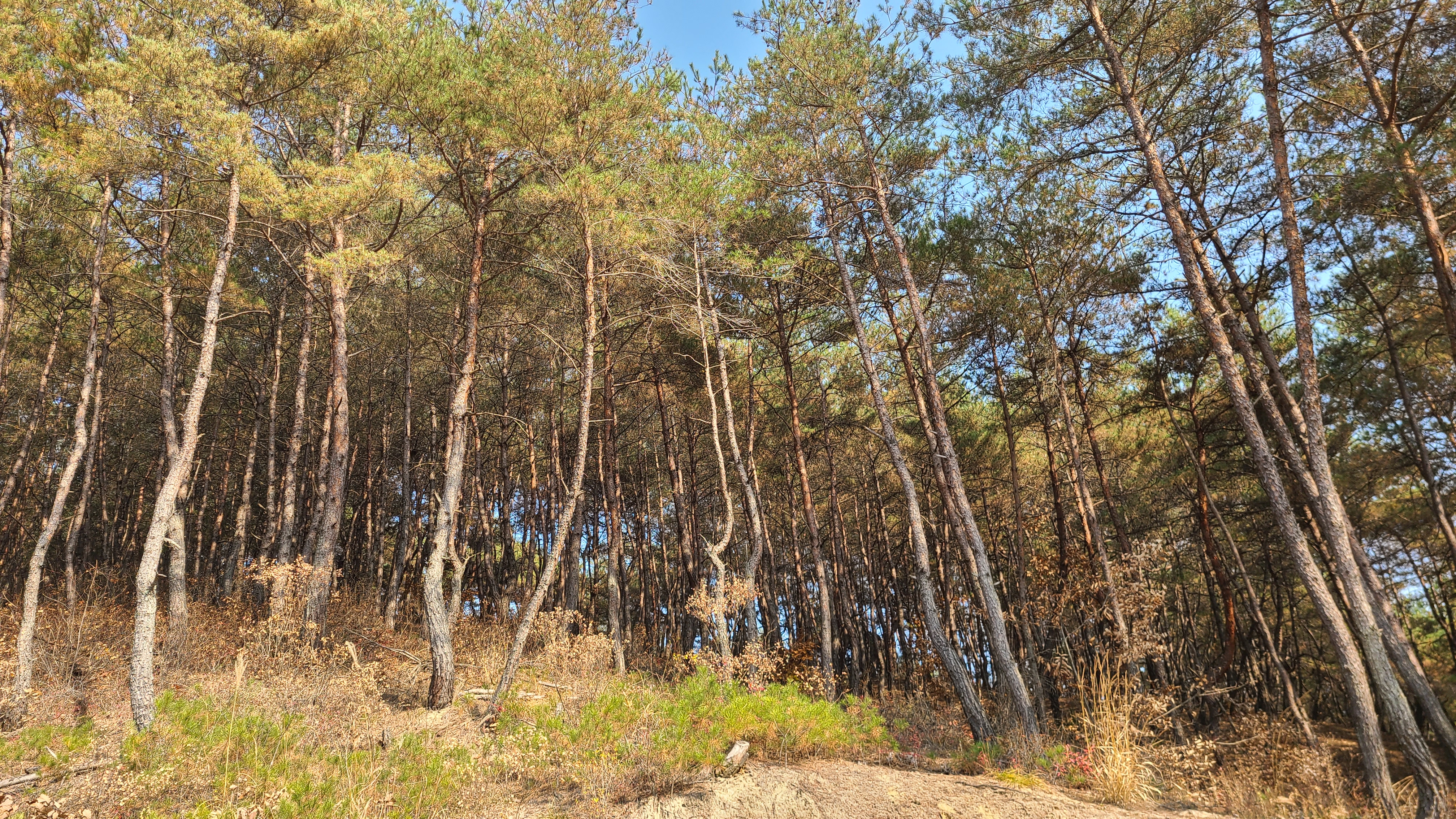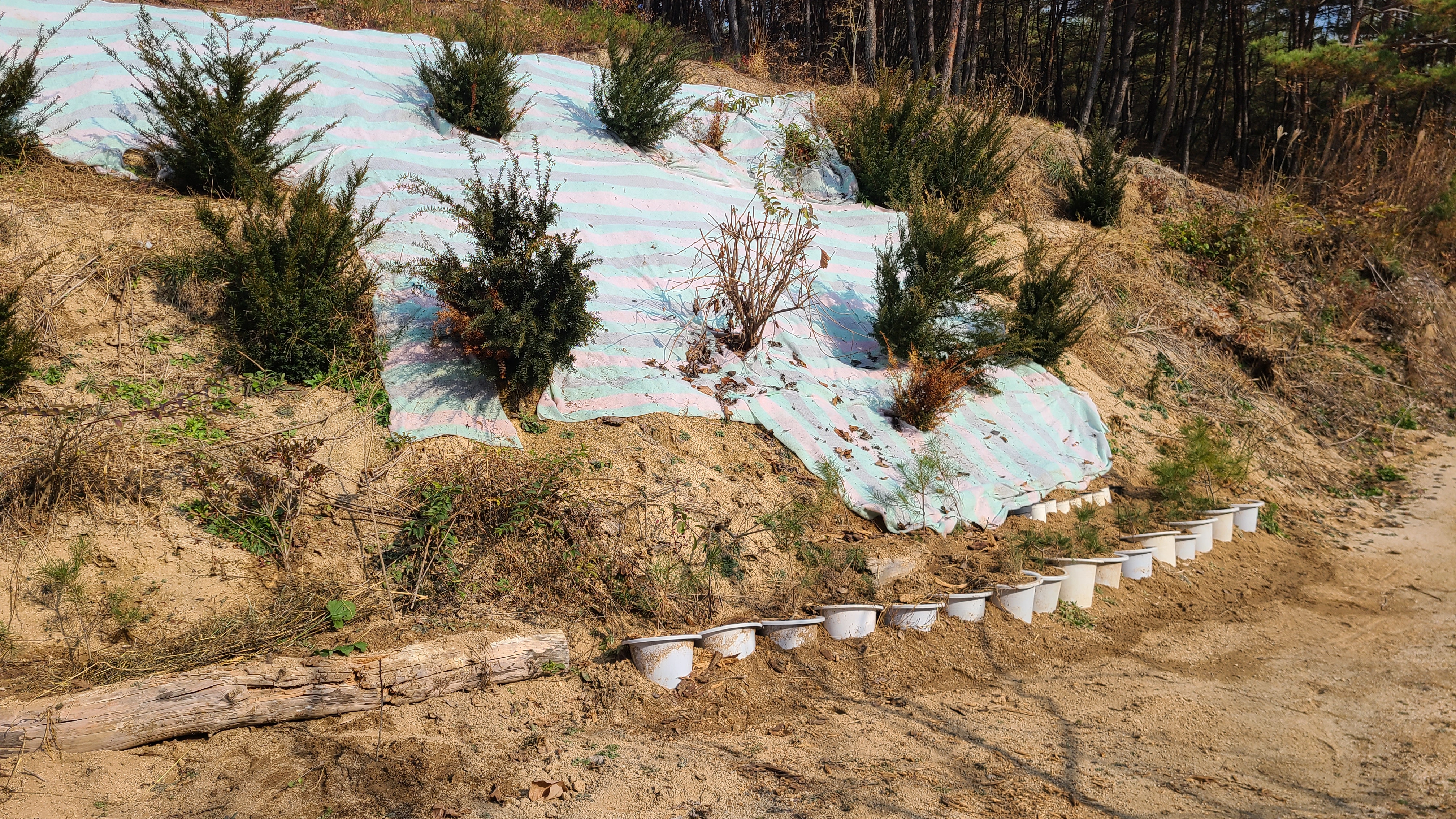 아침에 기상하여 식전에 부모님 산소주변을 소나무를 옮겨심은 화분들을 보기좋게 땅에 묻어