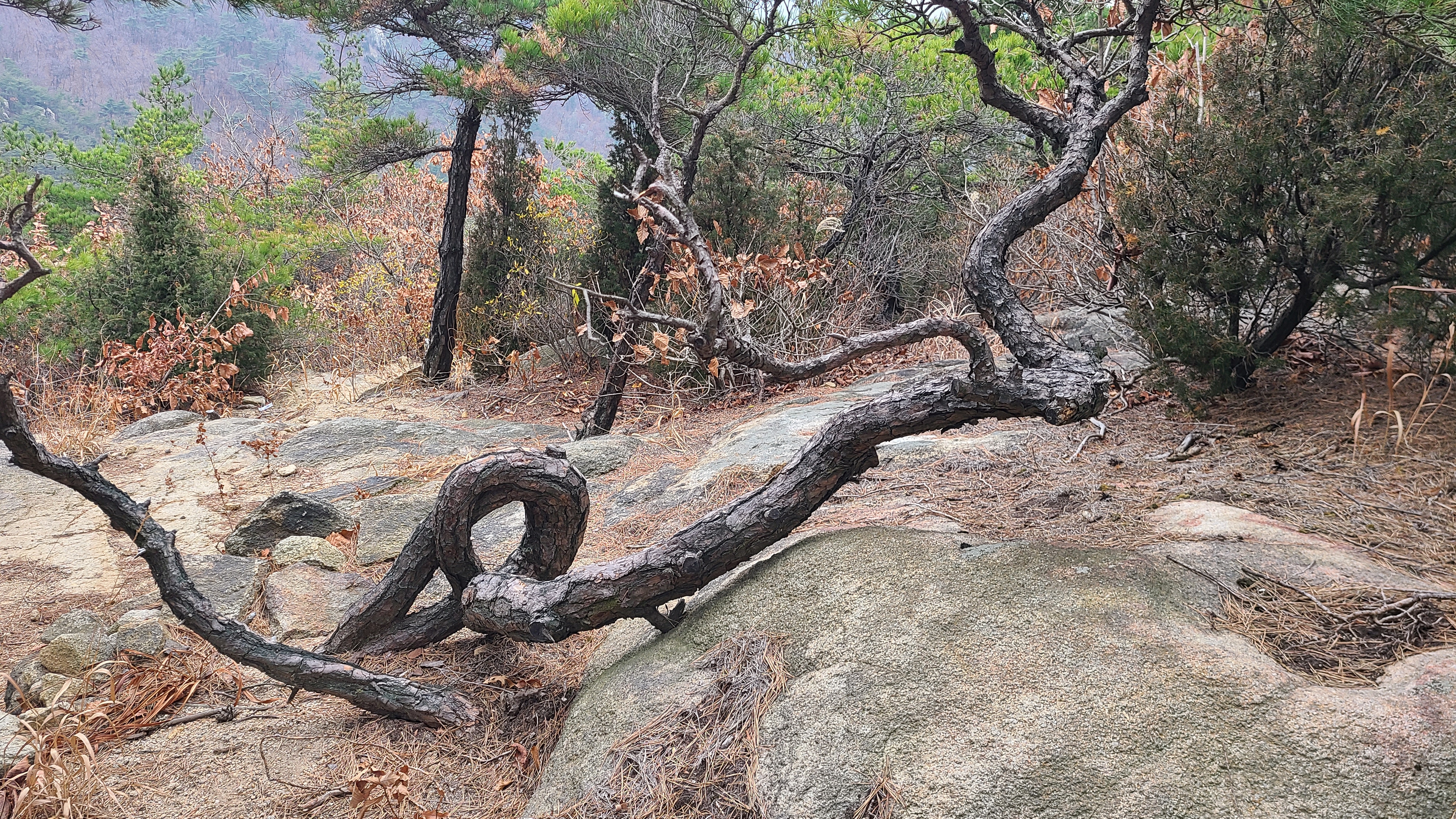 삼성산정상부의 멋진 소나무와 함께 이 코스의 기이한 소나무도 오랫만에 만나니 좋다.