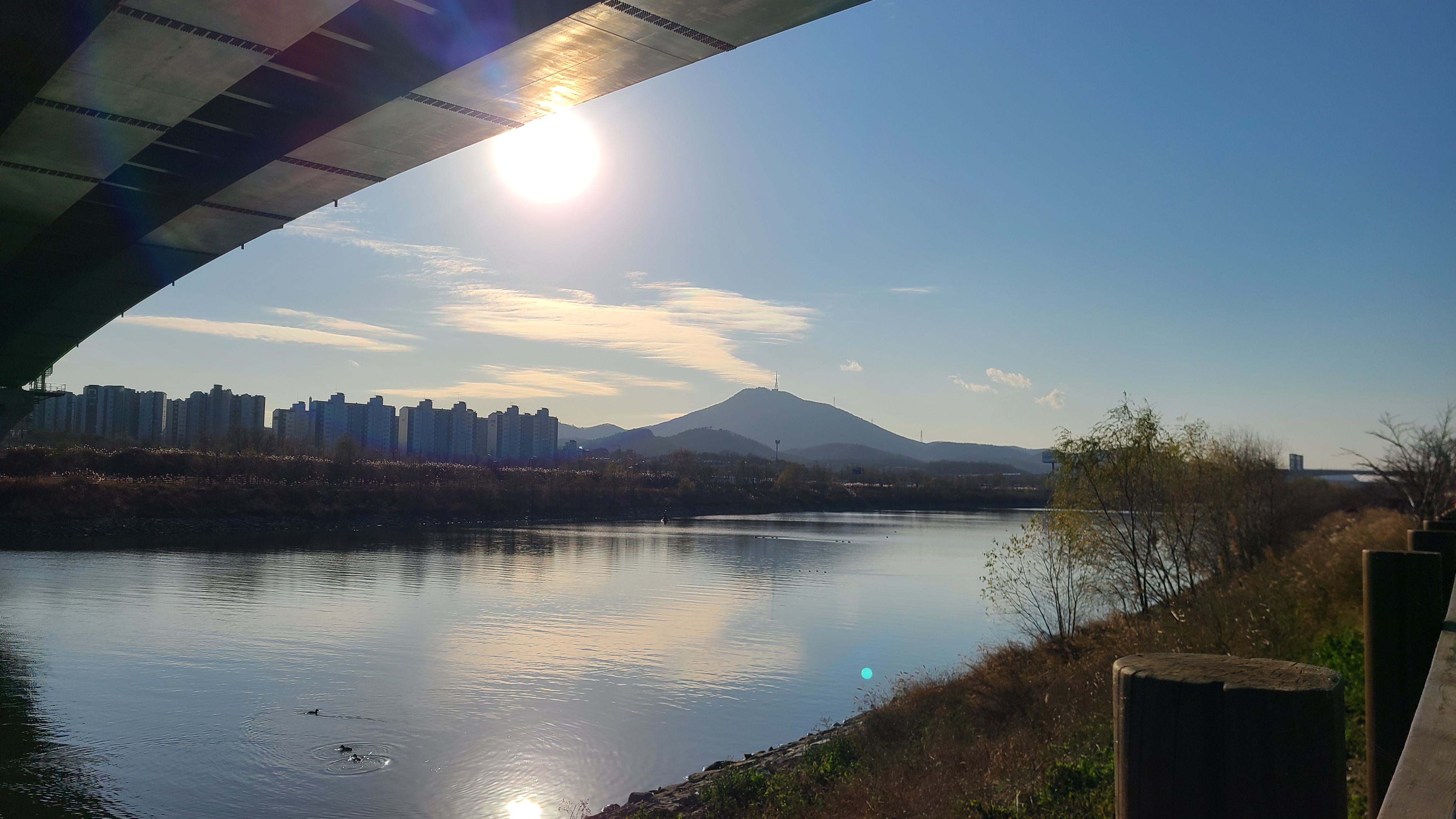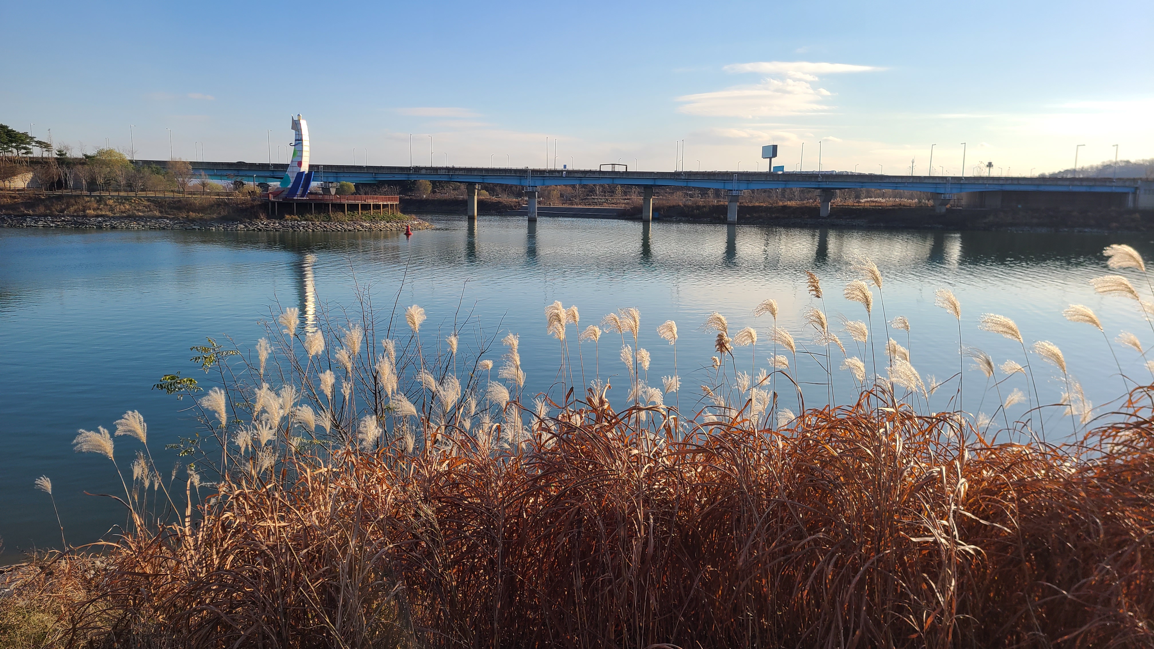 활터를 나와 캠핑용의자를 A/S 받고는 유명맛집에서 돈까스로 점심을 먹고는 아라뱃길의 계양대교로 이동한다.