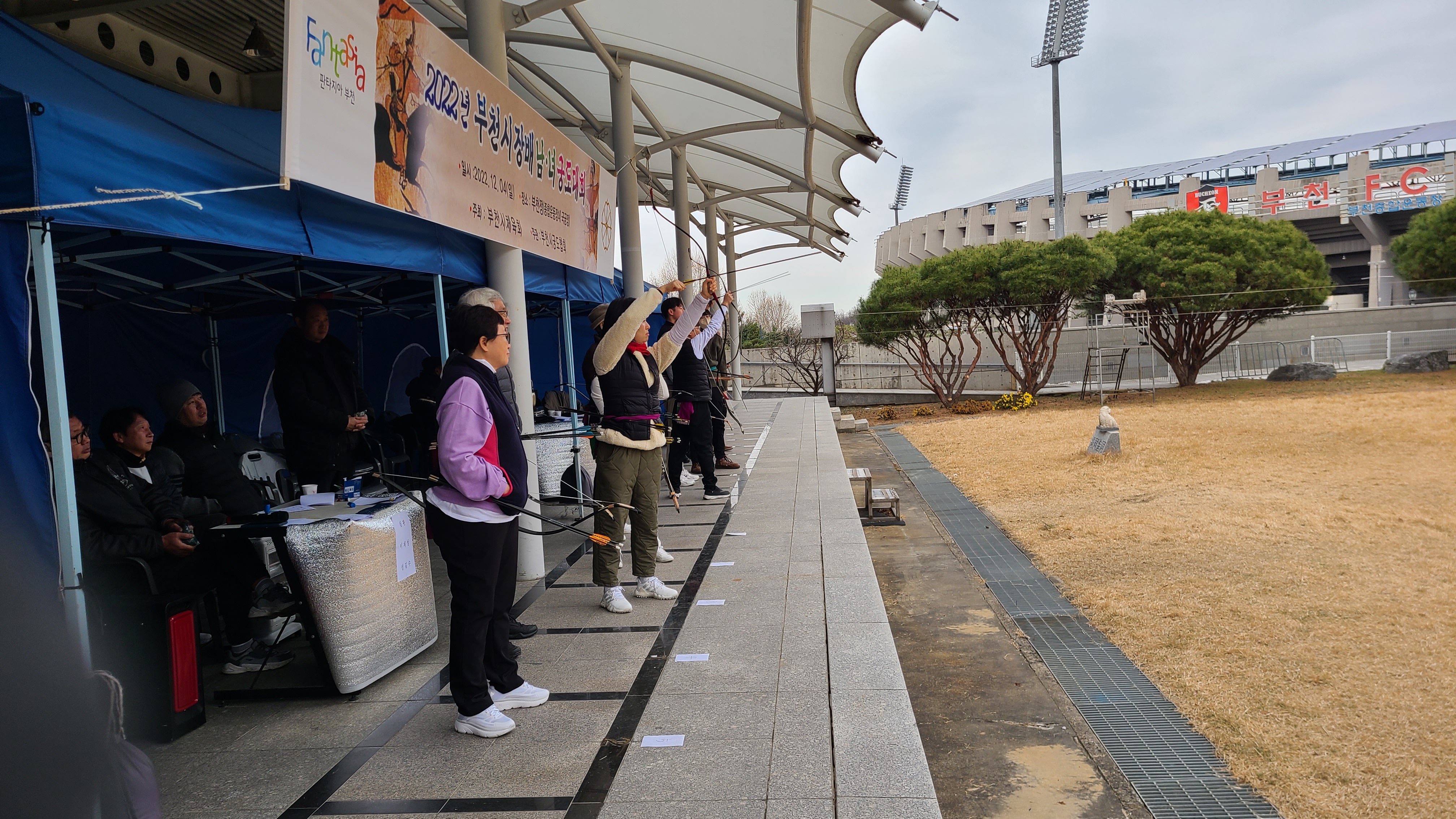 시장기대회라지만 부천시에 소재하고있는 부천정과 성무정,두곳의 활터에 소속된 사우들이 모여