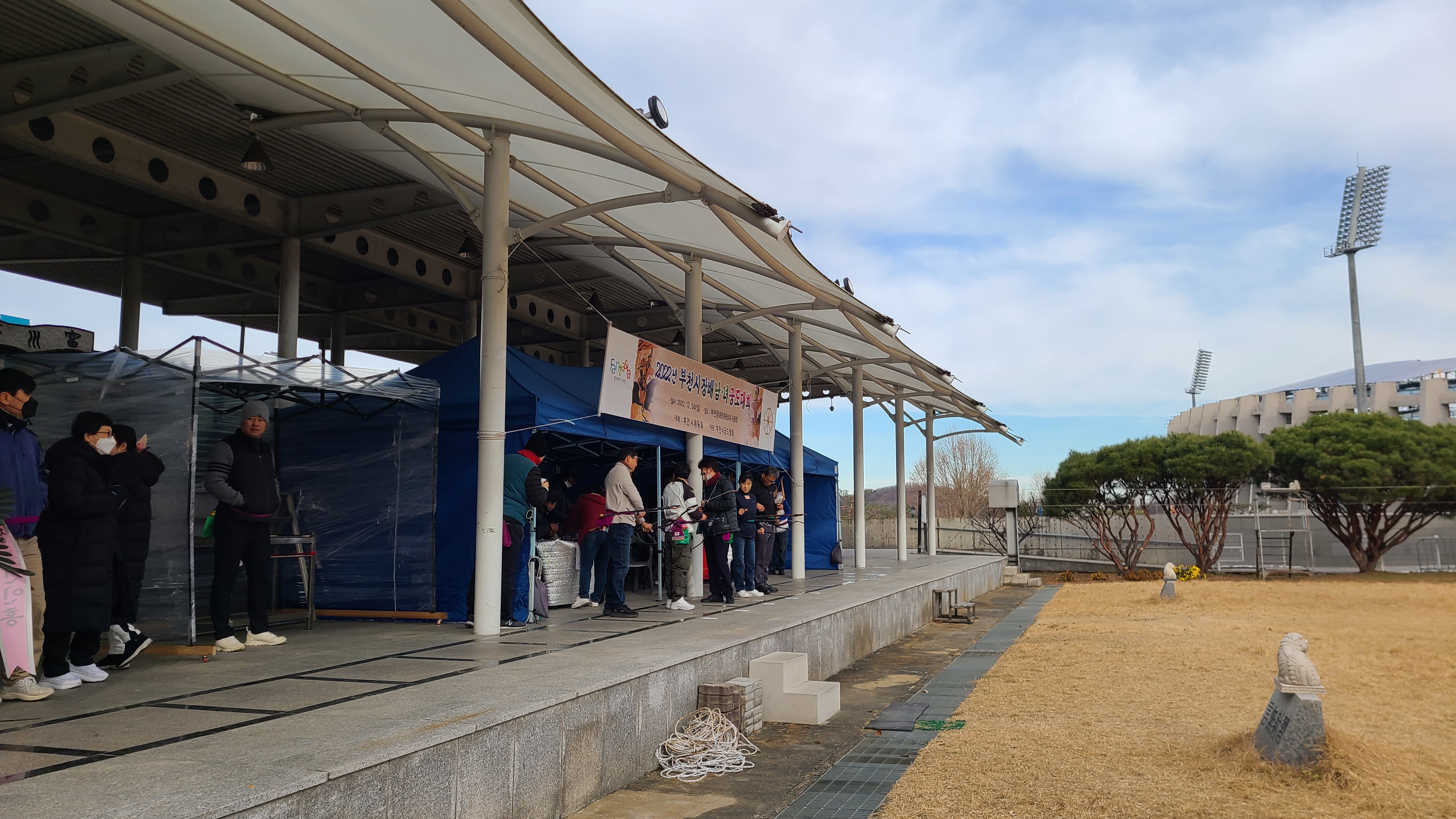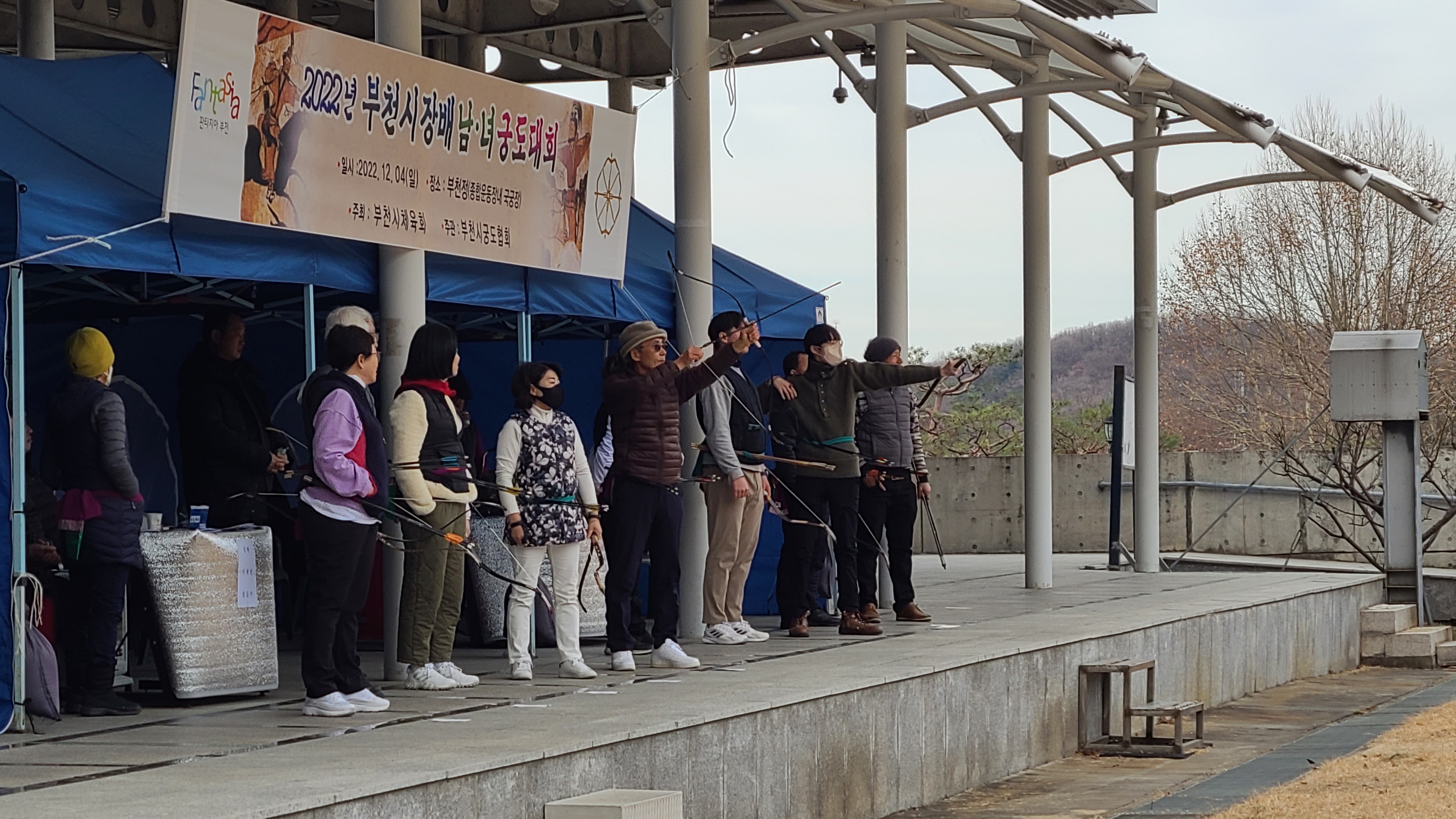 그래도 활터에는 천막도 치고 히터도 동원하여 나름 추위를 최대한 피하도록 사우들이