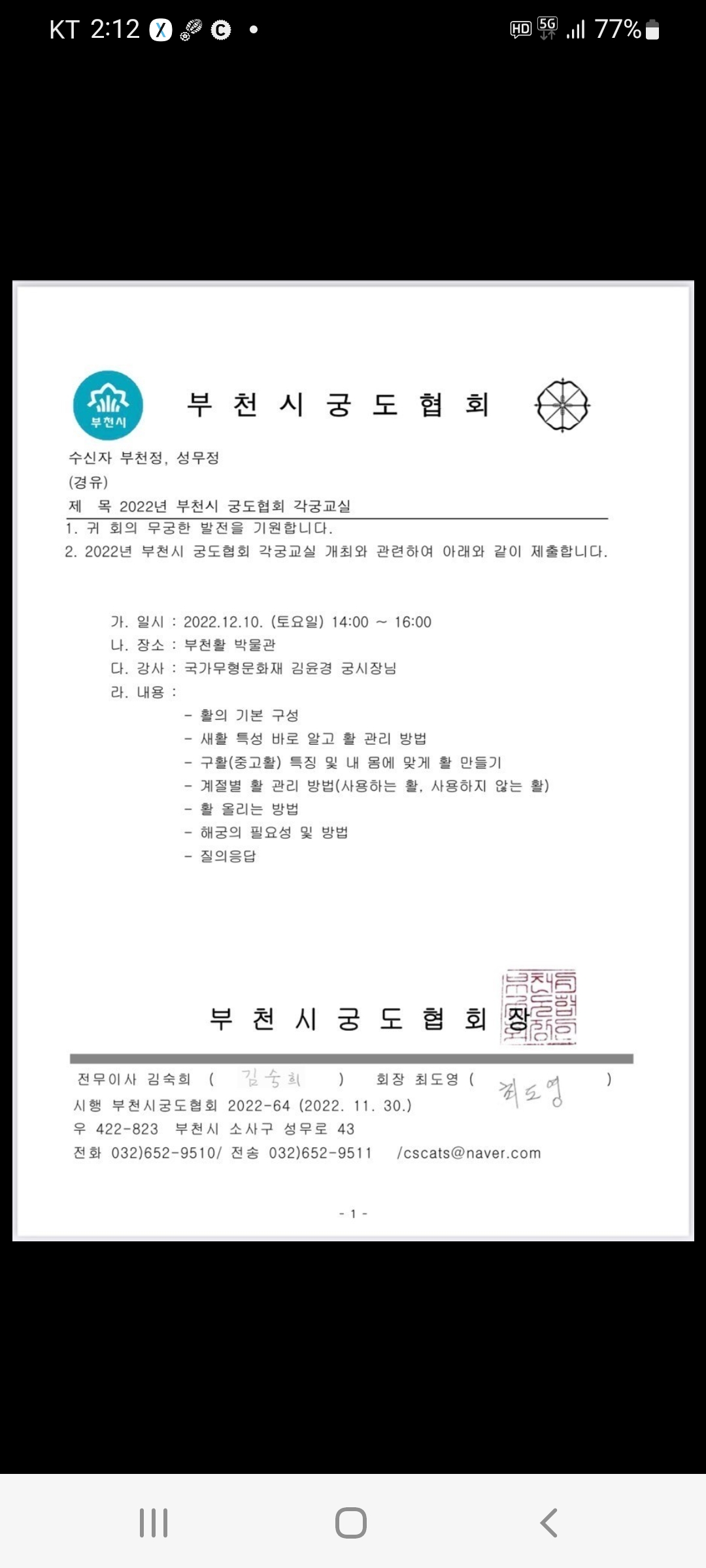 다니는 활터에서 각궁에 대한 교육이 있고 각궁을 사용하지않더라도 활에대한 기초지식차원에서