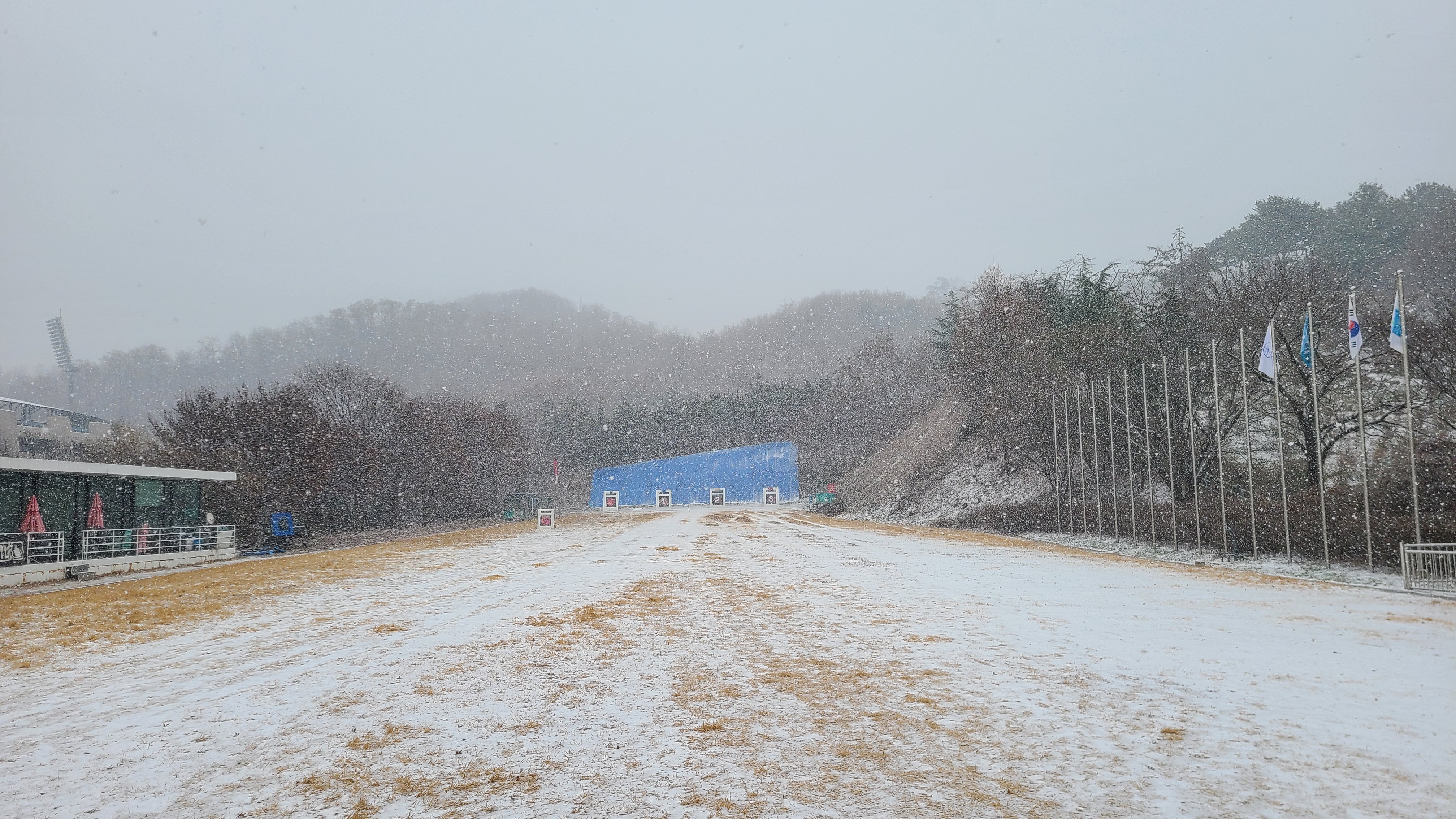 눈송이가 시야에 가득하고 과녁을 향해 날아간 화살이 보이지 않을 정도로 눈이 쌓였다.