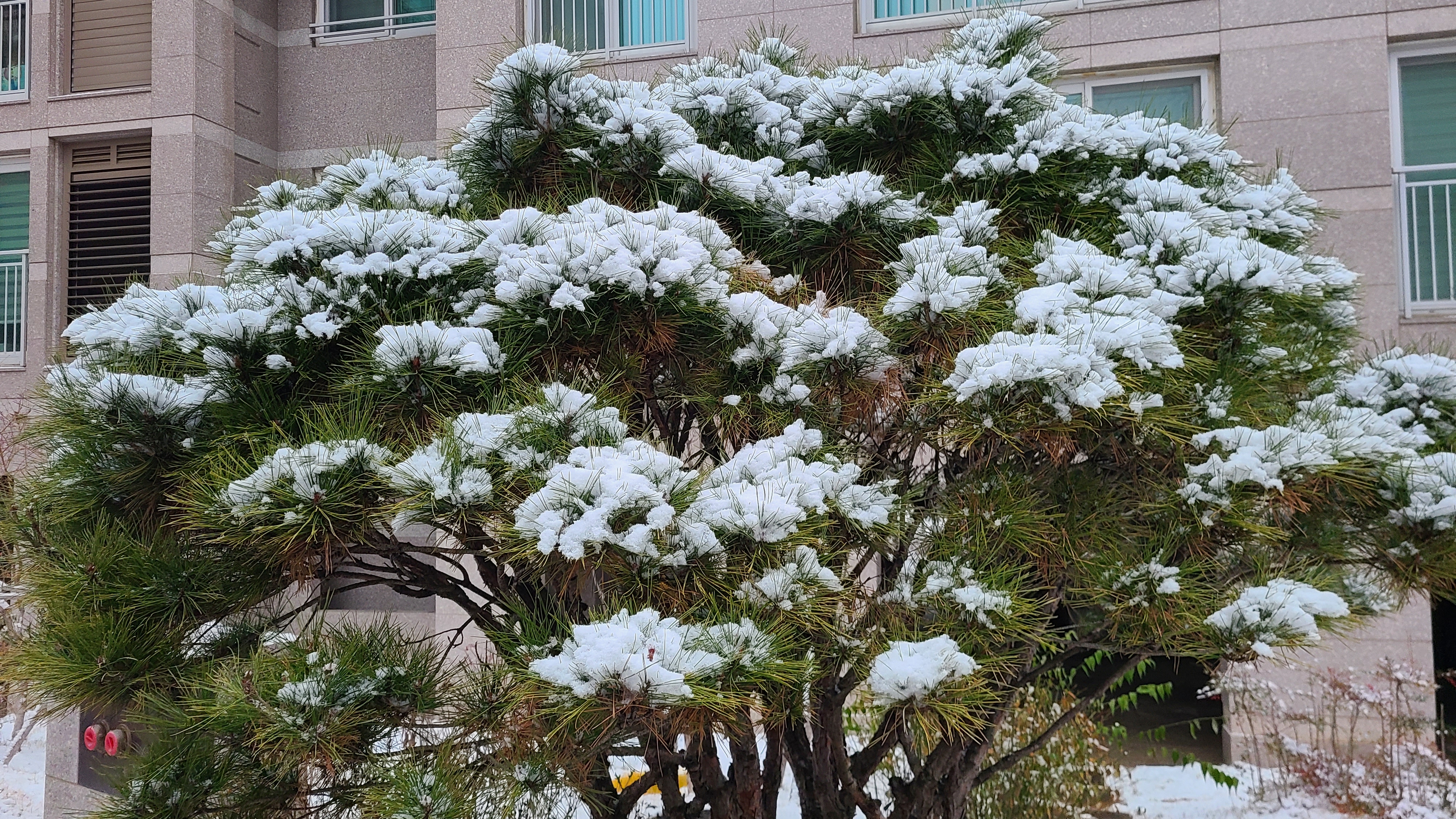 도중에 식당에서 식사를 하고 귀가하는데 주차장에 들어와 차를 내리니 본넷과 지붕에 눈이 수북하게