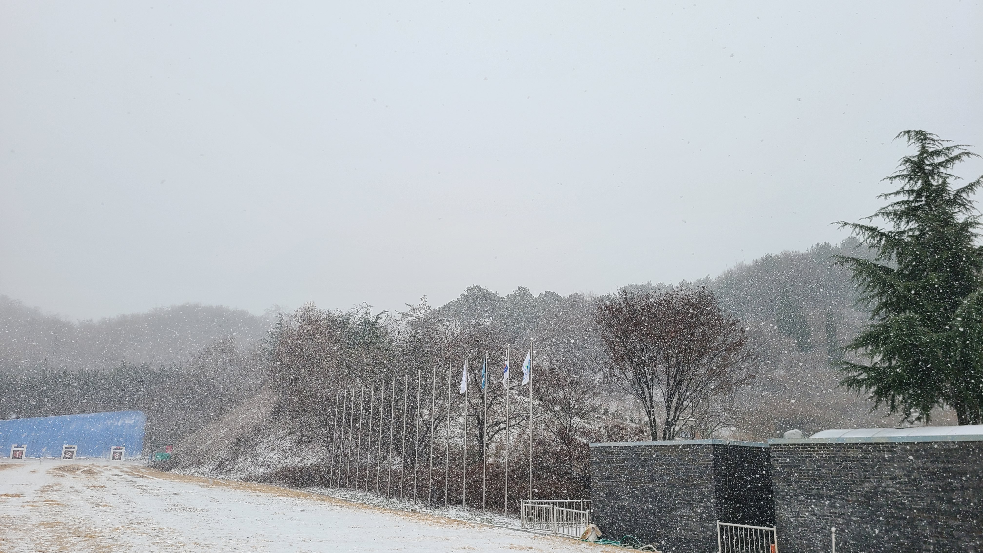 많은 눈이 내린다는 예보에 오전에 사대에서 활을 내노라니 어느순간부터 함박눈이 하늘가득 내린다.