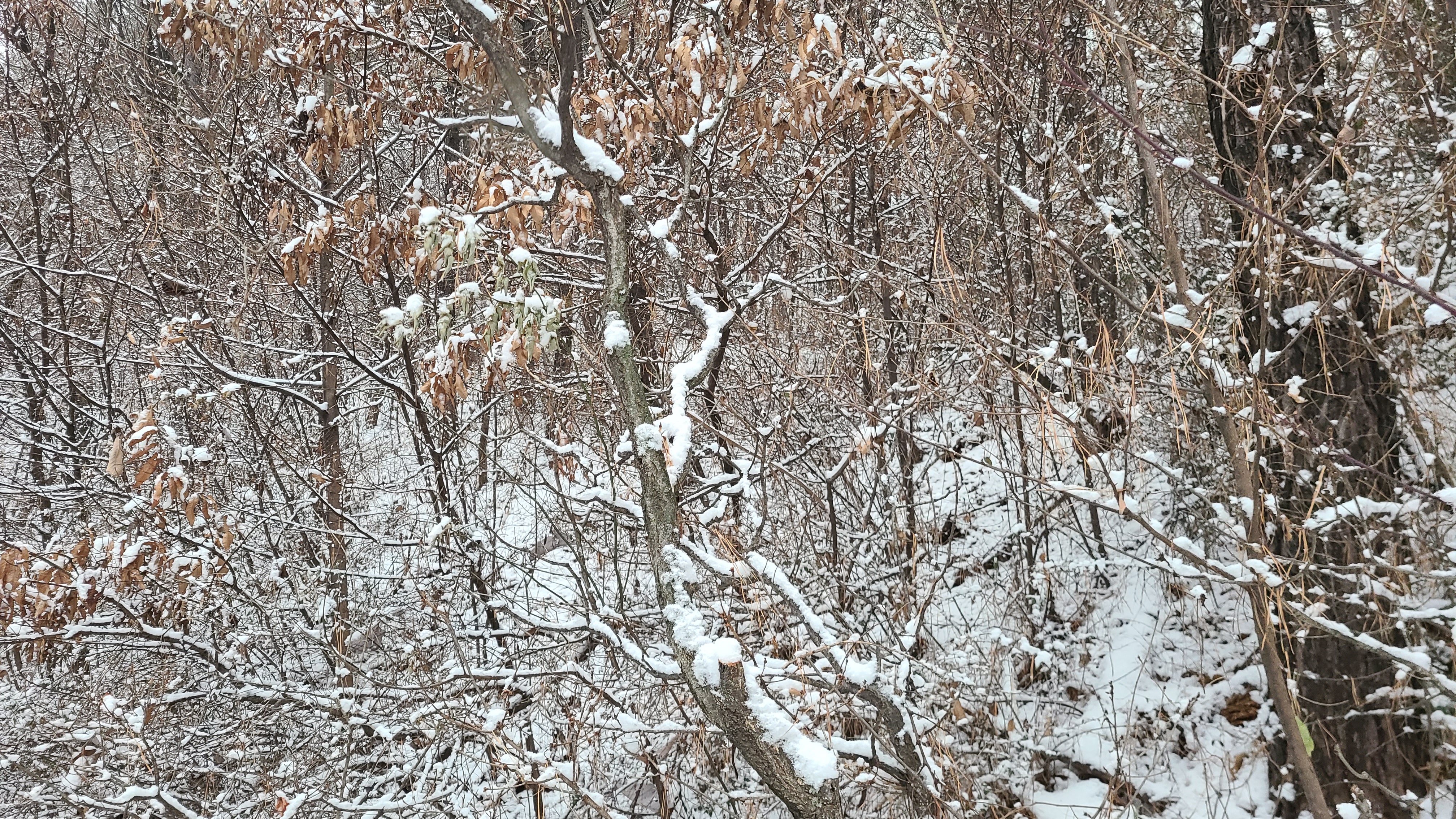눈을 치우는데도 한참이 걸리고 두어시간 집에 머물다가 네시가 지나 근처야산을 걷으려고 나오니