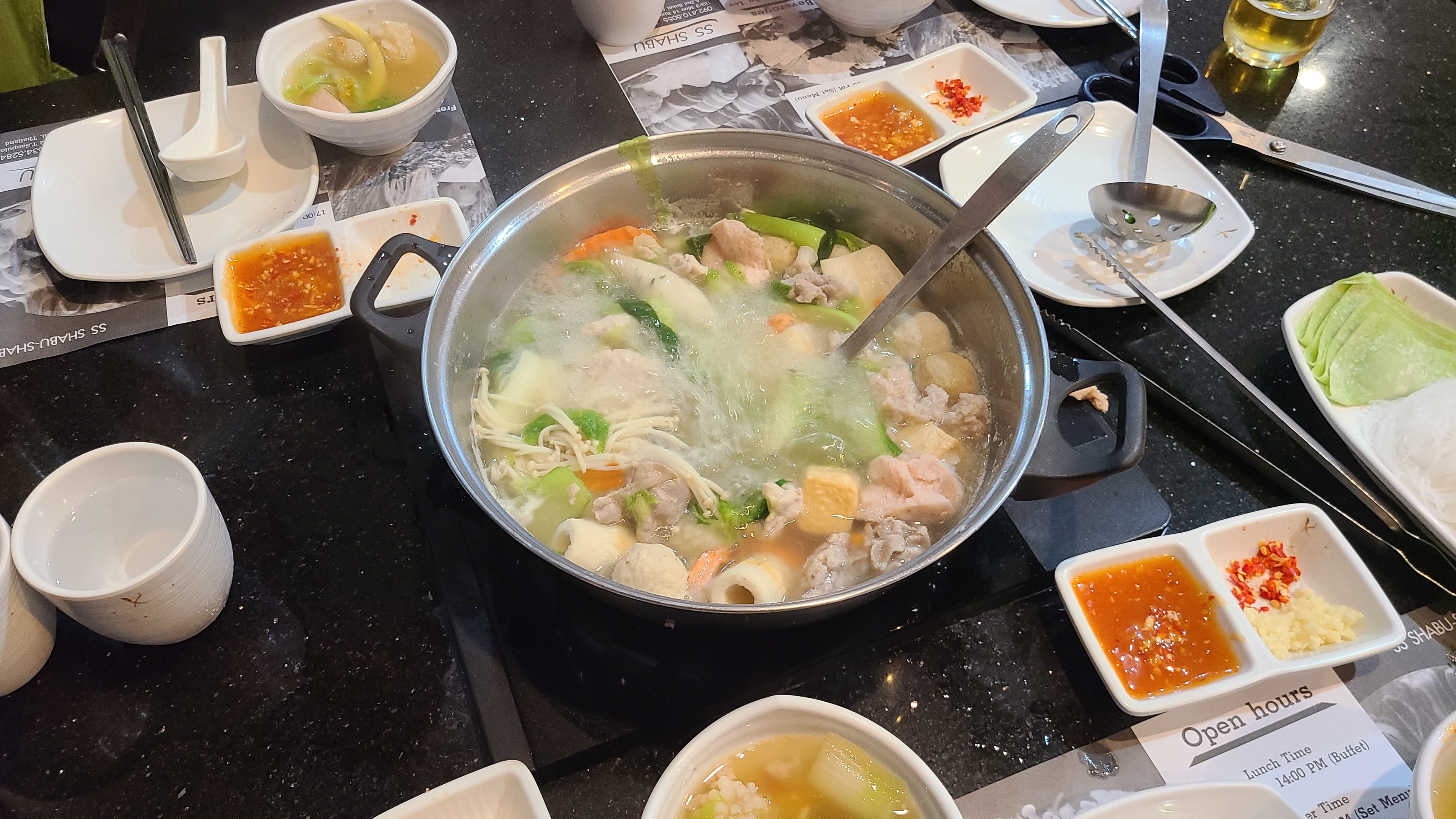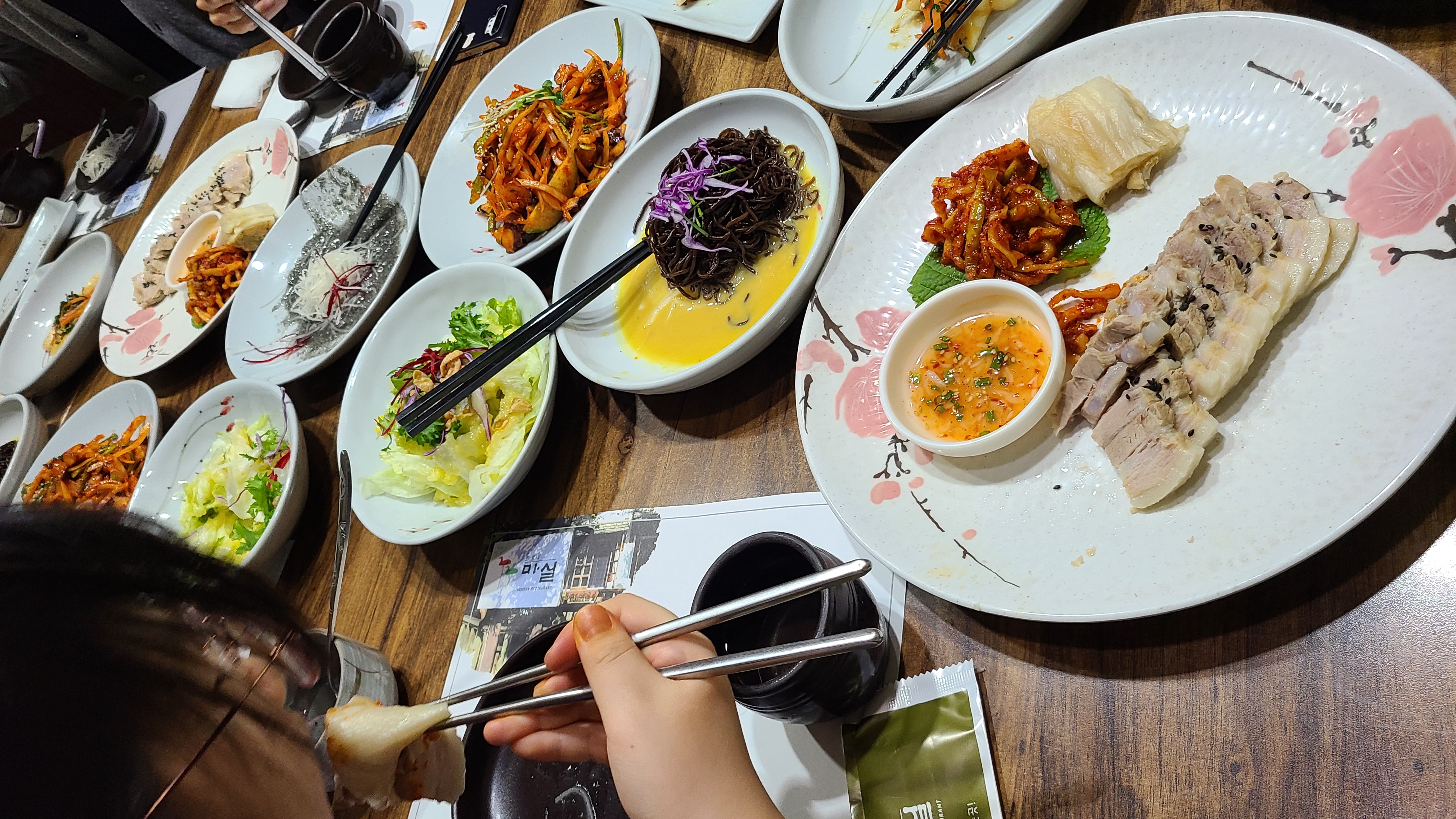 좋은 분위기속에서 맛있게 저녁을 먹으며 화기애애한 분위기를 즐긴다.
