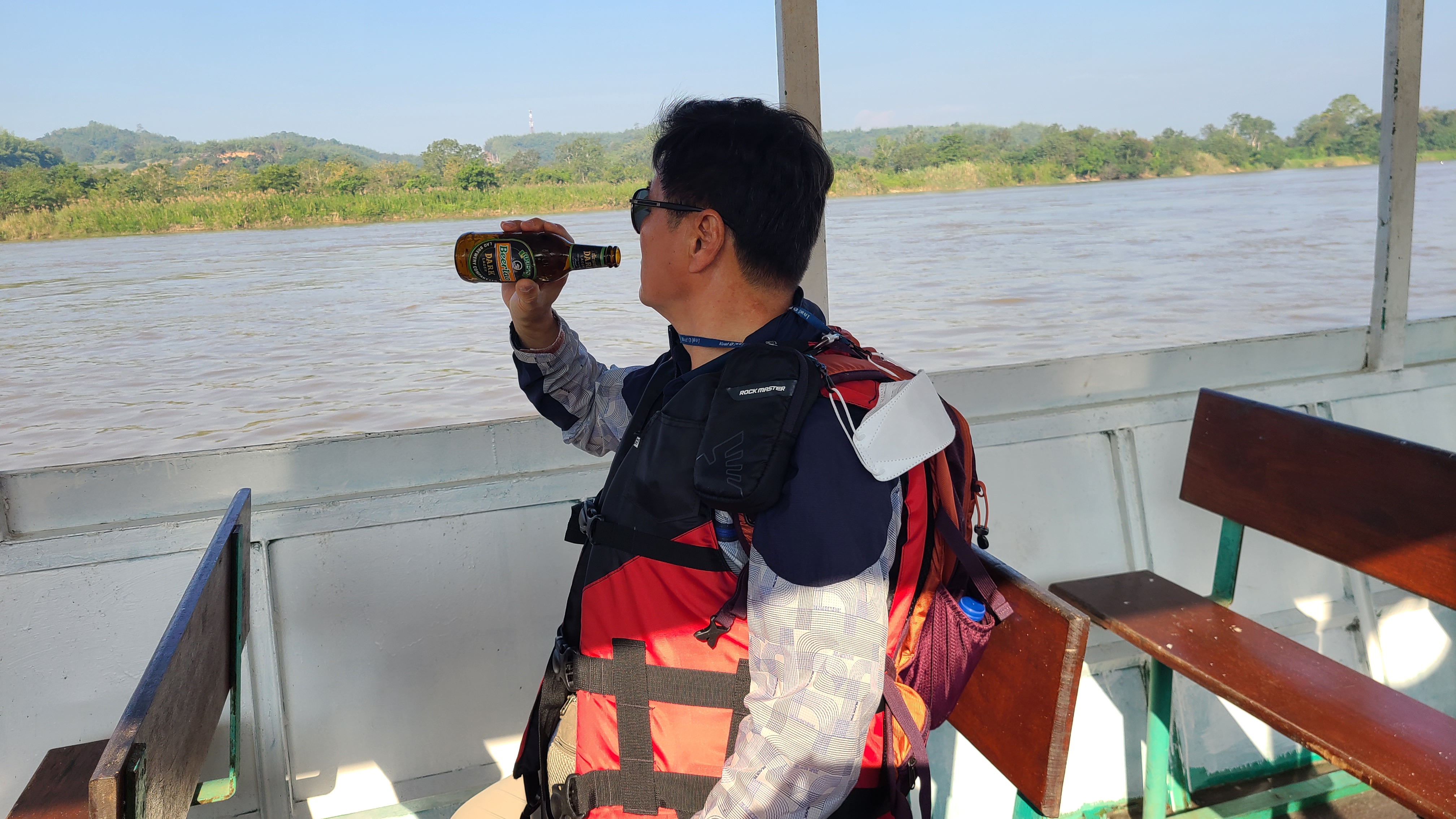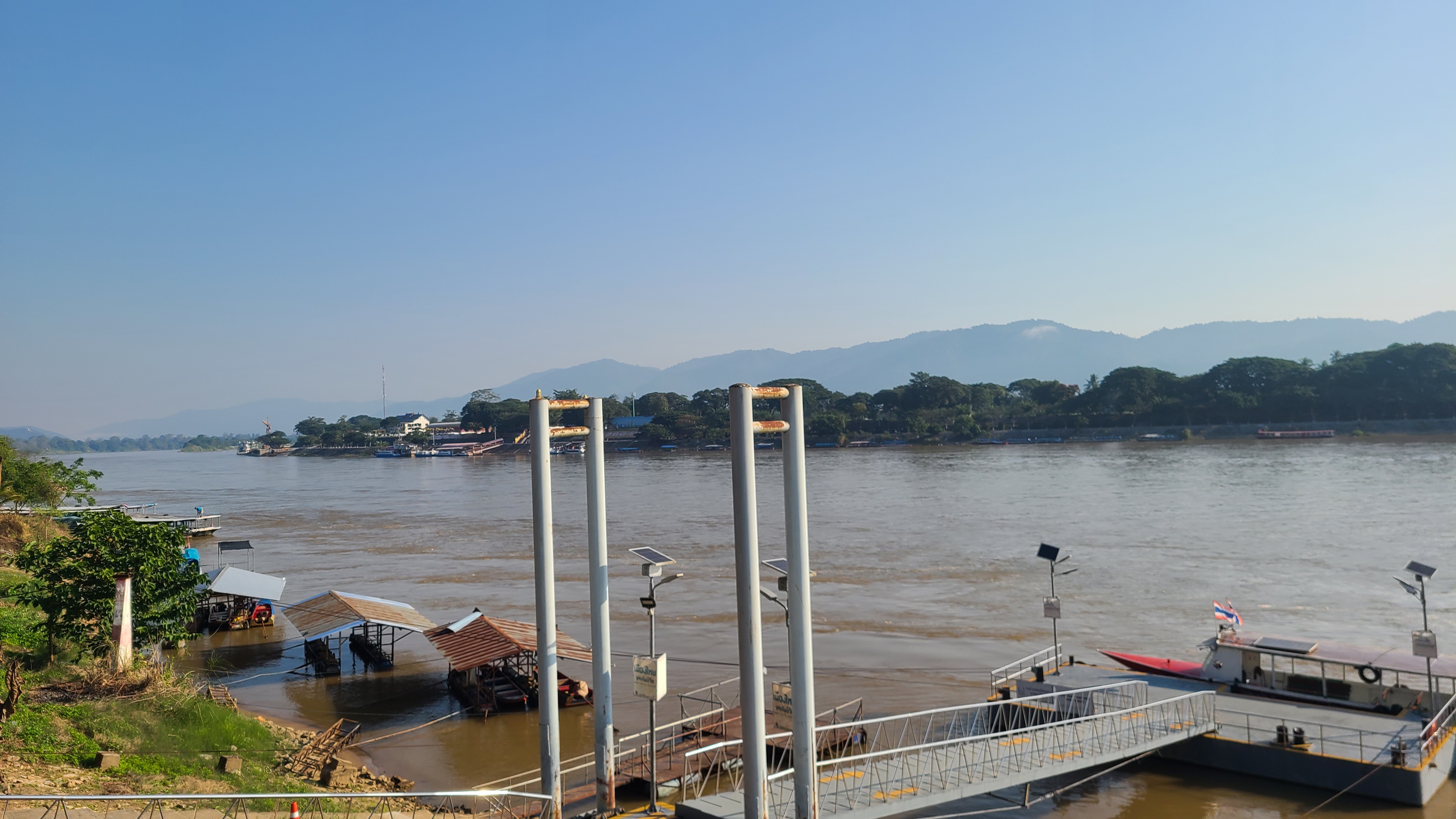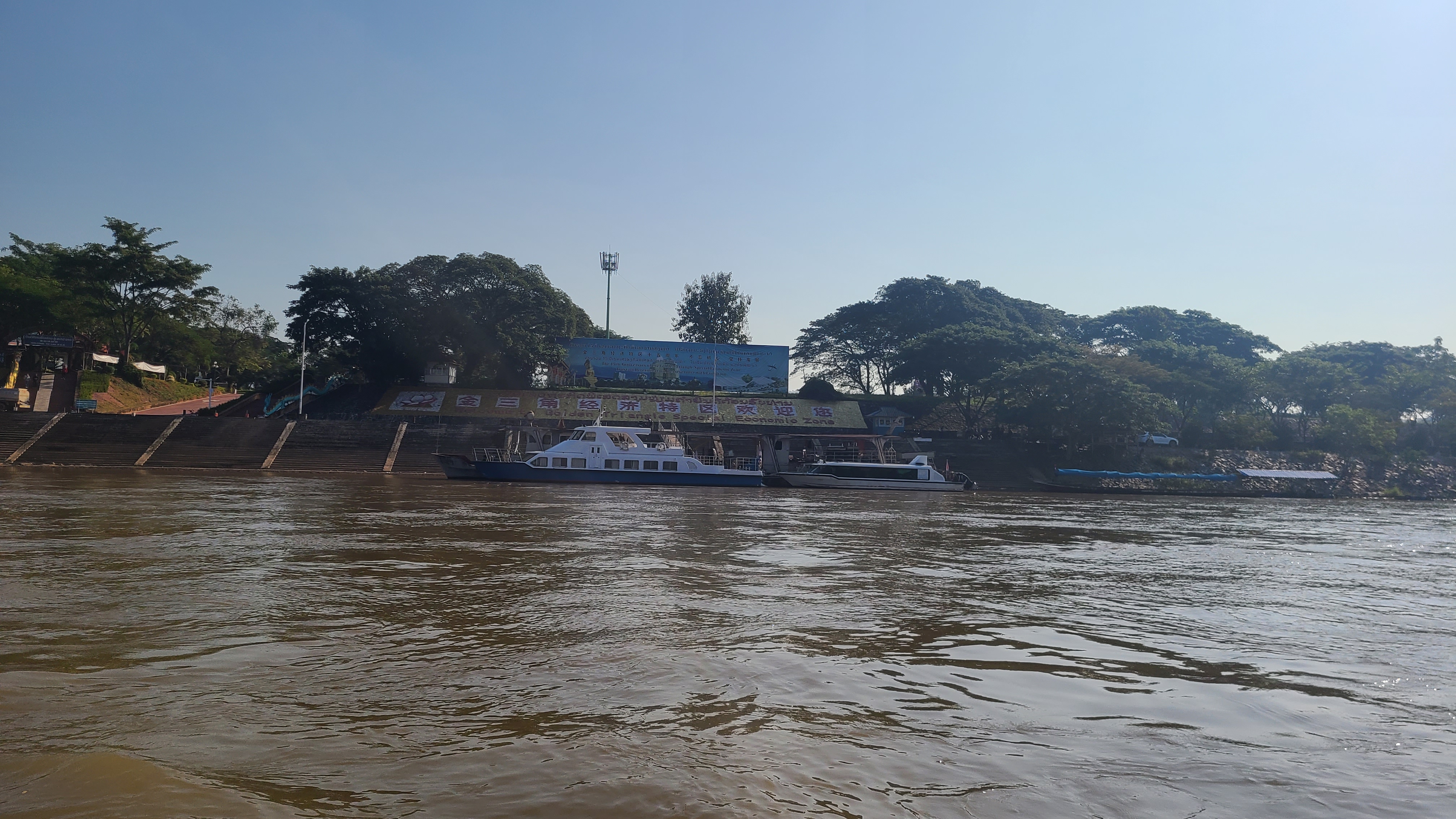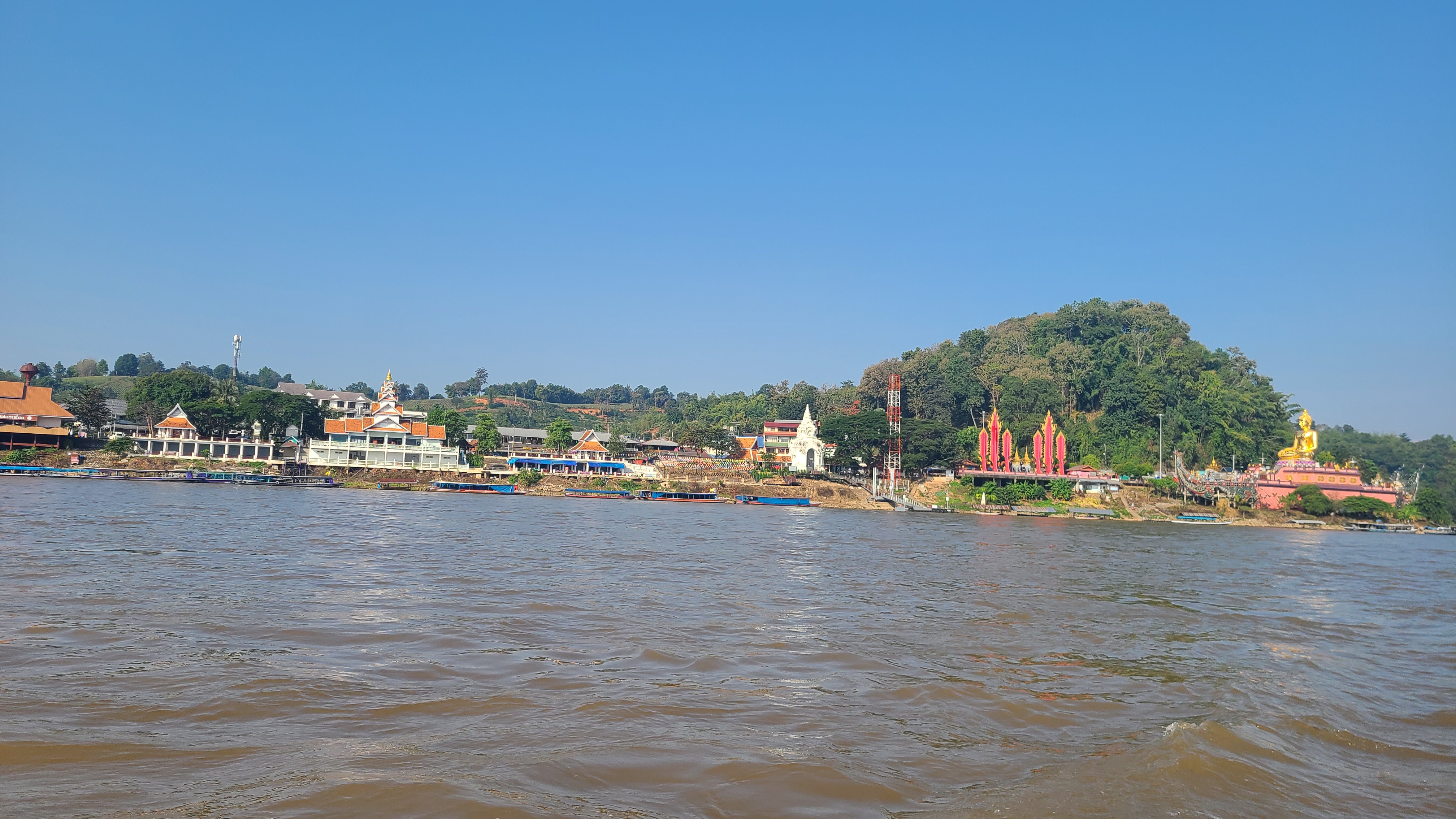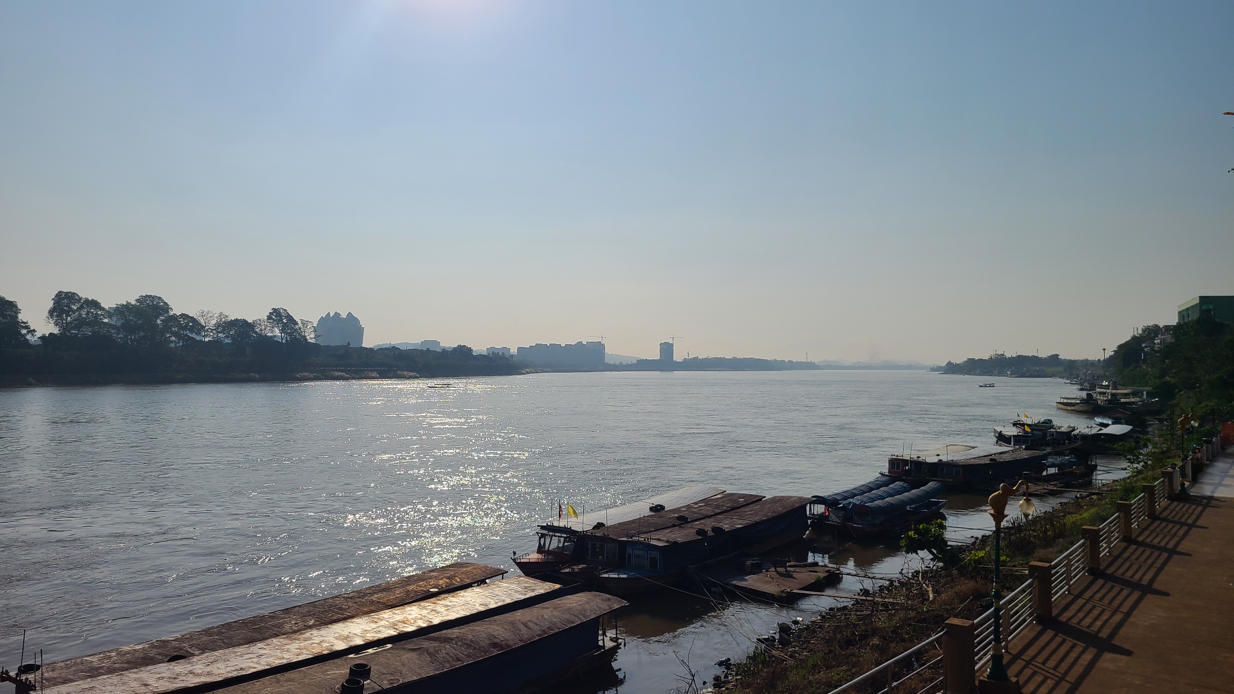 흙탕물의 메콩강의 폭넓은 강물이 흘러가고 관광객과 카지노,삶을 살아가는 사람들이 붐비는 곳이다.