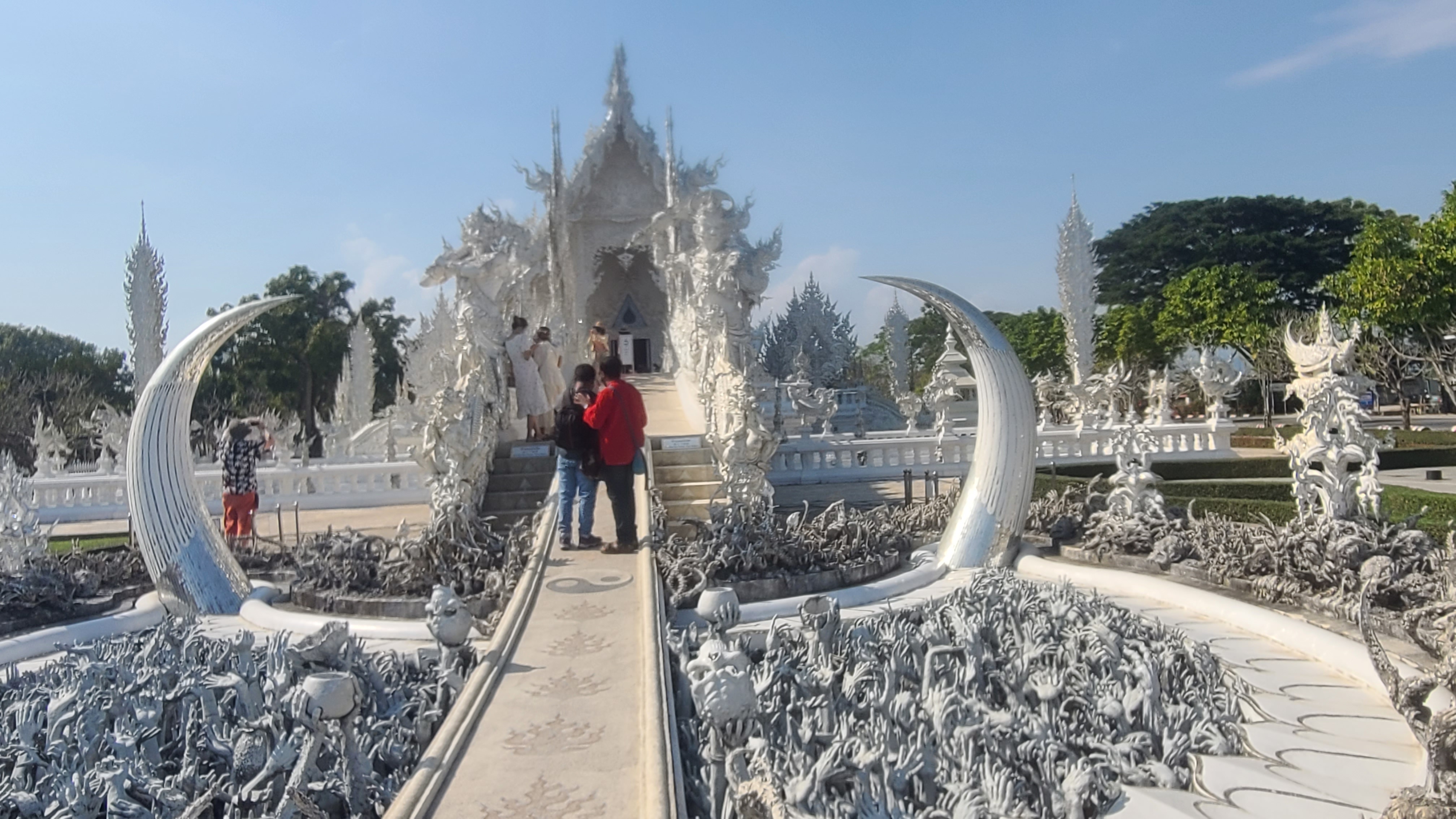 근래에 건축된 백색사원을 둘러본다. 넓은 지역을 온통 백색으로 지어진 건물인데 유리조각으로 장식되어 햇빛을