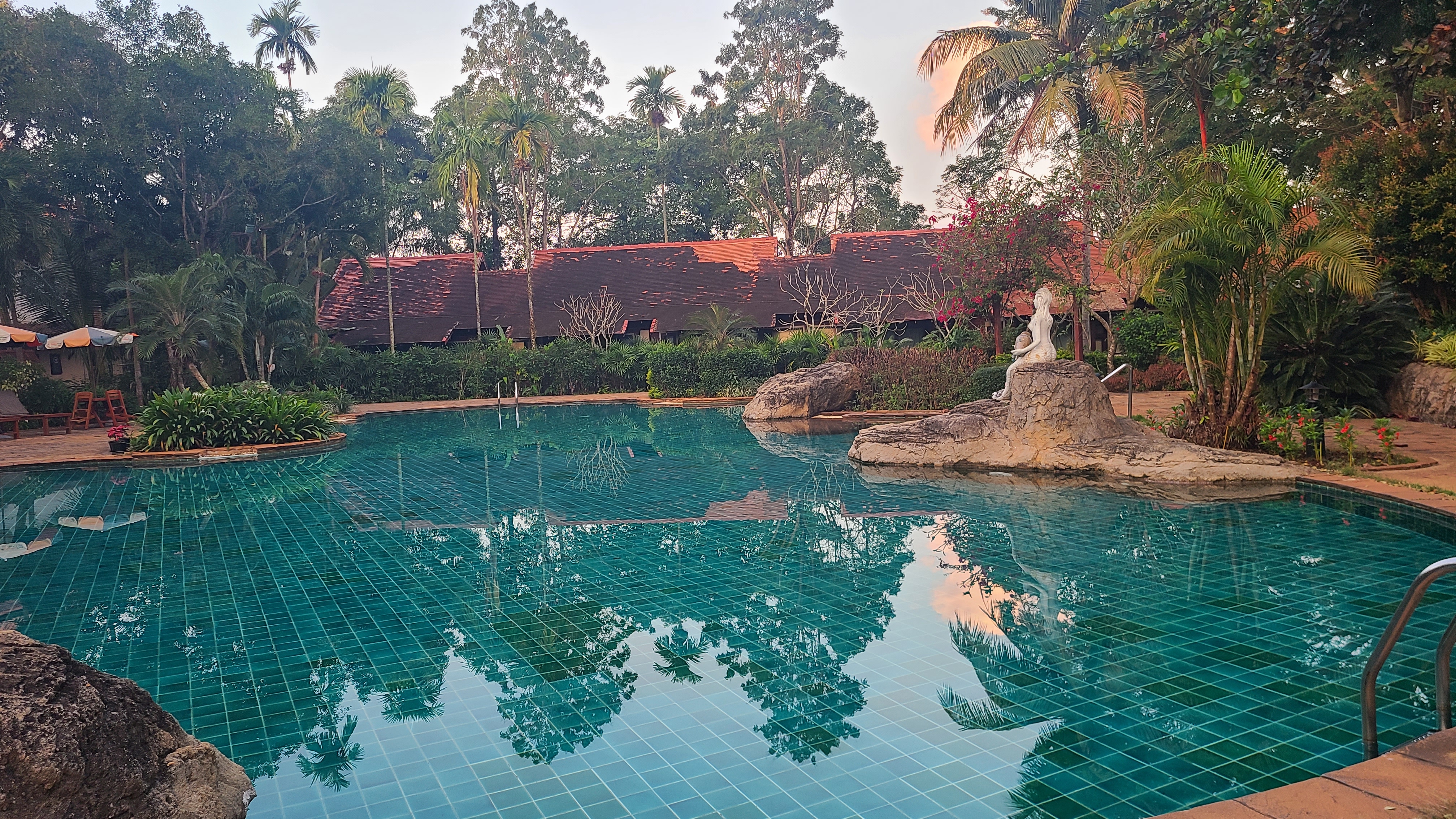 리조트내 야외에 조성된 수영장은 아침이라 그런지 아무도 없고 고요하다.
