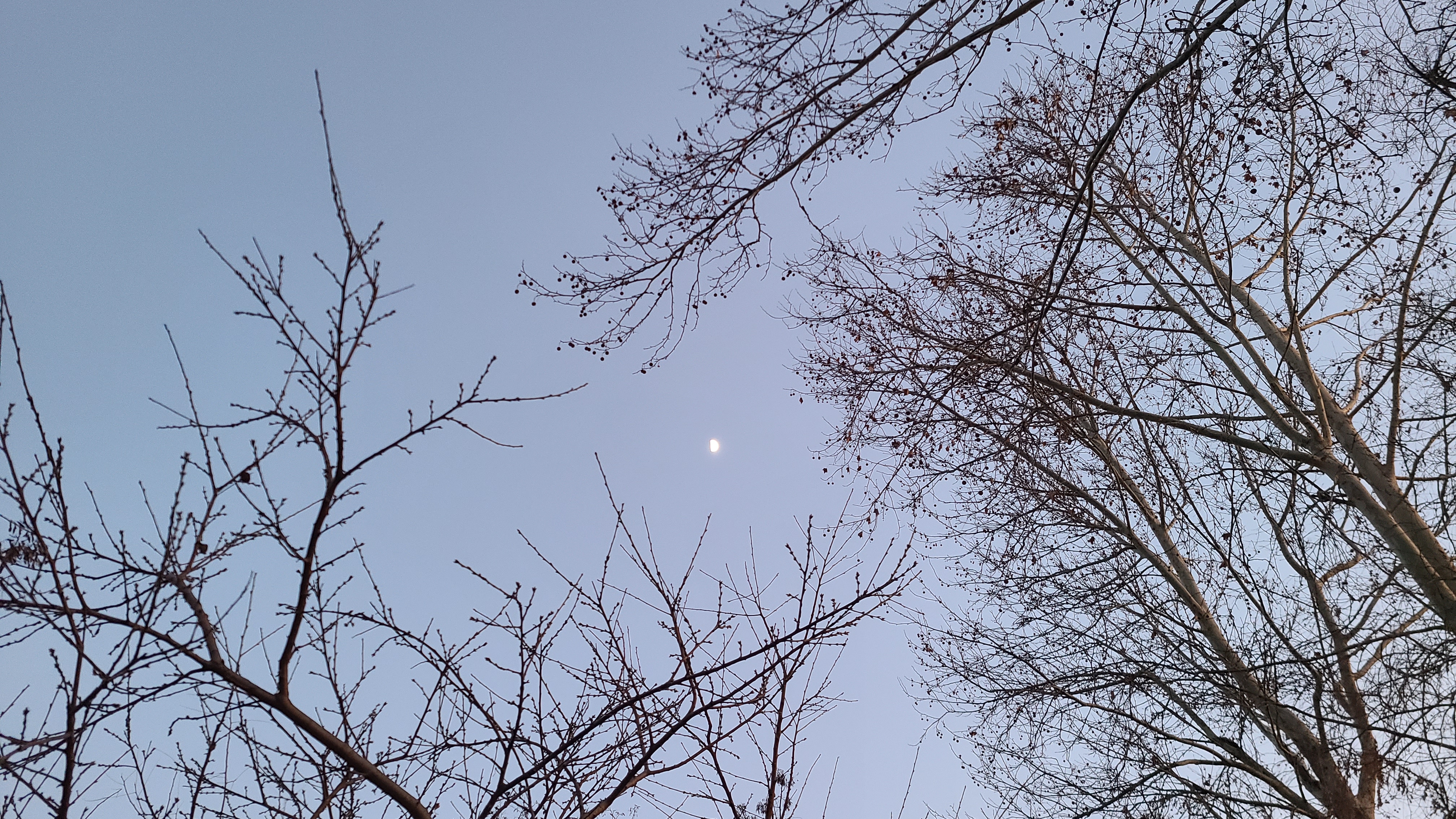 저녁무렵 하늘에 반달이 창공에 떠 오른다.