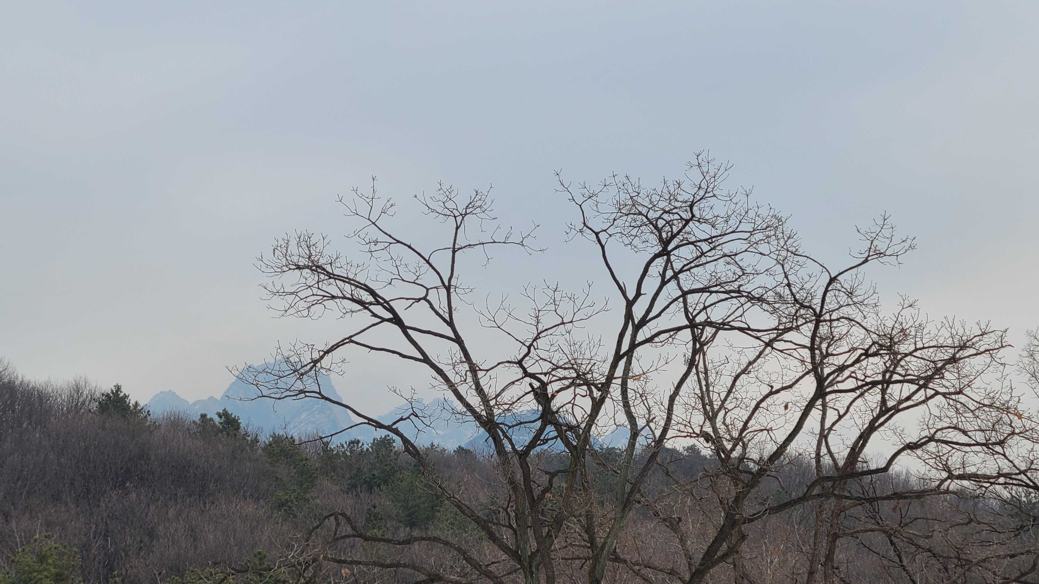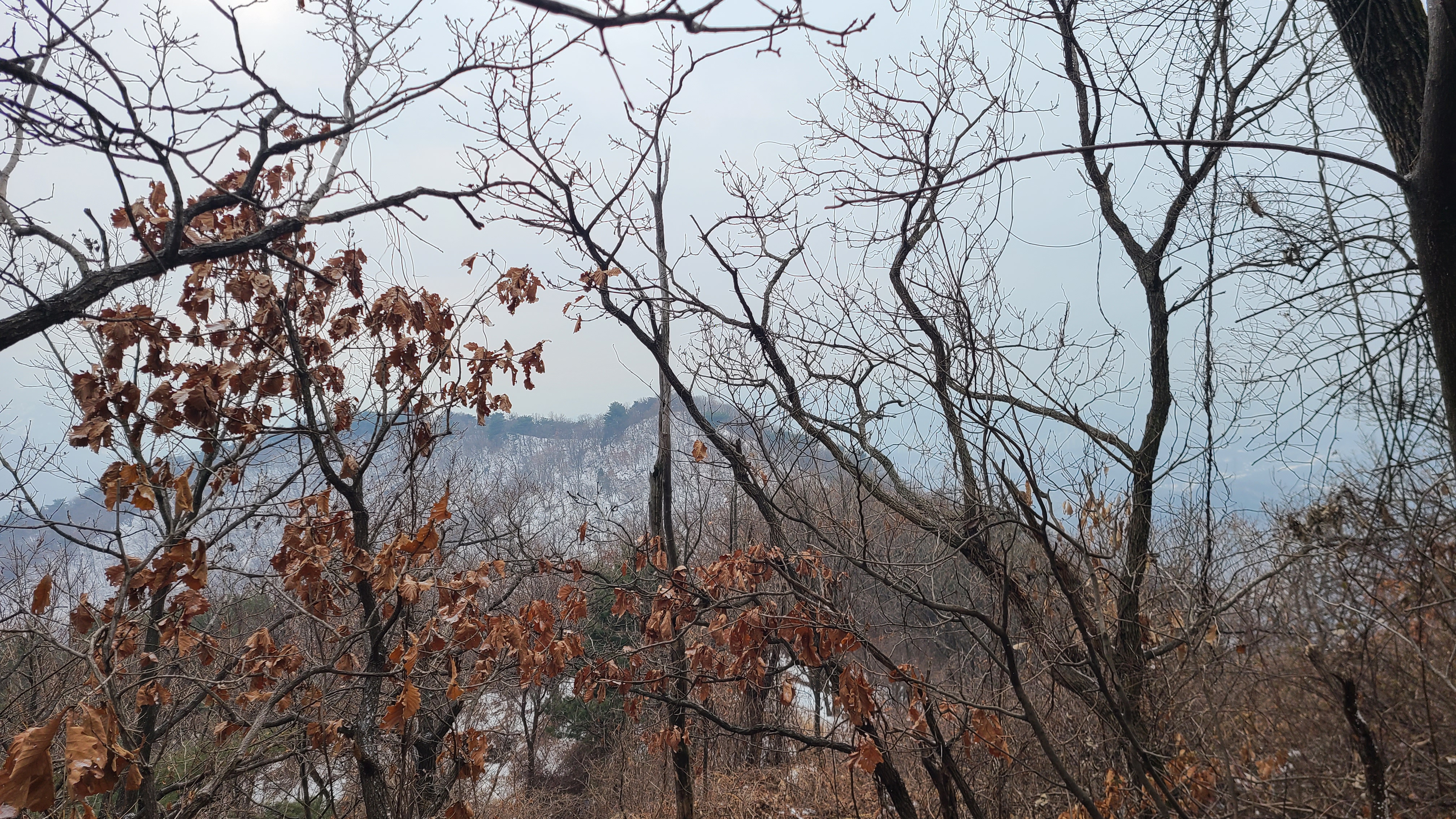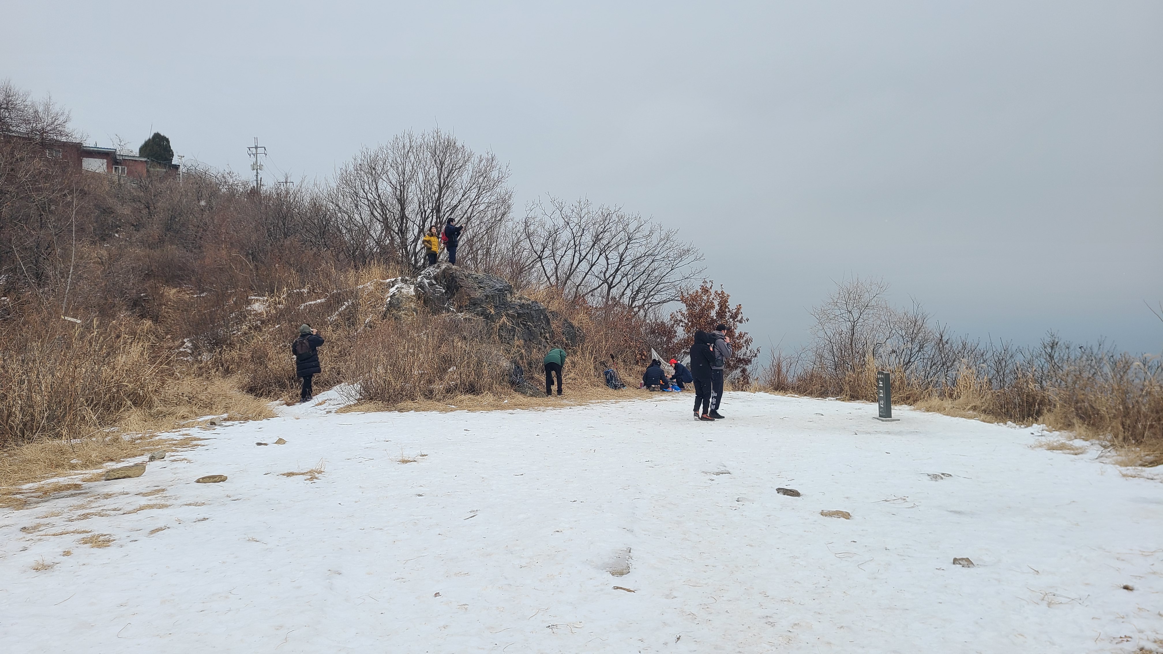 도중에 단체팀들이 두어팀 보이고 눈싸라기가 듬성듬성내리니 건너편 북한산은 안개에 쌓여 보이질 않는다.