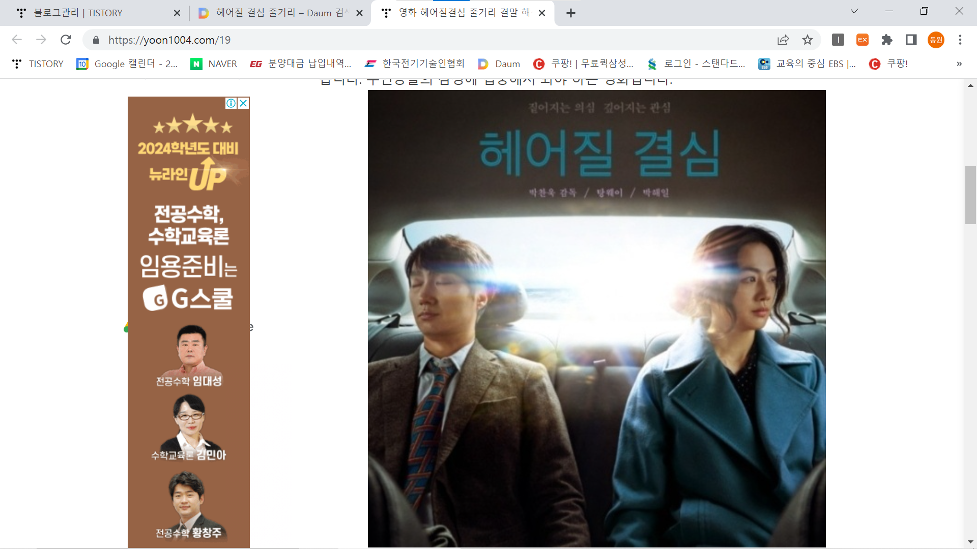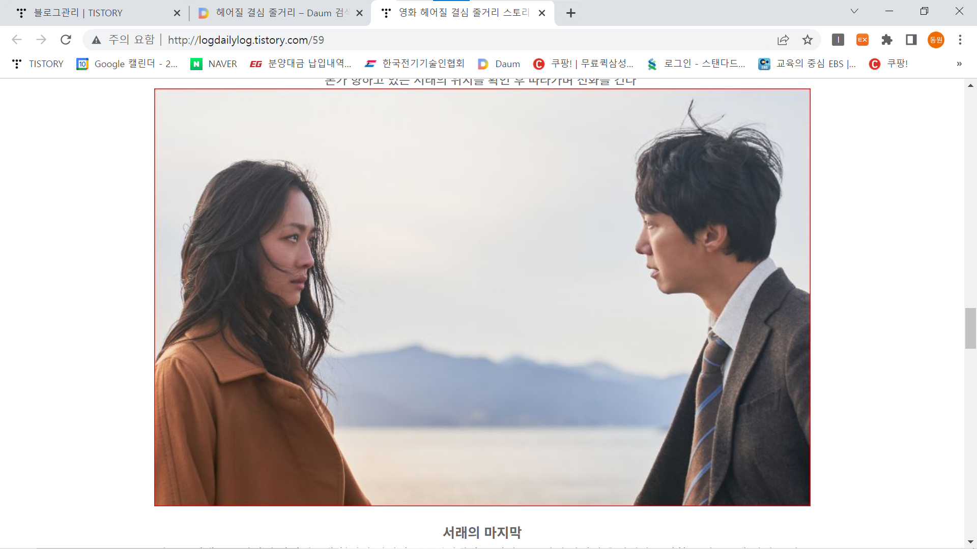 얼마전에 감상한 채털리부인의 사랑과는 너무나도 대조적이다.