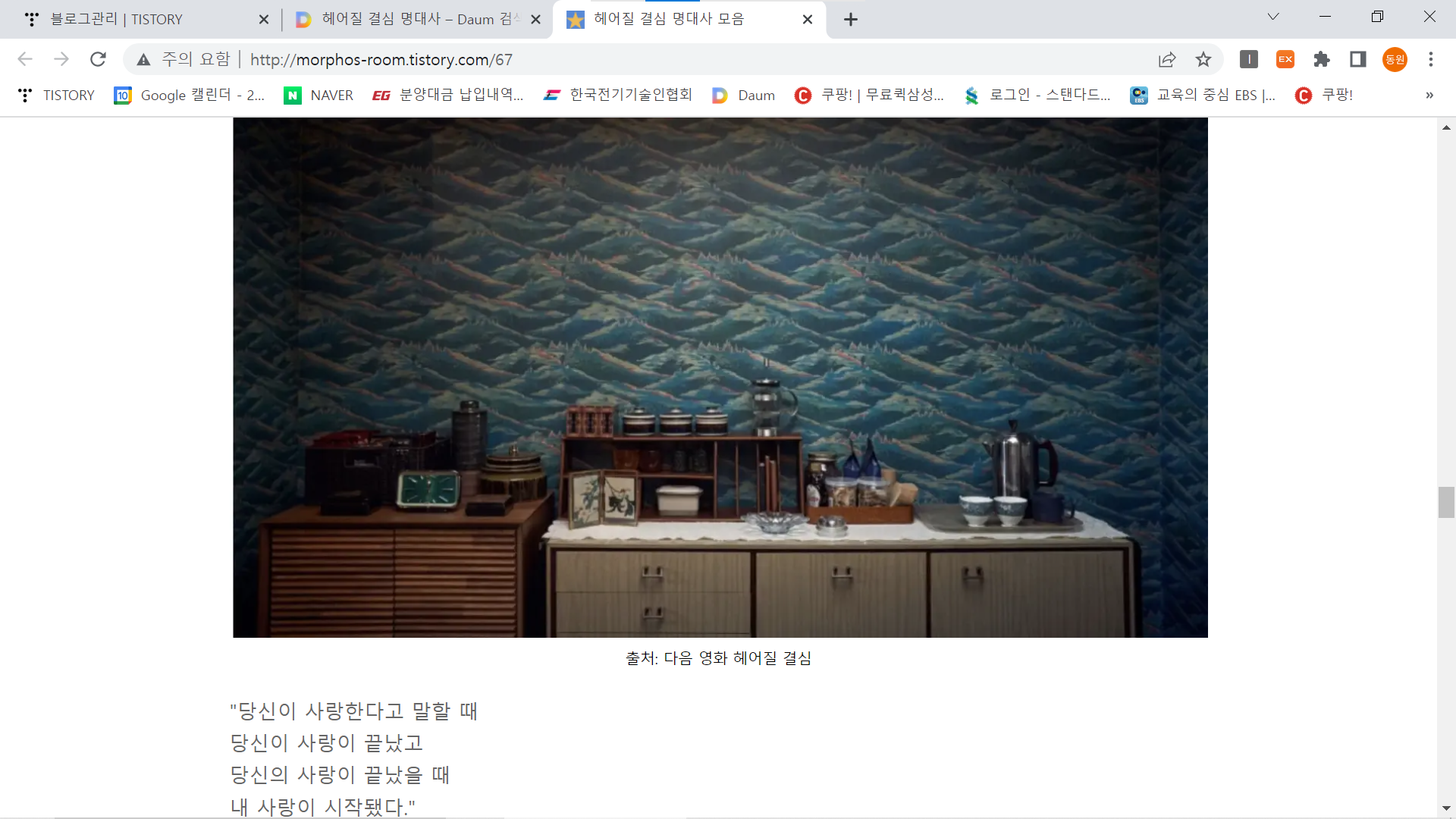 한편이 육체적인 사랑을 그렸다면 또 한편은 플라토닉러브를 그렸다고나 할까....