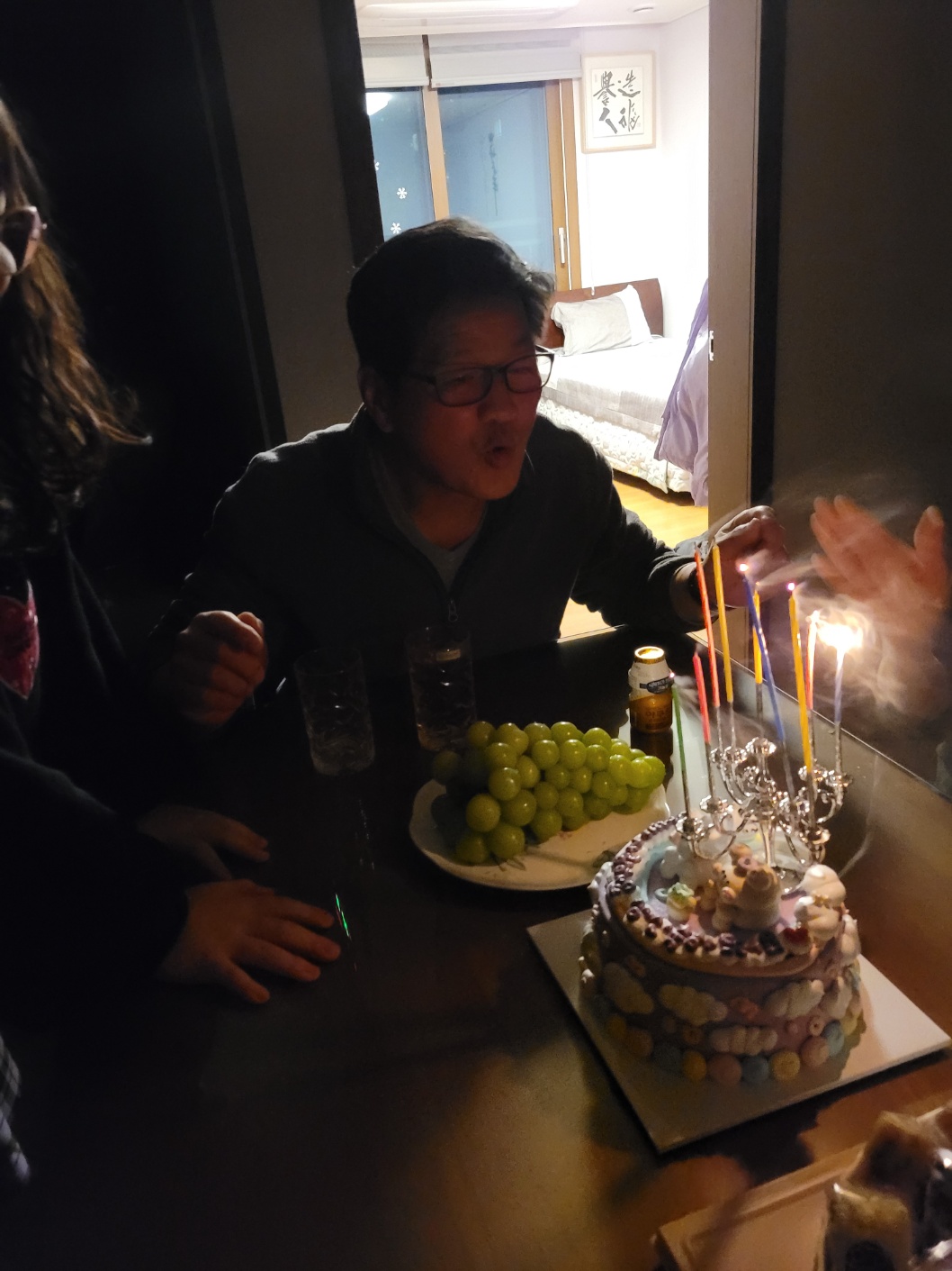 아이들은 직장에 속해 있으니 휴일에 맞춰 며칠전에 들려 같이 식사를 하고 케익을 잘랐고,
