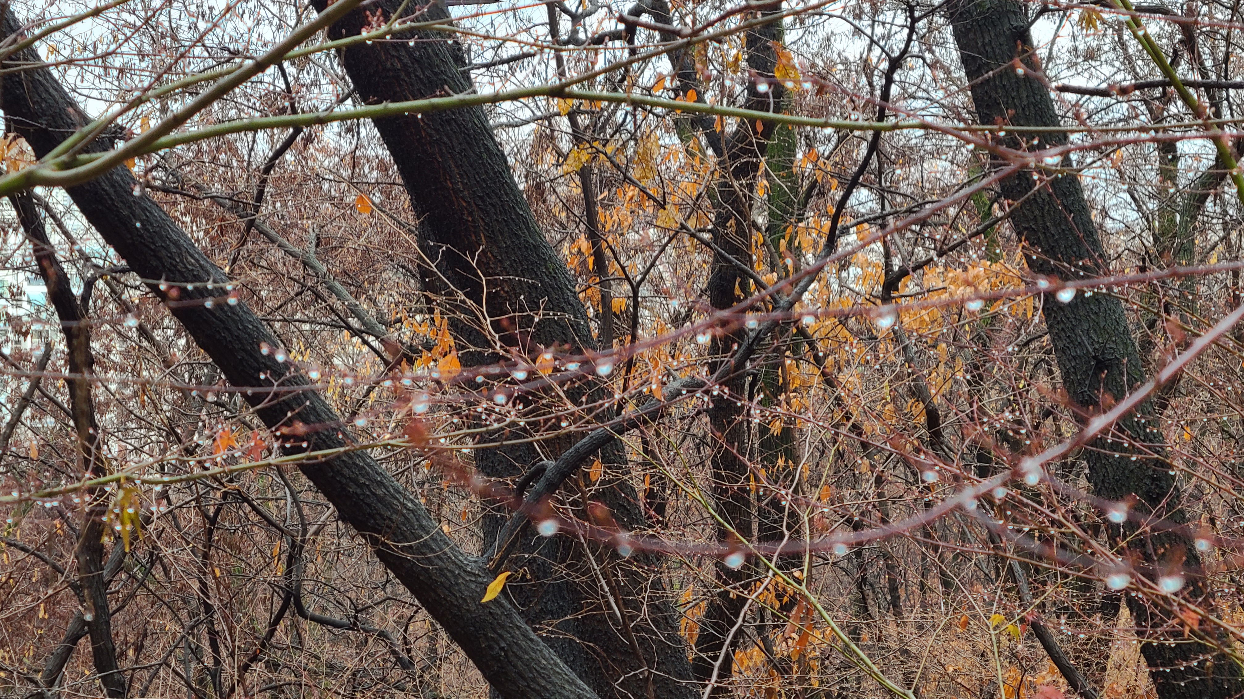 나뭇가지에 맺힌 빗방울이 마치 봄날이 다가와 있는 듯 봄비같은 느낌을 준다.